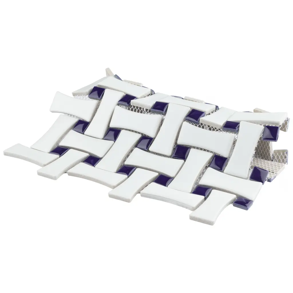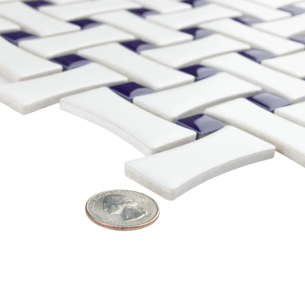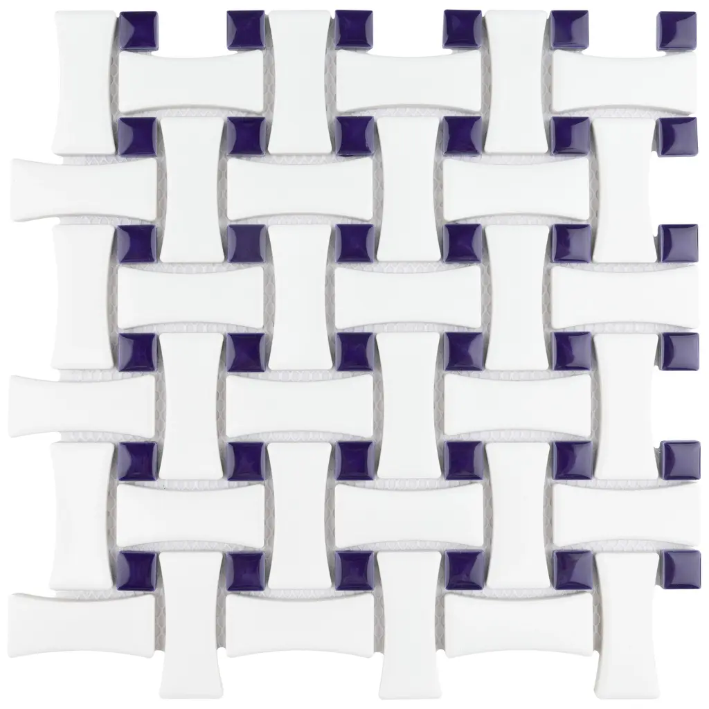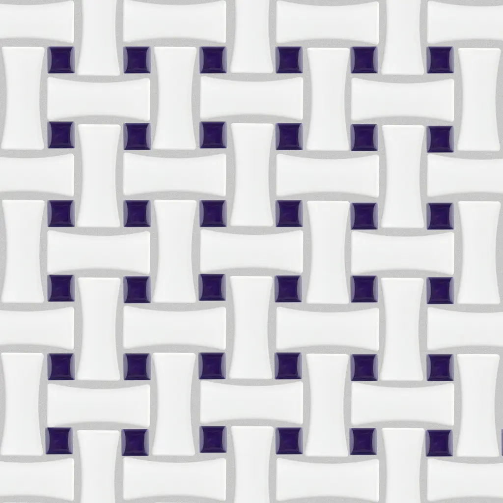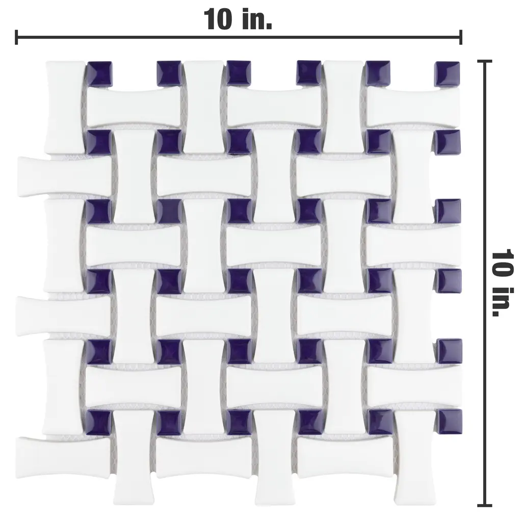 Offering a mosaic look, our Metro Dog Bone Basketweave White with Cobalt Dot Porcelain Floor and Wall Tile features a smooth, mixed finish, making it a great choice for your space. With its impervious, frost-resistant features, this white rectanglemosaic is an ideal selection for both indoor and outdoor residential installations, including bathrooms, backsplashes, showers, hallways and fireplace facades. This tile is a perfect choice on its own or paired with other products in the Metro Dog Bone Basketweave Collection. Tile is the better choice for your space. This tile is made from natural ingredients, making it a healthy choice as it is free from allergens, VOCs, formaldehyde, and PVC.7.1 square feet, 10 pieces per case. Case weight is 15.9 lbs.Grade 1, first-quality porcelain tile for floor and wall use10 in. width x 10 in. length x 0.19 in. thick mesh-mounted mosaicGlazed, smooth finish with a mixed finish and uniform appearance in tonePEI Rating II is suitable for all interior walls and light foot traffic such as powder roomsImpervious tiles have a water absorption of less than 0.5% for indoor and outdoor use and is frost resistantCOF rating less than or equal to 0.5 is considered to have a marginally low skid resistanceCompletely frost resistant for indoor or outdoor applications; use a latex-modified thinset for acceptable bond strengthResidential use onlyPlease note: A sample of this product may be a partial piece cut from the full size tile in order to provide an affordable and convenient way for customers to judge the quality and finish of this item. Samples are not returnable.