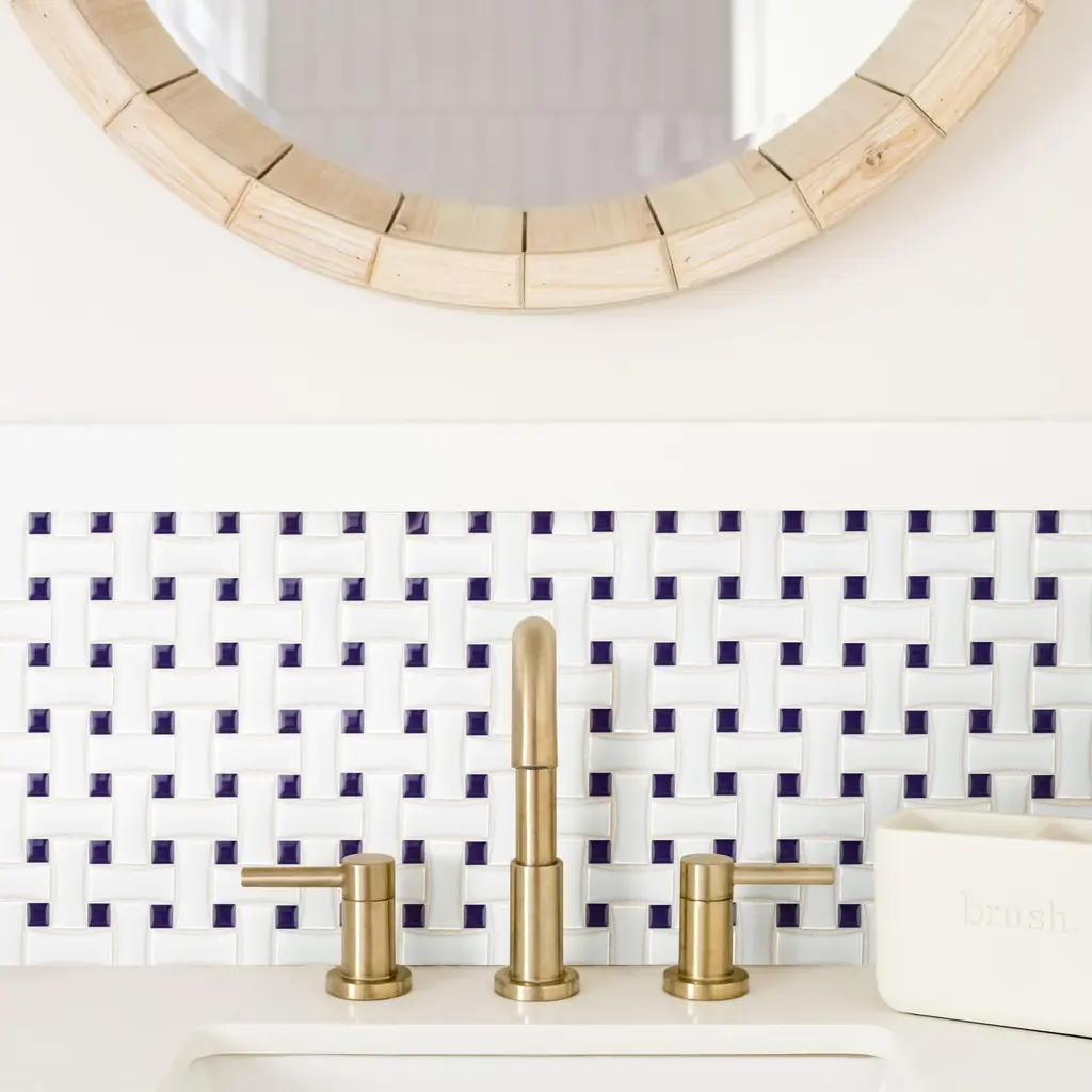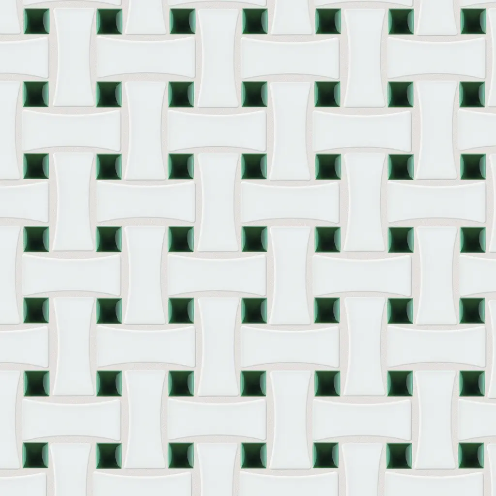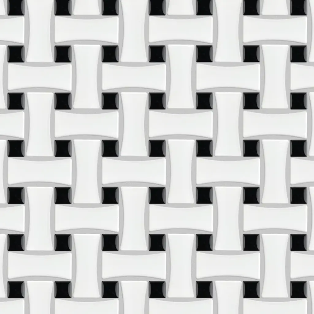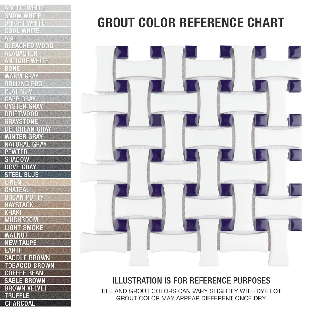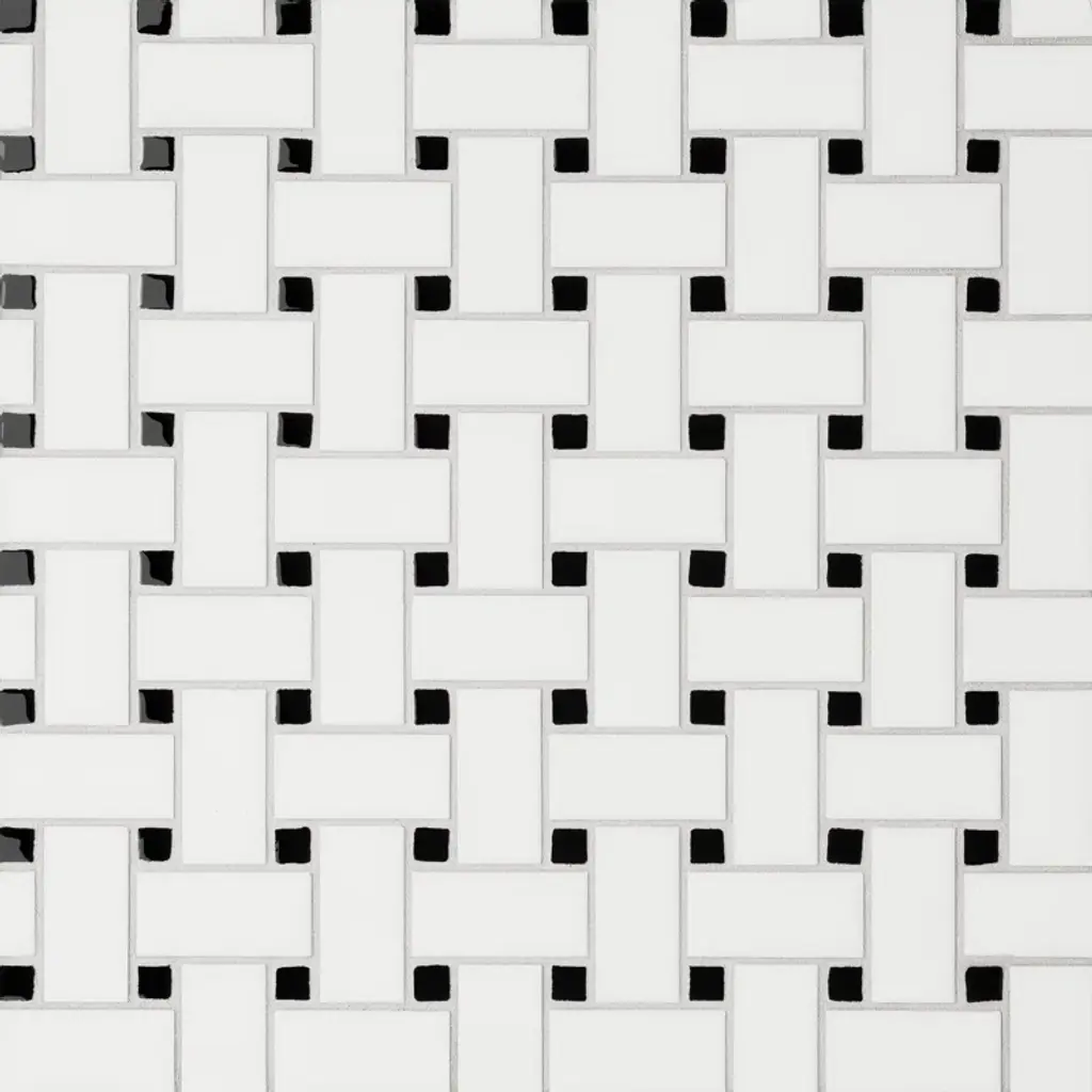 Offering a mosaic look, our Metro Dog Bone Basketweave White with Cobalt Dot Porcelain Floor and Wall Tile features a smooth, mixed finish, making it a great choice for your space. With its impervious, frost-resistant features, this white rectanglemosaic is an ideal selection for both indoor and outdoor residential installations, including bathrooms, backsplashes, showers, hallways and fireplace facades. This tile is a perfect choice on its own or paired with other products in the Metro Dog Bone Basketweave Collection. Tile is the better choice for your space. This tile is made from natural ingredients, making it a healthy choice as it is free from allergens, VOCs, formaldehyde, and PVC.7.1 square feet, 10 pieces per case. Case weight is 15.9 lbs.Grade 1, first-quality porcelain tile for floor and wall use10 in. width x 10 in. length x 0.19 in. thick mesh-mounted mosaicGlazed, smooth finish with a mixed finish and uniform appearance in tonePEI Rating II is suitable for all interior walls and light foot traffic such as powder roomsImpervious tiles have a water absorption of less than 0.5% for indoor and outdoor use and is frost resistantCOF rating less than or equal to 0.5 is considered to have a marginally low skid resistanceCompletely frost resistant for indoor or outdoor applications; use a latex-modified thinset for acceptable bond strengthResidential use onlyPlease note: A sample of this product may be a partial piece cut from the full size tile in order to provide an affordable and convenient way for customers to judge the quality and finish of this item. Samples are not returnable.
