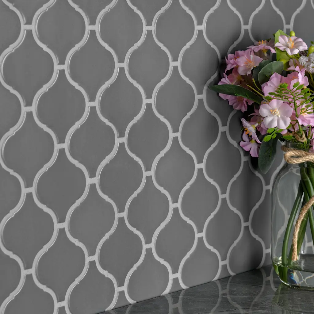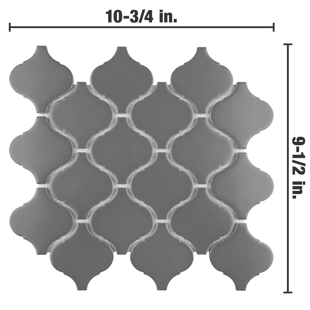 Our Metro Lantern Matte Dark Grey Porcelain Floor and Wall Mosaic Tile instantly elevates spaces through its distinctive lantern shaped design. The unique dark grey glaze is uniformly applied to create a striking matte surface that offers eye-catching beauty. Individual lantern pieces are arranged on an interlocking mesh to create a seamless installation. This minimalistic geometric porcelain mosaic is unique yet simplistic enough to integrate into any design, ranging from traditional style renovations to modern home projects. Its impervious and frost-resistant features make this an ideal tile for both indoor and outdoor residential use, including backsplashes, bathrooms, showers, kitchens and fireplace facades. This tile is a perfect choice on its own or paired with other products in the Metro Collection. Tile is the better choice for your space. This tile is made from natural ingredients, making it a healthy choice as it is free from allergens, VOCs, formaldehyde and PVC. 14.6 square feet, 20 pieces per case. Case weight is 34.2 lbs. Grade 1, first-quality porcelain tile for floor and wall use 9.5 in. width x 10.75 in. length x 0.23 in. thick mesh-mounted mosaic Glazed, smooth finish with a low sheen and uniform appearance in tone PEI Rating II is suitable for all interior walls and light foot traffic such as powder rooms Impervious tiles have a water absorption of less than 0.5% for indoor and outdoor use and are frost resistant This tile has no available COF wet rating. This tile is not ADA approved for slip resistance. Completely frost resistant for indoor or outdoor applications; use a latex-modified thinset for acceptable bond strength Please note: A sample of this product may be a partial piece cut from the full size tile in order to provide an affordable and convenient way for customers to judge the quality and finish of this item. Samples are not returnable.