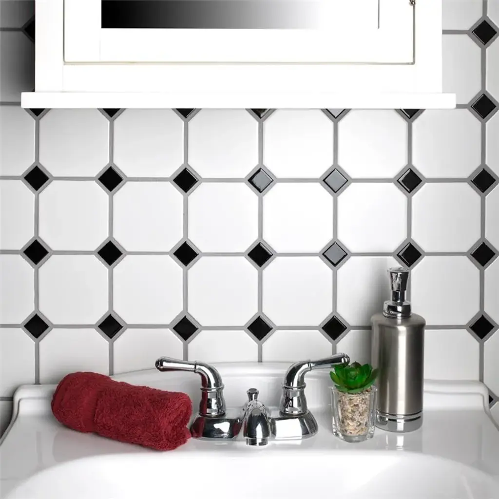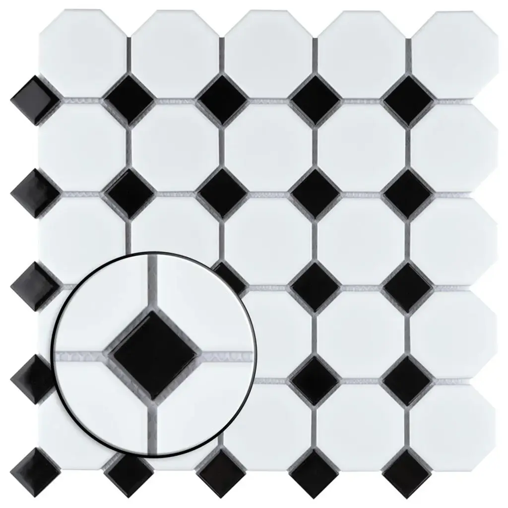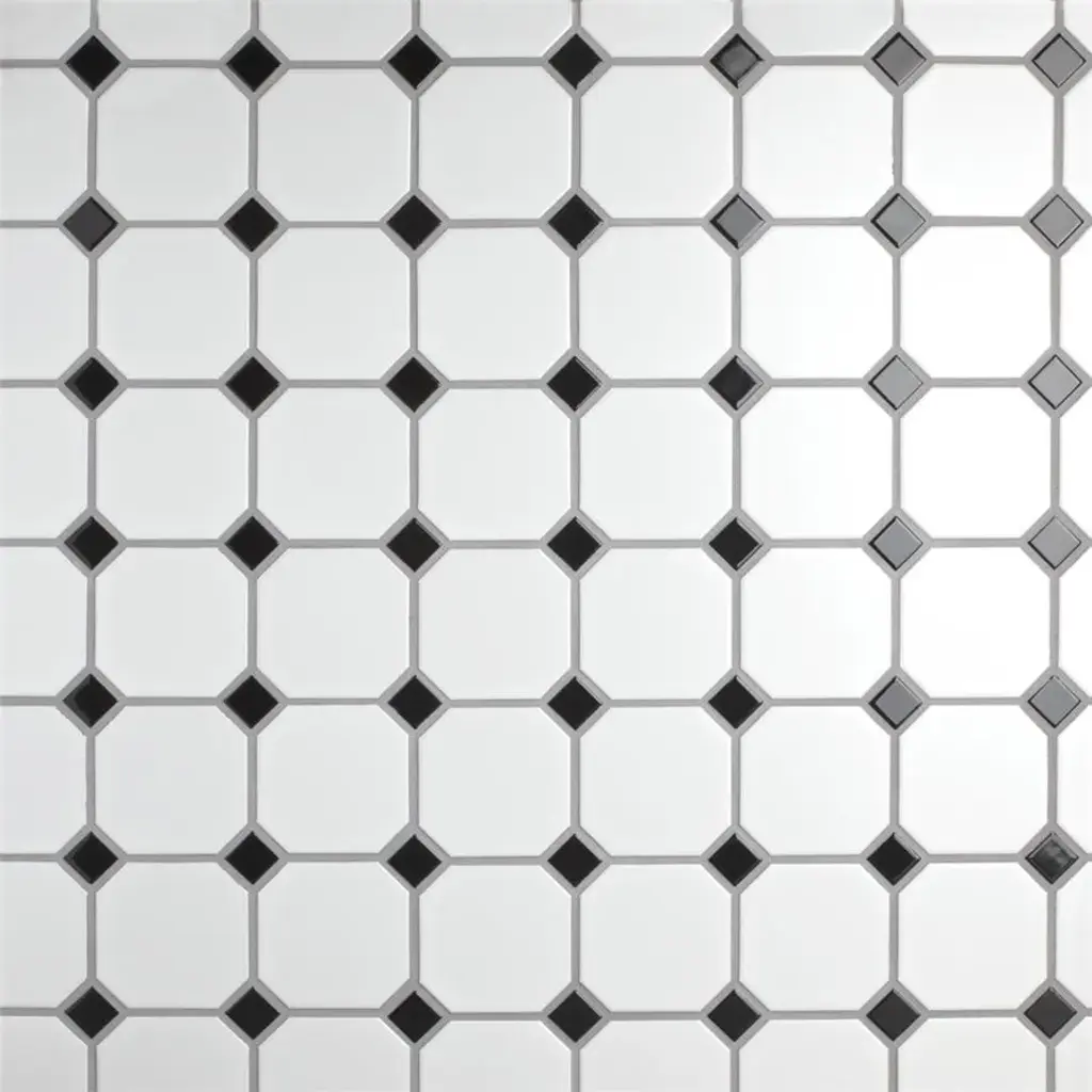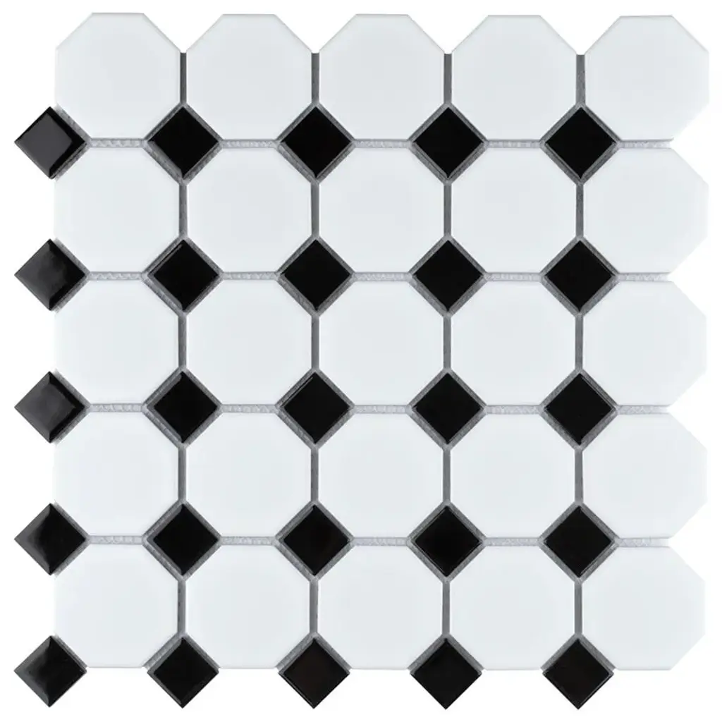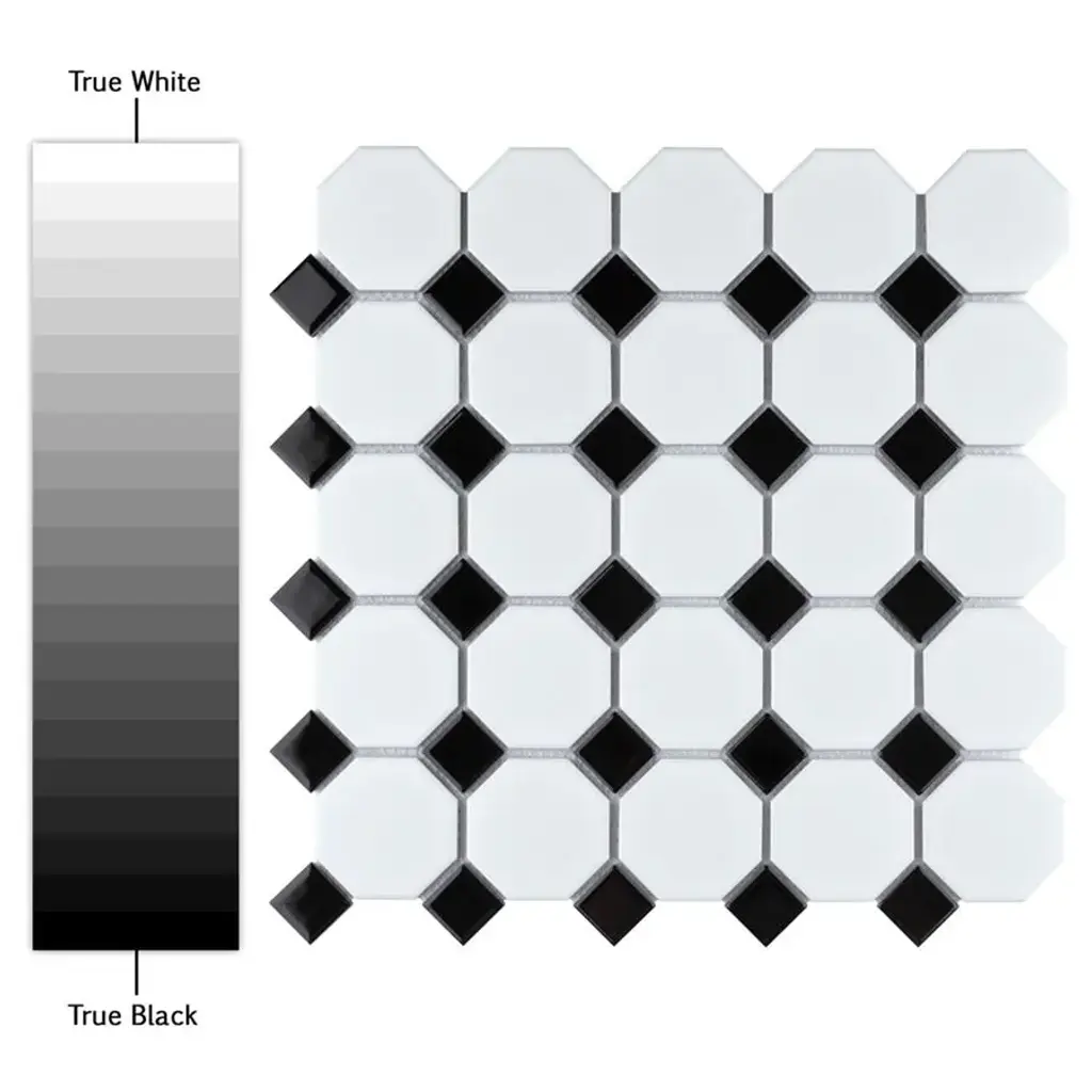 Transform your space into a tribute to retro design with our Metro Octagon Matte White with Black Dot 11-1/2" x 11-1/2" Porcelain Mosaic Floor and Wall Tile. As a modern deviation from the classic mosaic, this tile option is a throwback to traditional retro design with a contemporary feel. Matte white octagons are accentuated by small glossy black squares and precisely arranged on an interlocking mesh to create a seamless installation. This minimalistic geometric porcelain mosaic is unique yet simplistic enough to integrate into any design, ranging from traditional style renovations to modern home projects. Its impervious and frost-proof features make this an ideal tile for indoor and outdoor installations, including backsplashes, bathrooms, showers and kitchens. Tile is the better choice for your space. This tile is made from natural ingredients, making it a healthy choice as it is free from allergens, VOCs, formaldehyde and PVC.