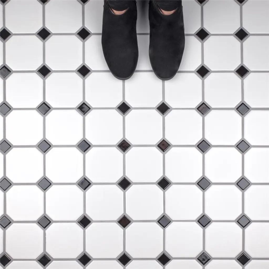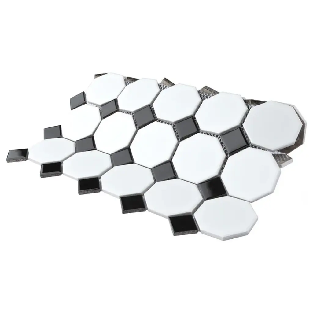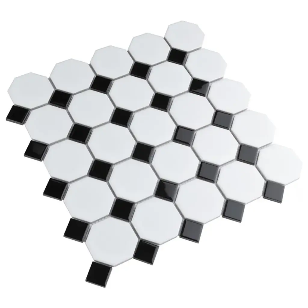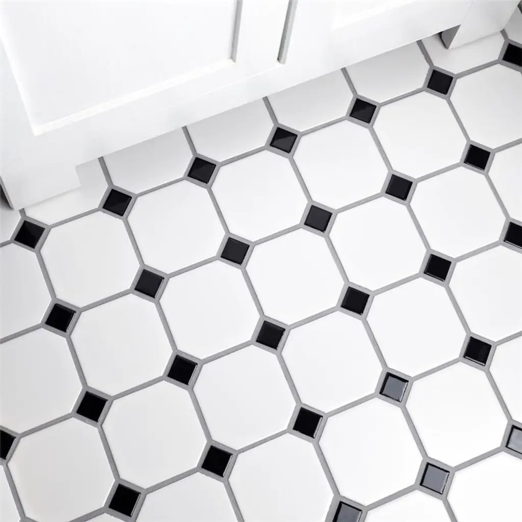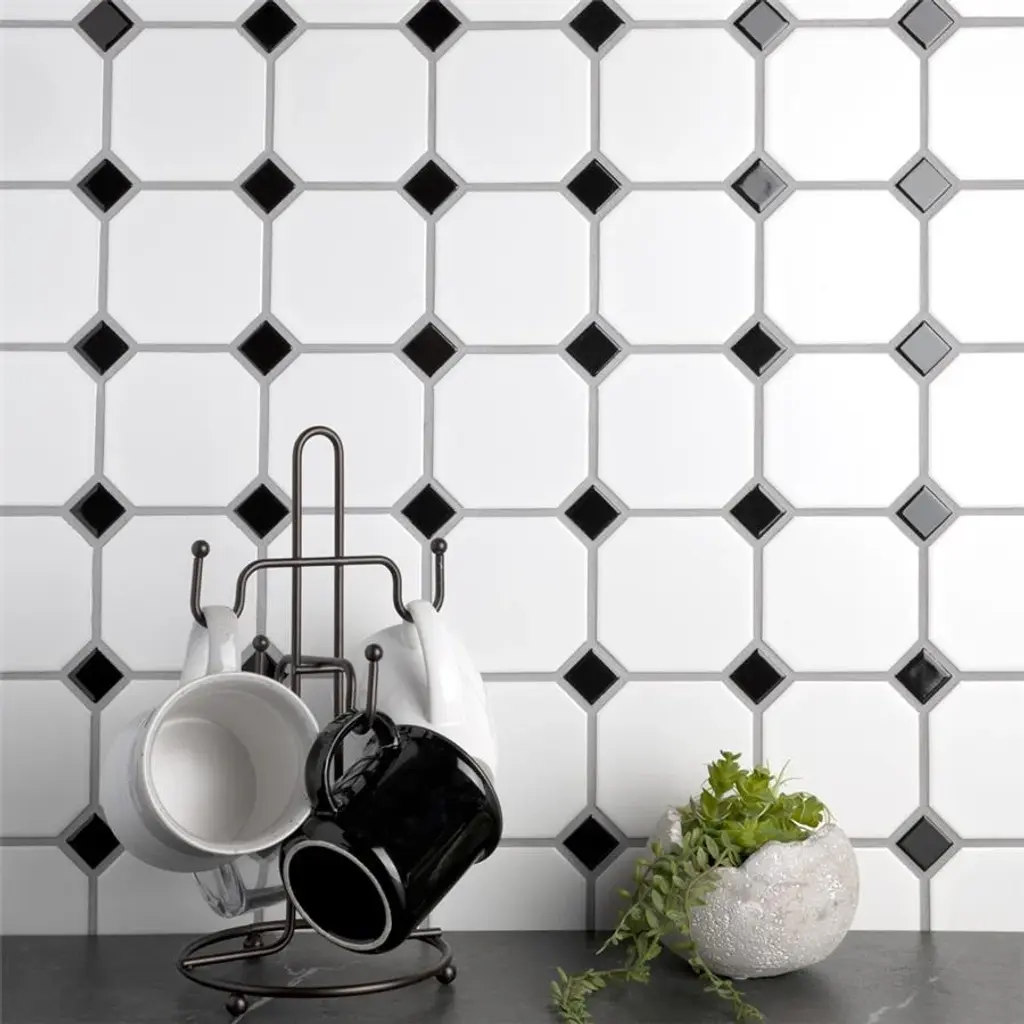 Transform your space into a tribute to retro design with our Metro Octagon Matte White with Black Dot 11-1/2" x 11-1/2" Porcelain Mosaic Floor and Wall Tile. As a modern deviation from the classic mosaic, this tile option is a throwback to traditional retro design with a contemporary feel. Matte white octagons are accentuated by small glossy black squares and precisely arranged on an interlocking mesh to create a seamless installation. This minimalistic geometric porcelain mosaic is unique yet simplistic enough to integrate into any design, ranging from traditional style renovations to modern home projects. Its impervious and frost-proof features make this an ideal tile for indoor and outdoor installations, including backsplashes, bathrooms, showers and kitchens. Tile is the better choice for your space. This tile is made from natural ingredients, making it a healthy choice as it is free from allergens, VOCs, formaldehyde and PVC.