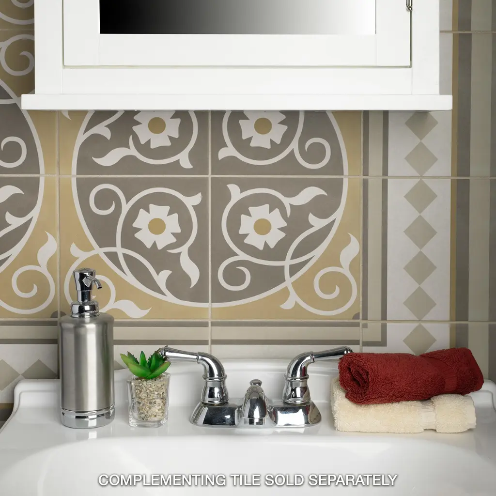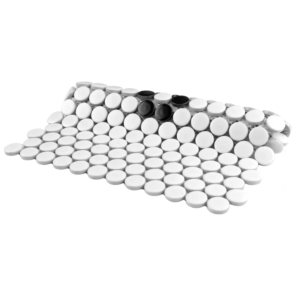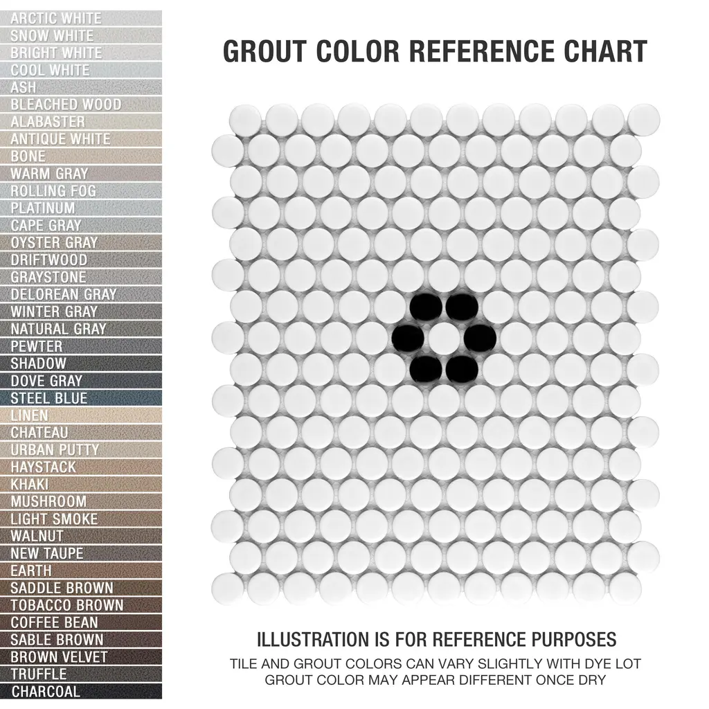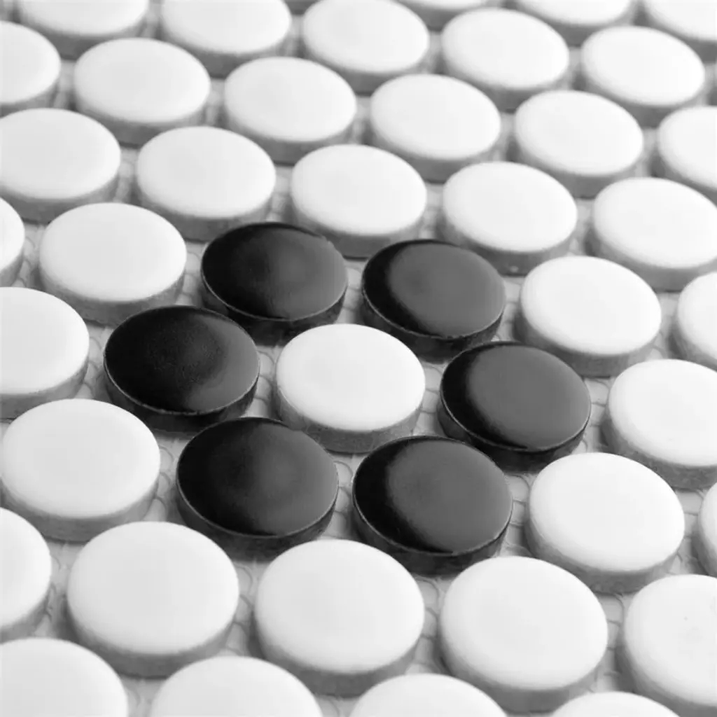 Transform your space into a tribute to retro design with our Metro Penny Matte White with Black Flower Porcelain Floor and Wall Mosaic Tile. As a modern deviation from the classic mosaic, this fresh option is a throwback to traditional retro design with a contemporary feel. Matte white penny rounds are accented by contrasting matte black penny rounds arranged into the shape of a flower on an interlocking mesh to create a seamless installation. This minimalistic geometric porcelain mosaic is unique yet simplistic enough to integrate into any design, ranging from traditional style renovations to modern home projects. Its impervious and frost resistant features make this an ideal tile for both residential indoor and outdoor use, including backsplashes, bathrooms, and kitchens. Tile is the better choice for your space. This tile is made from natural ingredients, making it a healthy choice as it is free from allergens, VOCs, formaldehyde and PVC. 8.0 square feet, 10 pieces per case. Case weight is 14.8 lbs. Grade 1, first-quality porcelain tile for floor and wall use 9.75 in. width x 11.5 in. length x 0.21 in. thick mesh-mounted mosaic Glazed, slightly textured finish with a low sheen and uniform appearance in tone PEI Rating II is suitable for all interior walls and light foot traffic such as powder rooms Impervious tiles have a water absorption of less than 0.5% for indoor and outdoor use and are frost resistant This tile has a COF wet rating less than or equal to 0.50 and is considered to have a marginally low skid resistance. This tile is not ADA approved for slip resistance. Completely frost resistant for indoor or outdoor applications; use a latex-modified thinset for acceptable bond strength Please note: A sample of this product may be a partial piece cut from the full size tile in order to provide an affordable and convenient way for customers to judge the quality and finish of this item. Samples are not returnable.