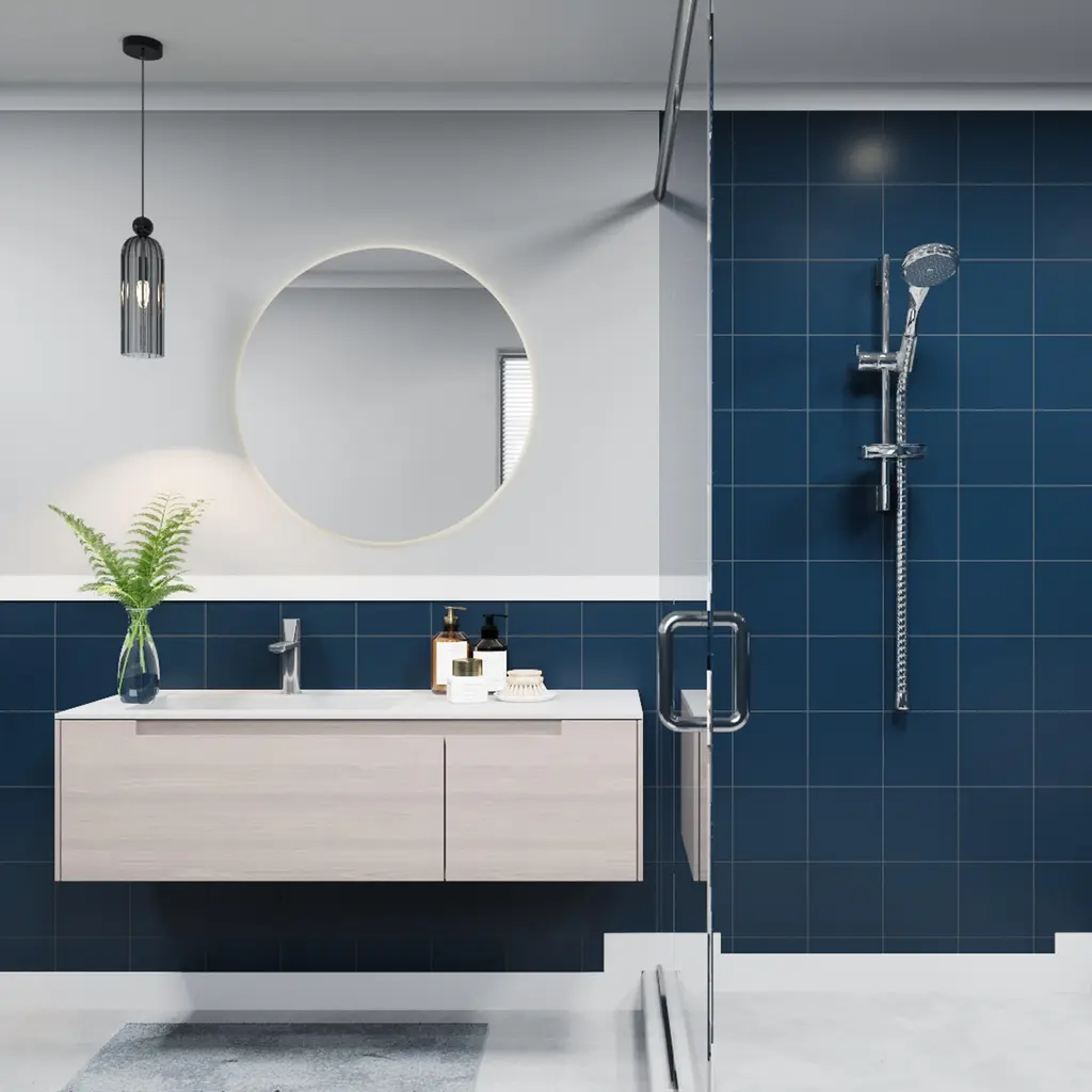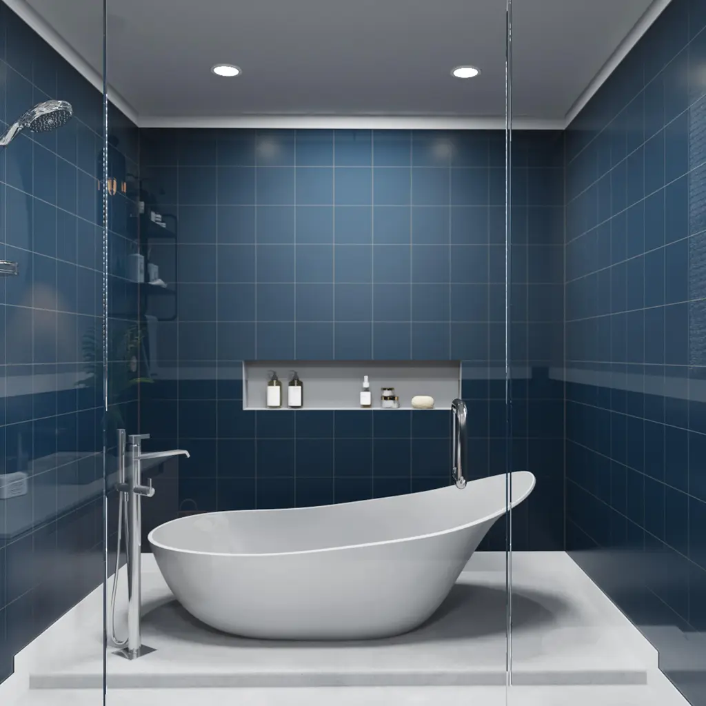 Offering a simplistic look, our Monocolor Premium Noche Ceramic Floor and Wall Tile features a smooth, matte finish, providing decorative appeal that adapts to a variety of stylistic contexts. The Monocolor Collection features vibrant and pastel colors with a slight sheen, offering 12 versatile options to create dramatic, unique designs that transform any space into a vibrant, custom masterpiece reflecting your style. With its vitreous features, this blue square tile is an ideal selection for indoor residential installations, including bathrooms, backsplashes, showers, hallways and fireplace facades. This tile is a perfect choice on its own or paired with other products in the Monocolor Collection. Tile is the better choice for your space! 11.25 square feet, 25 pieces per case. Case weight is 39.68 lbs. Grade 1, first-quality ceramic tile for floor and wall use 7.88 in. width x 7.88 in. length x 0.31 in. thick Glazed, smooth finish with a low sheen and uniform appearance in tone PEI Rating II is suitable for all interior walls and light foot traffic such as powder rooms Vitreous tiles have water absorption of more than 0.5% but less than 3% for indoor use This tile is not ADA approved for slip resistance with a DCOF value less than 0.42. Not frost resistant Please note: A sample of this product may be a partial piece cut from the full size tile in order to provide an affordable and convenient way for customers to judge the quality and finish of this item. Samples are not returnable.