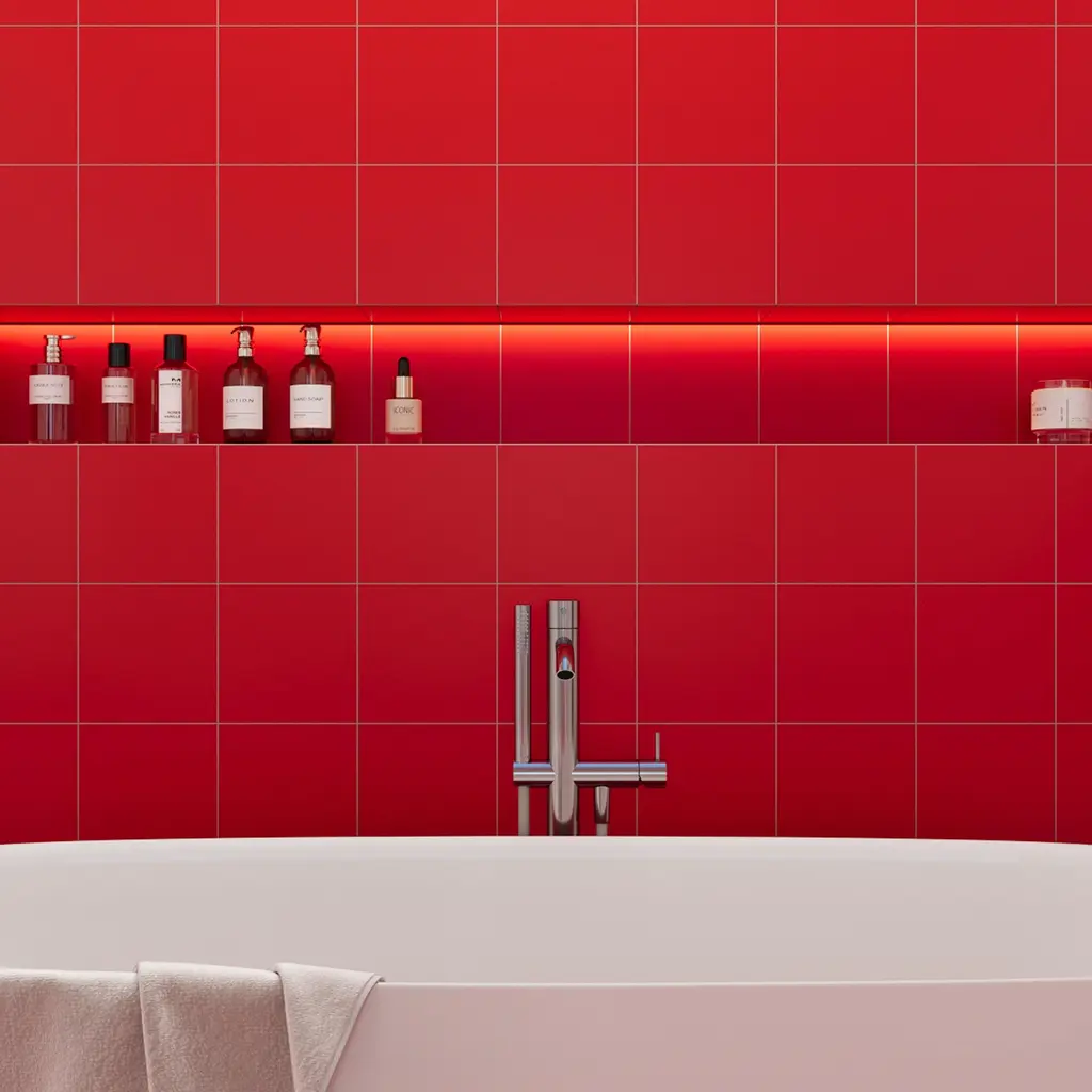 Offering a simplistic look, our Monocolor Premium Rojo Volcan Ceramic Floor and Wall Tile features a smooth, matte finish, providing decorative appeal that adapts to a variety of stylistic contexts. With its vitreous features, this red square tile is an ideal selection for indoor residential installations, including bathrooms, backsplashes, showers, hallways and fireplace facades. This tile is a perfect choice on its own or paired with other products in the Monocolor Collection. Tile is the better choice for your space! 11.25 square feet, 25 pieces per case. Case weight is 39.68 lbs. Grade 1, first-quality ceramic tile for floor and wall use 7.88 in. width x 7.88 in. length x 0.31 in. thick Glazed, smooth finish with a low sheen and uniform appearance in tone PEI Rating II is suitable for all interior walls and light foot traffic such as powder rooms Vitreous tiles have water absorption of more than 0.5% but less than 3% for indoor use This tile is not ADA approved for slip resistance with a DCOF value less than 0.42. Not frost resistant Please note: A sample of this product may be a partial piece cut from the full size tile in order to provide an affordable and convenient way for customers to judge the quality and finish of this item. Samples are not returnable.