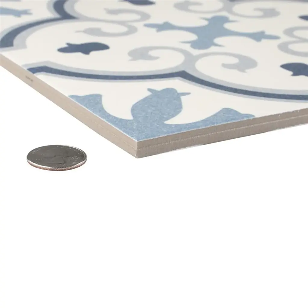 Capturing the appearance of an encaustic look, our Monteca Green Porcelain Floor and Wall Tile features a smooth, satin finish, providing decorative appeal that adapts to a variety of stylistic contexts. With its impervious, frost-resistant features, this white square tile is an ideal selection for a variety of spaces including indoor and outdoor commercial and residential installations, kitchens, bathrooms, backsplashes, showers, hallways, entryways, patios, pools and fireplace facades. This tile is a perfect choice on its own or with other products in the Merola Tile, Monteca Collection. To ensure optimal results, please consult with your installer and review the product specifications to confirm that this tile meets the specific needs of your project.