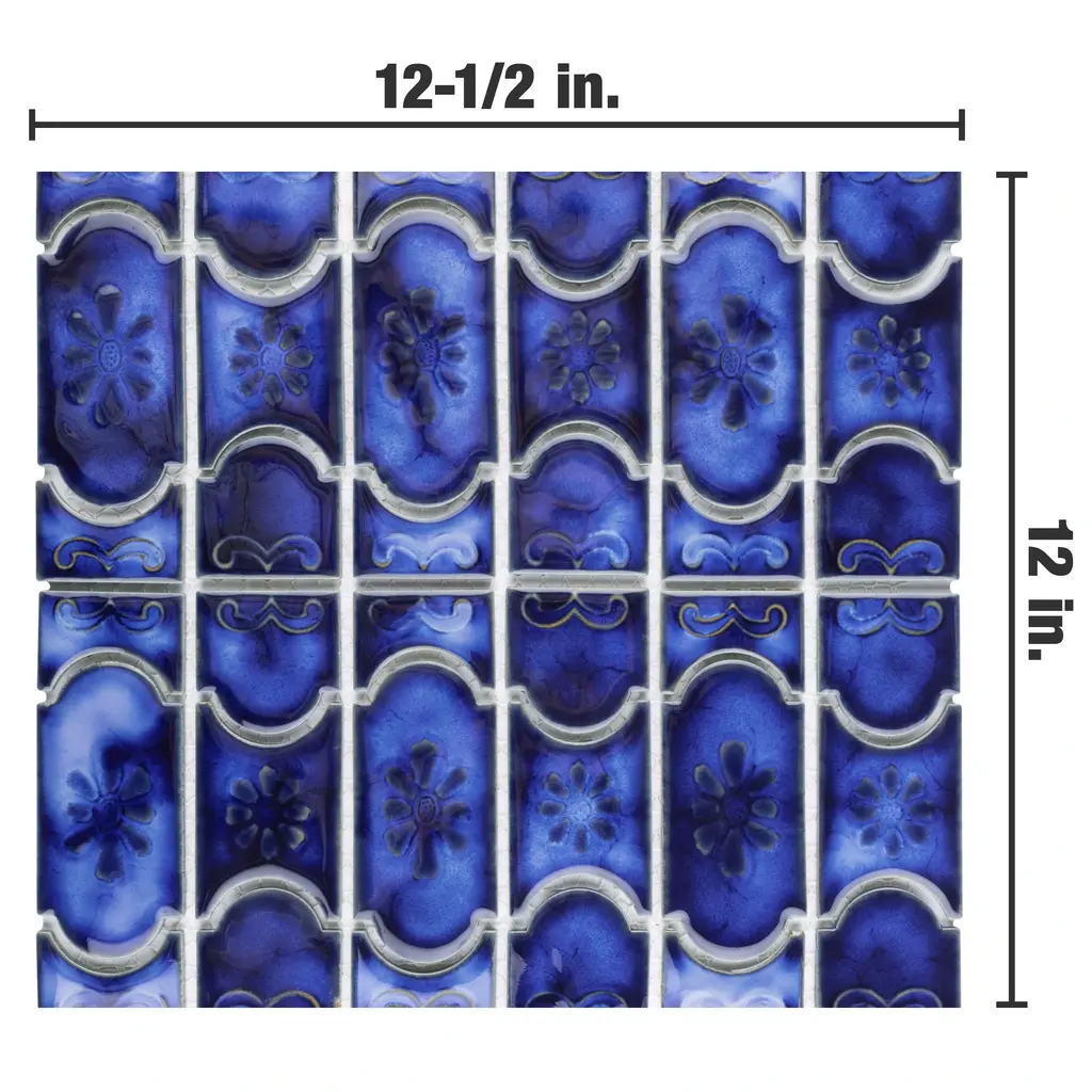 Our Montego Sapphire Porcelain Mosaic Floor and Wall Tile features a unique mosaic composition as well as a beautiful multi-tonal glaze. With a glossy finish in multiple tones of dark blue, this tile is unique yet simplistic enough to integrate into any design, ranging from traditional style renovations to modern home projects. Its impervious and frost-resistant features makes it an ideal choice for both indoor and outdoor residential use, including backsplashes, bathrooms, showers and kitchens. This tile is a perfect choice on its own or paired with other products in the Montego Collection. Tile is the better choice for your space. This tile is made from natural ingredients, making it a healthy choice as it is free from allergens, VOCs, formaldehyde and PVC. 10.6 square feet, 10 pieces per case. Case weight is 23.2 lbs. Grade 1, first-quality porcelain tile for floor and wall use 12 in. width x 12.5 in. length x 0.19 in. thick mesh-mounted mosaic Glazed, smooth finish with a high sheen and moderate variation in tone PEI Rating II is suitable for all interior walls and light foot traffic such as powder rooms Impervious tiles have a water absorption of less than 0.5% for indoor and outdoor use and are frost resistant This tile has a COF wet rating less than or equal to 0.50 and is considered to have a marginally low skid resistance. This tile is not ADA approved for slip resistance. Completely frost resistant for indoor or outdoor applications; use a latex-modified thinset for acceptable bond strength Please note: A sample of this product may be a partial piece cut from the full size tile in order to provide an affordable and convenient way for customers to judge the quality and finish of this item. Samples are not returnable.
