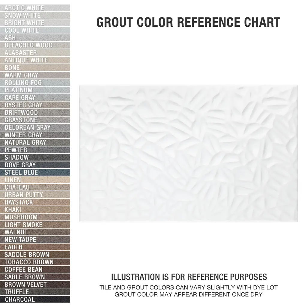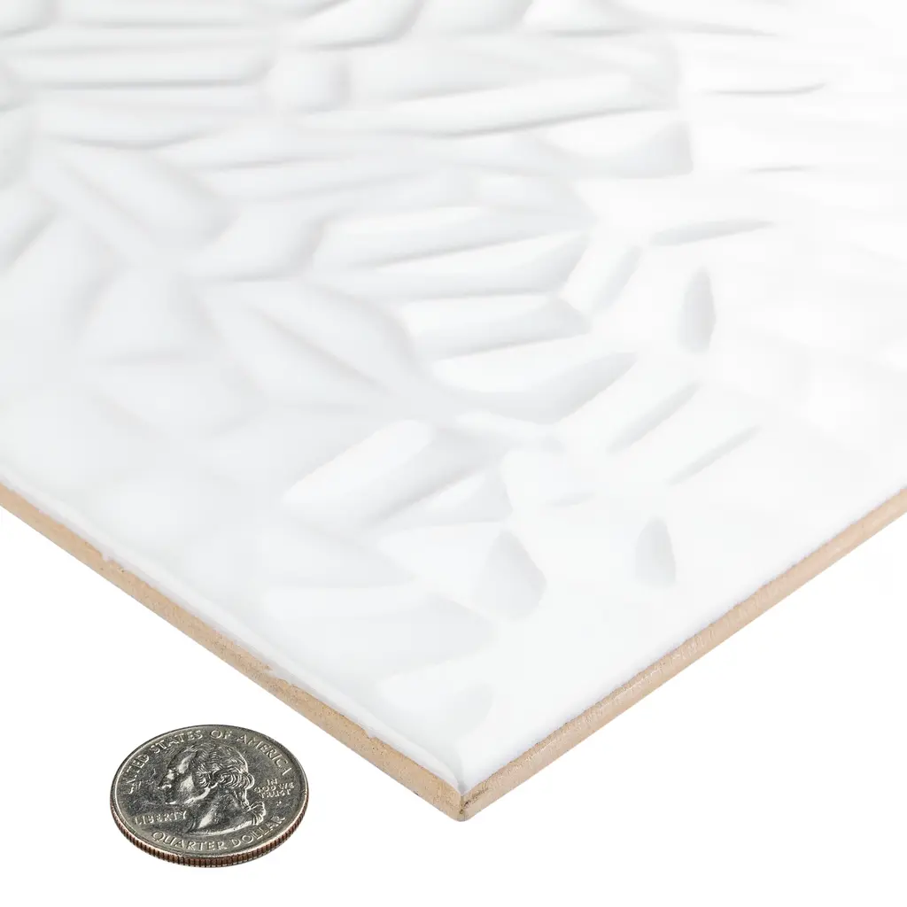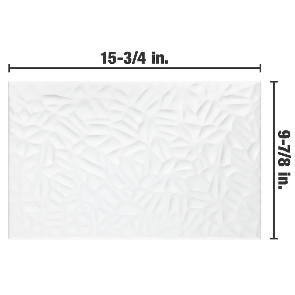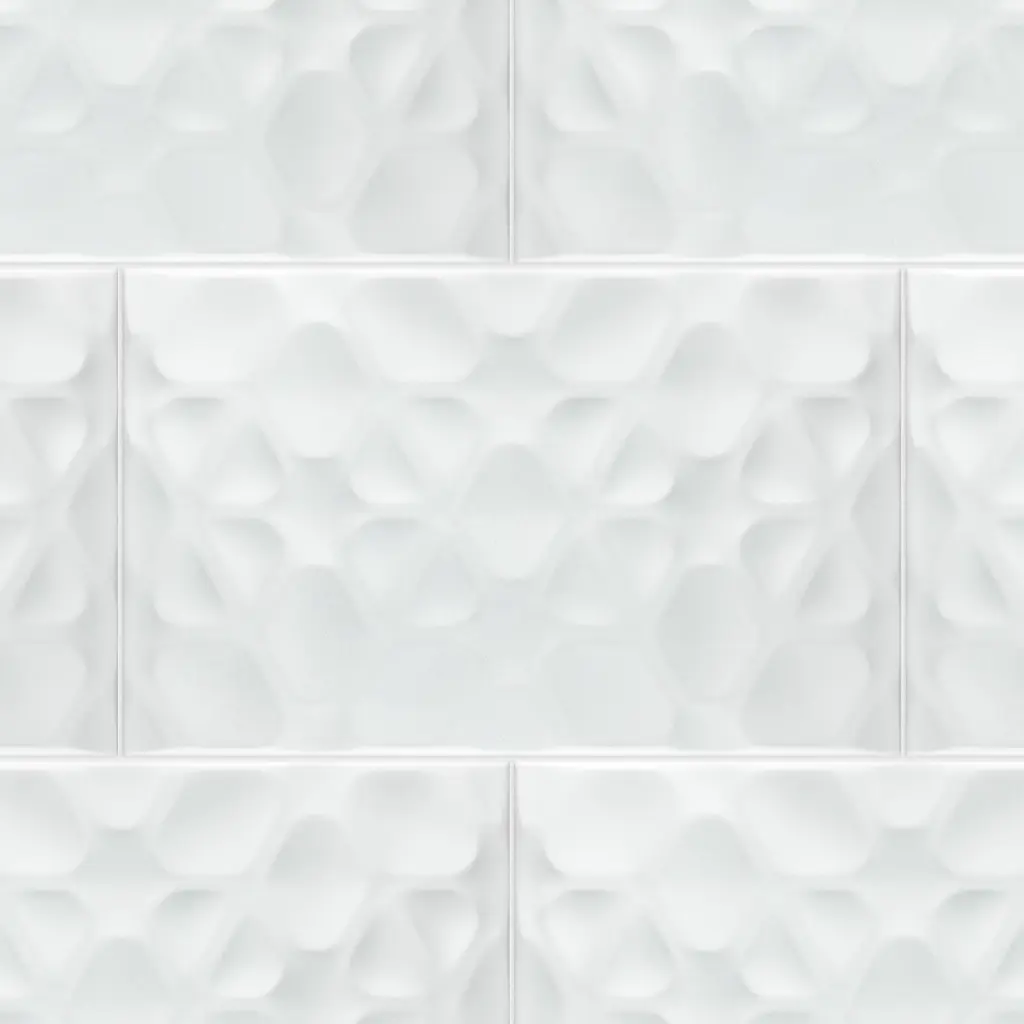 Our More Petal Glossy Ceramic Wall Tile lends a contemporary aesthetic to any space through its simple yet captivating design. Featuring a smooth three-dimensional surface with abstract effects, this glossy white wall tile creates visual rhythm and depth. Given its versatile appearance and format, this tile can be integrated into any design, ranging from traditional style renovations to modern home projects. Intended for interior wall use, it is an ideal choice for kitchen backsplashes, bathroom showers and fireplace facades. Tile is the better choice for your space. This tile is made from natural ingredients, making it a healthy choice as it is free from allergens, VOCs, formaldehyde, and PVC. 10.9 square feet, 10 pieces per case. Case weight is 33 lbs. Grade 1, first-quality ceramic tile for wall use 9.88 in. width x 15.75 in. length x 0.38 in. thick Glazed, smooth finish with a high sheen and uniform appearance in tone PEI Rating 0 is suitable for wall use only Non-Vitreous tiles have water absorption of more than 7% for indoor use DCOF value is not available for this product. Please reference the PEI and MOHS rating for installation. Not frost resistant Please note: A sample of this product may be a partial piece cut from the full size tile in order to provide an affordable and convenient way for customers to judge the quality and finish of this item. Samples are not returnable.