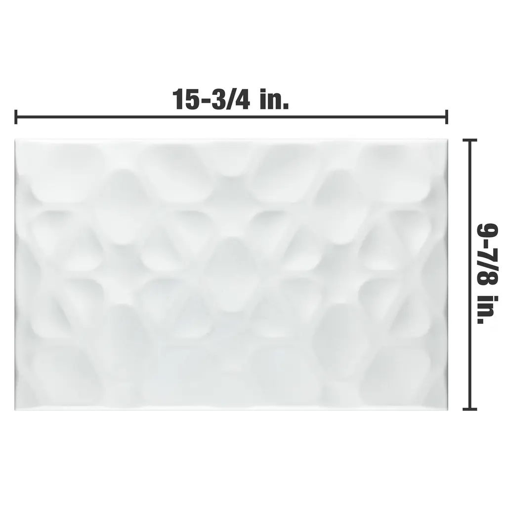 Our More Pure Matte Ceramic Wall Tile lends a contemporary aesthetic to any space through its simple yet captivating design. Featuring a smooth three-dimensional surface with geometric effects, this matte white wall tile creates visual rhythm and depth. Given its versatile appearance and format, this tile can be integrated into any design, ranging from traditional style renovations to modern home projects. Intended for interior wall use, it is an ideal choice for kitchen backsplashes, bathroom showers and fireplace facades. Tile is the better choice for your space. This tile is made from natural ingredients, making it a healthy choice as it is free from allergens, VOCs, formaldehyde, and PVC. 10.9 square feet, 10 pieces per case. Case weight is 33 lbs. Grade 1, first-quality ceramic tile for wall use 9.88 in. width x 15.75 in. length x 0.38 in. thick Glazed, smooth finish with a low sheen and uniform appearance in tone PEI Rating 0 is suitable for wall use only Non-Vitreous tiles have water absorption of more than 7% for indoor use DCOF value is not available for this product. Please reference the PEI and MOHS rating for installation. Not frost resistant Please note: A sample of this product may be a partial piece cut from the full size tile in order to provide an affordable and convenient way for customers to judge the quality and finish of this item. Samples are not returnable.