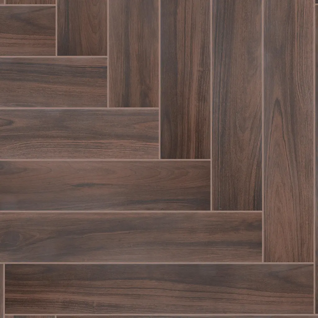 Replicating a wood look, our Mt Royale Pecan Porcelain Floor and Wall Tile features a smooth, matte finish, making it a great choice for your space. With its impervious, frost-resistant features, this brown rectangle tile is an ideal selection for both indoor and outdoor residential installations, including kitchens, bathrooms, backsplashes, showers, hallways and fireplace facades. This tile is a perfect choice on its own or paired with other products in the Mt Royale Collection. Tile is the better choice for your space. This tile is made from natural ingredients, making it a healthy choice as it is free from allergens, VOCs, formaldehyde, and PVC.68.4 square feet, 45 pieces per pallet. Pallet weight is 292.75 lbs.Grade 1, first-quality porcelain tile for floor and wall use6 in. width x 35.5 in. length x 0.38 in. thickGlazed, smooth finish with a low sheen and moderate variation in tonePEI Rating III is suitable for medium-duty residential floors including kitchens, halls, corridors, balconies, terraces and areas used more often with normal footwear and small amounts of dirtImpervious tiles have a water absorption of less than 0.5% for indoor and outdoor use and is frost resistantNo COF value available for this product - please refer to the PEI and DCOF ratings for product durability and resistanceCompletely frost resistant for indoor or outdoor applications; use a latex-modified thinset for acceptable bond strengthResidential use onlyPlease note: A sample of this product may be a partial piece cut from the full size tile in order to provide an affordable and convenient way for customers to judge the quality and finish of this item. Samples are not returnable.