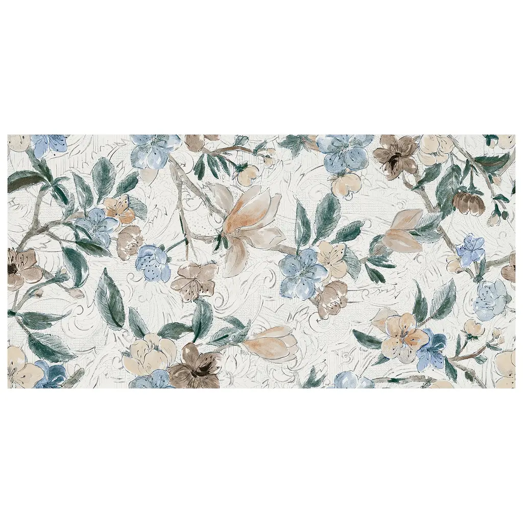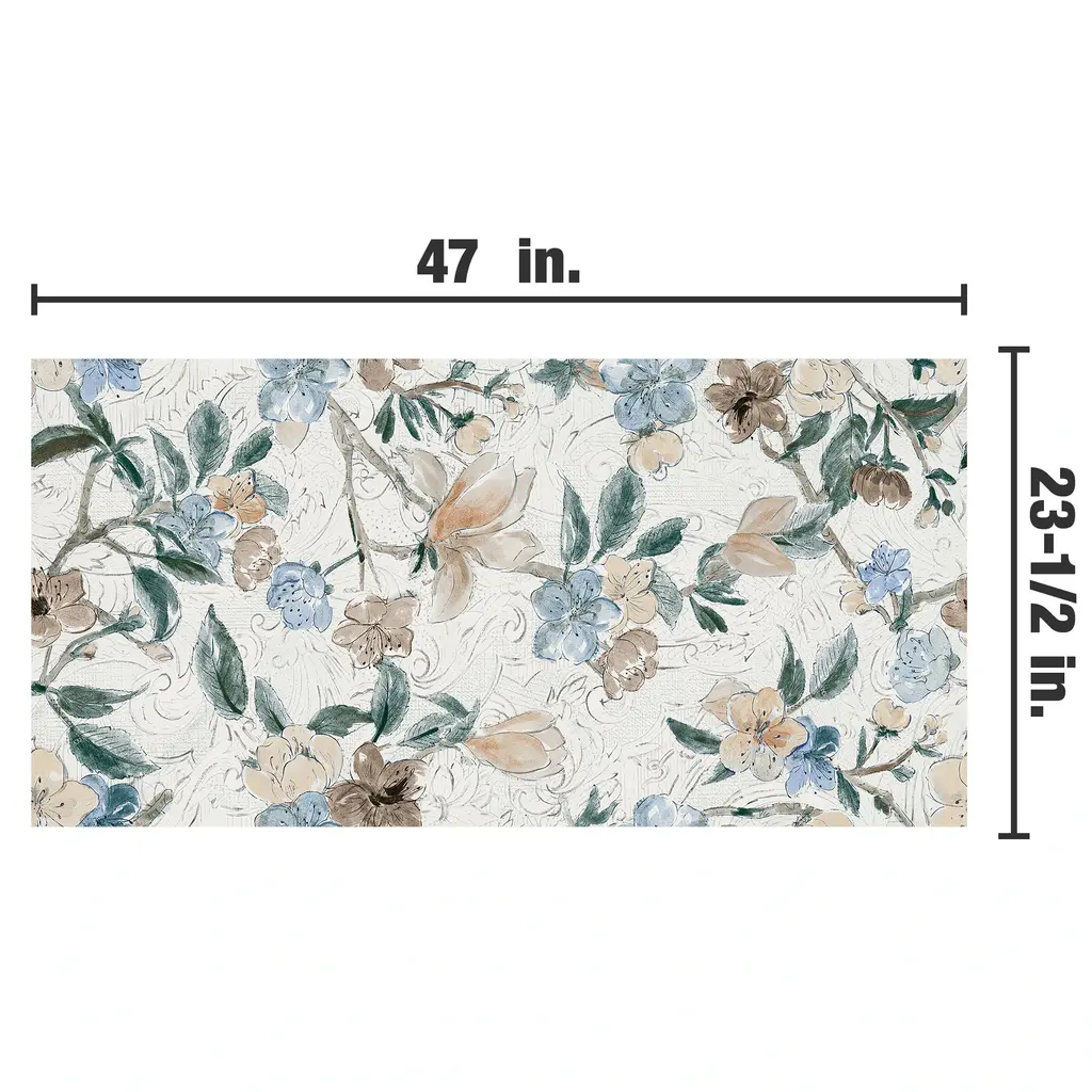 Inspired by a floral look, our Parete Setoso White Porcelain Floor and Wall Tile features a mixed textured finish, providing decorative appeal that adapts to a variety of stylistic contexts. The Parete Setoso Collection blends traditional artistry with digital innovation and mixed glazing on mural-esque floral tiles, crafting an enchantingly unique atmosphere. Containing 4 different print variations that are randomly distributed throughout each case, this white rectangle tile offers a one-of-a-kind look. With its impervious, frost-resistant features, this tile is an ideal selection for both indoor and outdoor commercial and residential installations, including kitchens, bathrooms, backsplashes, showers, hallways, entryways, patios and fireplace facades. This tile is a perfect choice on its own or paired with other products in the Parete Collection. Tile is the better choice for your space! 92.4 square feet, 12 pieces per pallet. Pallet weight is 314.52 lbs. Grade 1, first-quality porcelain tile for floor and wall use 23.5 in. width x 47 in. length x 0.28 in. thick Glazed, mixed texture with a mixed finish and slight variation in tone PEI Rating V is suitable for both residential and high-traffic commercial use including extra heavy-duty floors and areas subject to severe pedestrian traffic over sustained periods with some dirt such as shopping centers, airport concourses, public walkways and industrial applications Impervious tiles have a water absorption of less than 0.5% for indoor and outdoor use and are frost resistant This tile has no available COF wet rating. This tile is not ADA approved for slip resistance. Completely frost resistant for indoor or outdoor applications; use a latex-modified thinset for acceptable bond strength Please note: A sample of this product may be a partial piece cut from the full size tile in order to provide an affordable and convenient way for customers to judge the quality and finish of this item. Samples are not returnable.