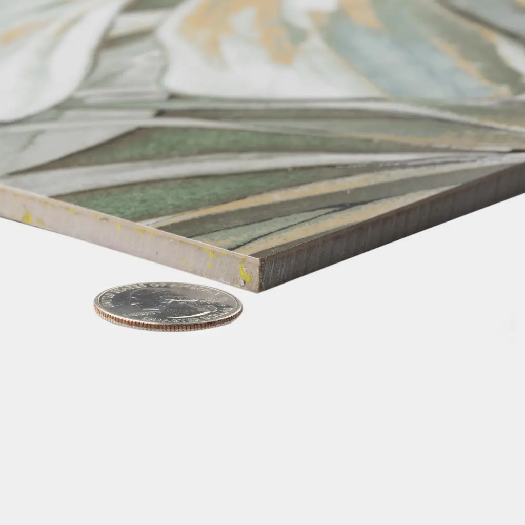 Inspired by a floral look, our Parete Tropici Green Porcelain Floor and Wall Tile features a mixed textured finish, providing decorative appeal that adapts to a variety of stylistic contexts. Containing 4 different print variations that are randomly distributed throughout each case, this green rectangle tile offers a one-of-a-kind look. With its impervious, frost-resistant features, this tile is an ideal selection for both indoor and outdoor commercial and residential installations, including kitchens, bathrooms, backsplashes, showers, hallways, entryways, patios and fireplace facades. This tile is a perfect choice on its own or paired with other products in the Parete Collection. Tile is the better choice for your space! 92.4 square feet, 12 pieces per pallet. Pallet weight is 314.52 lbs. Grade 1, first-quality porcelain tile for floor and wall use 23.5 in. width x 47 in. length x 0.28 in. thick Glazed, mixed texture with a mixed finish and slight variation in tone PEI Rating IV has high resistance to abrasion and is suitable for heavy-duty residential and commercial kitchens, hotels, exhibition and sales rooms with some dirt conditions Impervious tiles have a water absorption of less than 0.5% for indoor and outdoor use and are frost resistant This tile has no available COF wet rating. This tile is not ADA approved for slip resistance. Completely frost resistant for indoor or outdoor applications; use a latex-modified thinset for acceptable bond strength Please note: A sample of this product may be a partial piece cut from the full size tile in order to provide an affordable and convenient way for customers to judge the quality and finish of this item. Samples are not returnable.