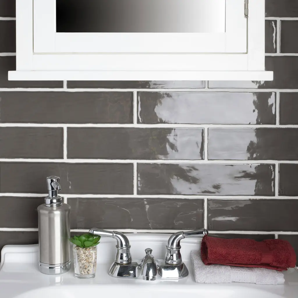 Featuring a simple yet sophisticated appearance, our Park Slope Subway Glossy Black Ceramic Wall Tile can elevate spaces through its classic and clean design. With a high-gloss finish, this black subway tile adds sophisticated depth to any space. Given the versatility of its format, this tile is unique yet simplistic enough to integrate into any design, ranging from traditional style renovations to modern home projects. Intended for indoor wall use, this tile is an ideal choice for backsplashes, bathrooms, showers, and kitchens. Tile is the better choice for your space. This tile is made from natural ingredients, making it a healthy choice as it is free from allergens, VOCs, formaldehyde, and PVC. 11.18 square feet, 86 pieces per case. Case weight is 25.8 lbs. Grade 1, first-quality ceramic tile for wall use 3 in. width x 6 in. length x 0.28 in. thick Glazed, smooth finish with a high sheen and uniform appearance in tone PEI Rating 0 is suitable for wall use only Non-Vitreous tiles have water absorption of more than 7% for indoor use No COF value available for this product - please refer to the PEI and DCOF ratings for product durability and resistance Not frost resistant Commercial and residential usePlease note: A sample of this product may be a partial piece cut from the full size tile in order to provide an affordable and convenient way for customers to judge the quality and finish of this item. Samples are not returnable.