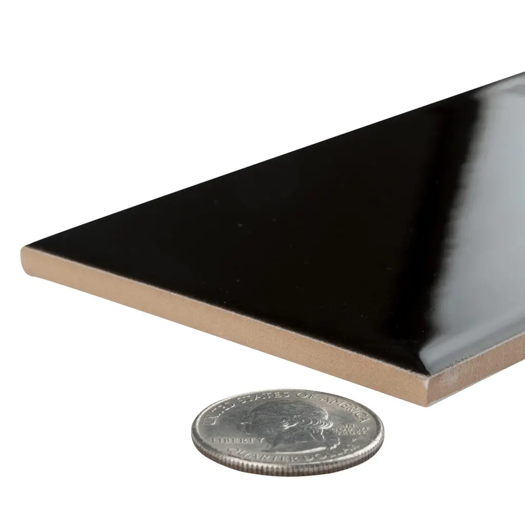 Merola Tile Park Slope Subway Glossy Black 3" X 6" Ceramic Wall Tile - Sample Swatch