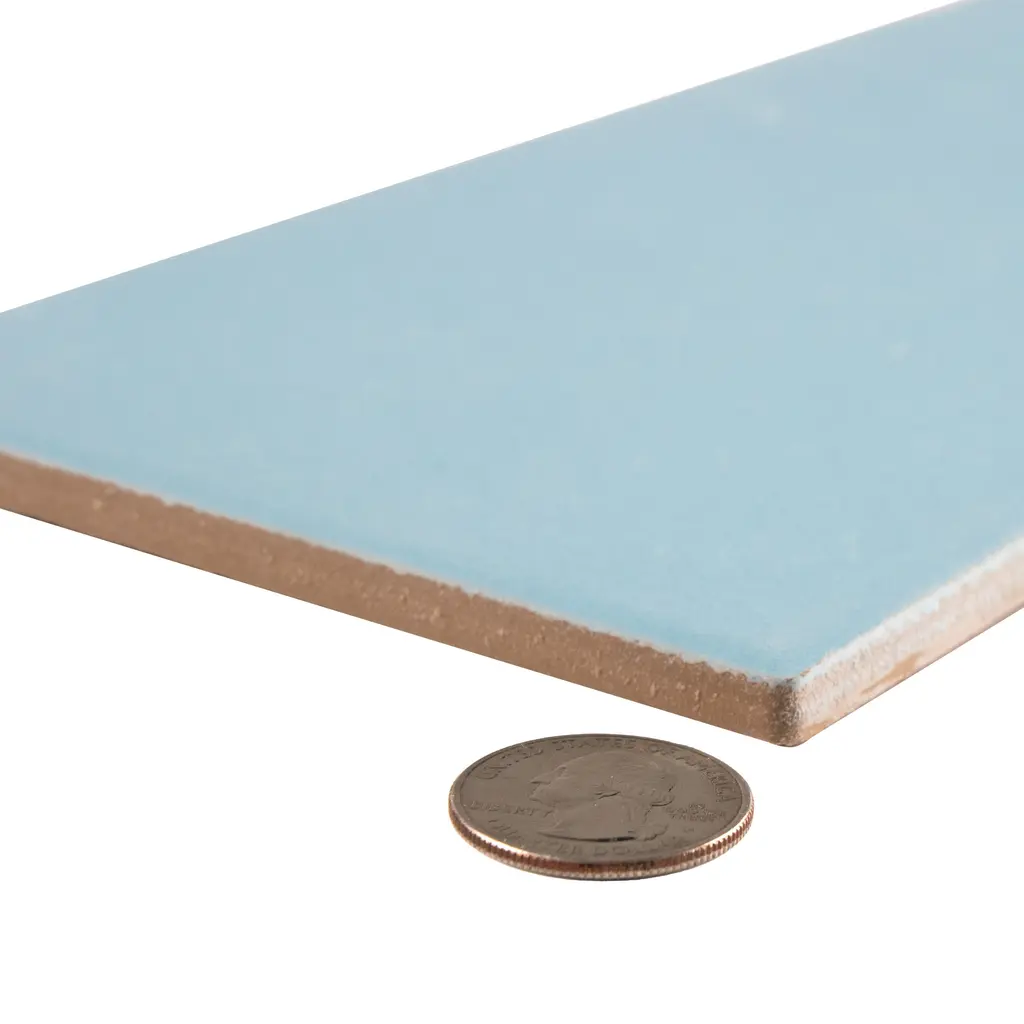 Offering a subway look, our Piscina Brick Matte Light Blue Porcelain Floor and Wall Tile features a slightly textured, matte finish, providing decorative appeal that adapts to a variety of stylistic contexts. Inspired by nature’s resilience and modern engineering, Piscina matte porcelain tiles offer unmatched durability and a non-slip surface, ensuring safety and elegance in high-traffic areas, making them perfect for both residential use, and commercial use in specified locations. With its impervious, frost-resistant features, this blue rectangle tile is an ideal selection for both indoor and outdoor commercial and residential installations, including kitchens, bathrooms, backsplashes, showers, hallways, entryways, patios and fireplace facades. This tile is a perfect choice on its own or paired with other products in the Piscina Collection. Tile is the better choice for your space! 11.22 square feet, 34 pieces per case. Case weight is 39.25 lbs. Grade 1, first-quality porcelain tile for floor and wall use 4.75 in. width x 9.63 in. length x 0.31 in. thick Glazed, slightly textured finish with a low sheen and uniform appearance in tone PEI Rating IV has high resistance to abrasion and is suitable for heavy-duty residential and commercial kitchens, hotels, exhibition and sales rooms with some dirt conditions Impervious tiles have a water absorption of less than 0.5% for indoor and outdoor use and are frost resistant This tile is ADA approved for slip resistance with a DCOF value of 0.42 or higher. Completely frost resistant for indoor or outdoor applications; use a latex-modified thinset for acceptable bond strength Please note: A sample of this product may be a partial piece cut from the full size tile in order to provide an affordable and convenient way for customers to judge the quality and finish of this item. Samples are not returnable.