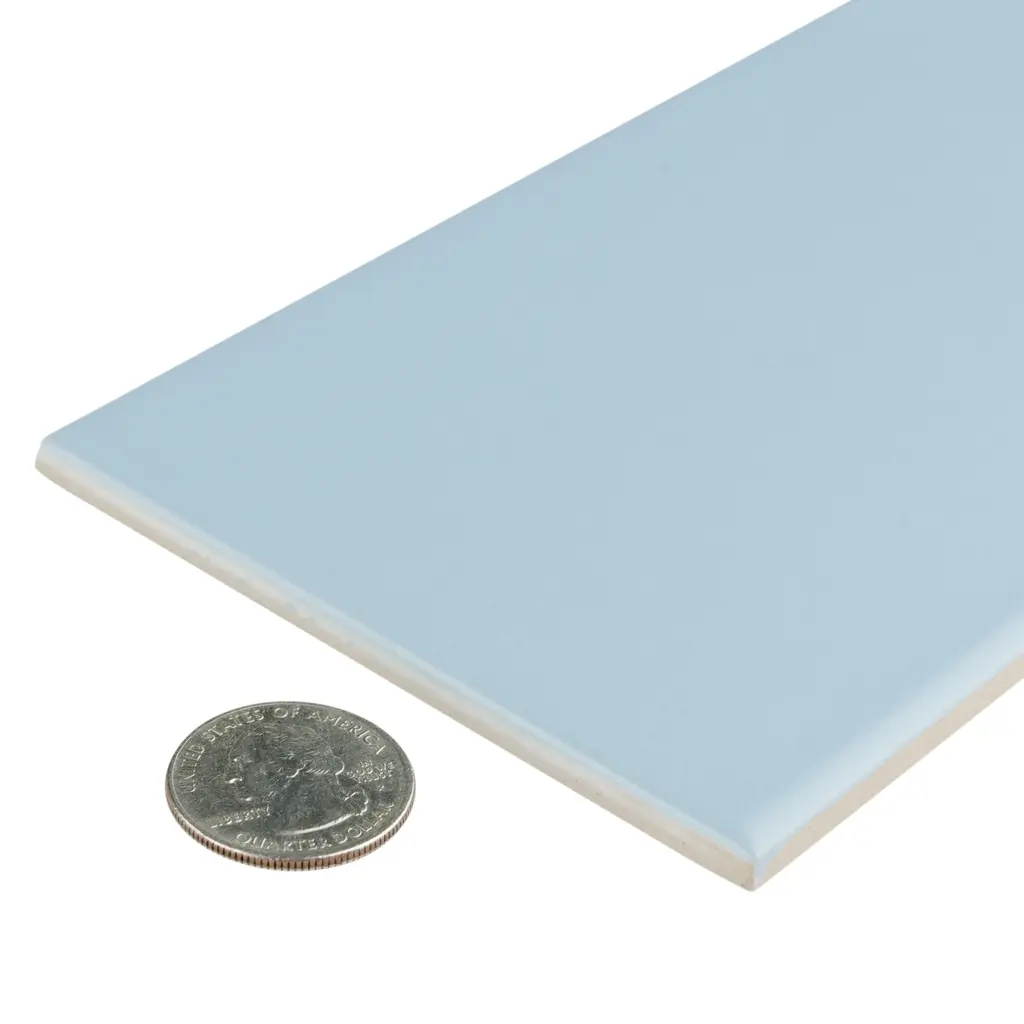 Our Projectos Sky Blue Ceramic Floor and Wall Tile instantly elevates spaces through a refreshing combination of timeless design and subtle color. The soft, sky blue glaze is uniformly applied to create a striking matte surface that offers eye-catching beauty. Given the versatility of its format, this subway tile is unique yet simple enough to integrate into any design, ranging from traditional style renovations to modern home projects. Intended for both indoor and outdoor residential use, this tile is an ideal choice for kitchen backsplashes, bathroom showers, powder rooms and fireplace facades. This tile is a perfect choice on its own or paired with other products in the Projectos Collection. Tile is the better choice for your space. This tile is made from natural ingredients, making it a healthy choice as it is free from allergens, VOCs, formaldehyde and PVC. 11.0 square feet, 50 pieces per case. Case weight is 27.73 lbs. Grade 1, first-quality ceramic tile for floor and wall use 3.88 in. width x 7.75 in. length x 0.22 in. thick Glazed, smooth finish with a low sheen and uniform appearance in tone PEI Rating II is suitable for all interior walls and light foot traffic such as powder rooms Vitreous tiles have water absorption of more than 0.5% but less than 3% for indoor use and some outdoor applications and are frost resistant This tile has no available COF wet rating. This tile is not ADA approved for slip resistance. Completely frost resistant for indoor or outdoor applications; use a latex-modified thinset for acceptable bond strength Please note: Samples are not returnable