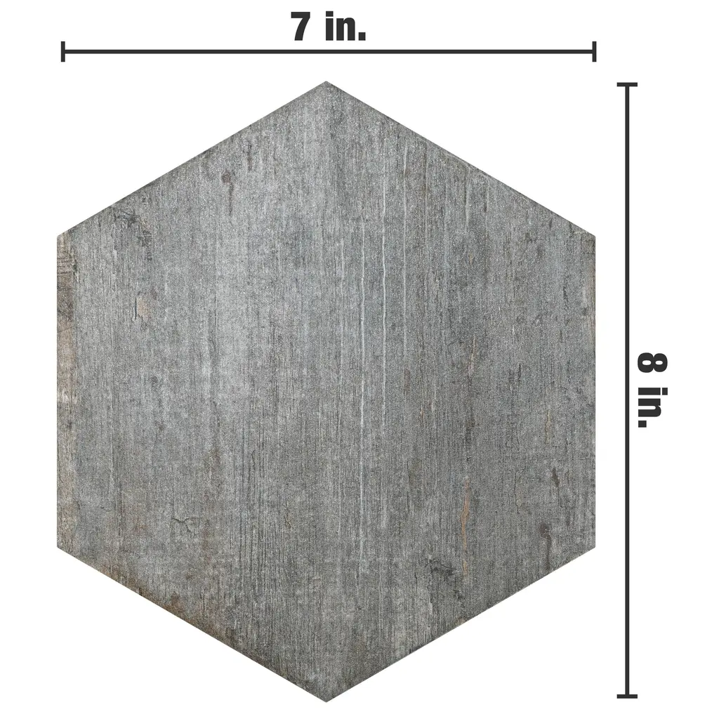 Replicating a wood look, our Retro Mini Hex Cendra Porcelain Floor and Wall Tile features a slightly textured, matte finish, providing decorative appeal that adapts to a variety of stylistic contexts. Containing 12 different print variations that are randomly distributed throughout each case, this brown hexagon tile offers a one-of-a-kind look. With its impervious, frost-resistant features, this tile is an ideal selection for both indoor and outdoor residential installations, including kitchens, bathrooms, backsplashes, showers, hallways and fireplace facades. This tile is a perfect choice on its own or paired with other products in the Retro Collection. Tile is the better choice for your space! 11.16 square feet, 36 pieces per case. Case weight is 49.6 lbs. Grade 1, first-quality porcelain tile for floor and wall use 7 in. width x 8 in. length x 0.39 in. thick Glazed, slightly textured finish with a low sheen and slight variation in tone PEI Rating III is suitable for medium-duty residential floors including kitchens, halls, corridors, balconies, terraces and areas used more often with normal footwear and small amounts of dirt Impervious tiles have a water absorption of less than 0.5% for indoor and outdoor use and are frost resistant This tile is ADA approved for slip resistance with a DCOF value of 0.42 or higher. Completely frost resistant for indoor or outdoor applications; use a latex-modified thinset for acceptable bond strength Please note: A sample of this product may be a partial piece cut from the full size tile in order to provide an affordable and convenient way for customers to judge the quality and finish of this item. Samples are not returnable.