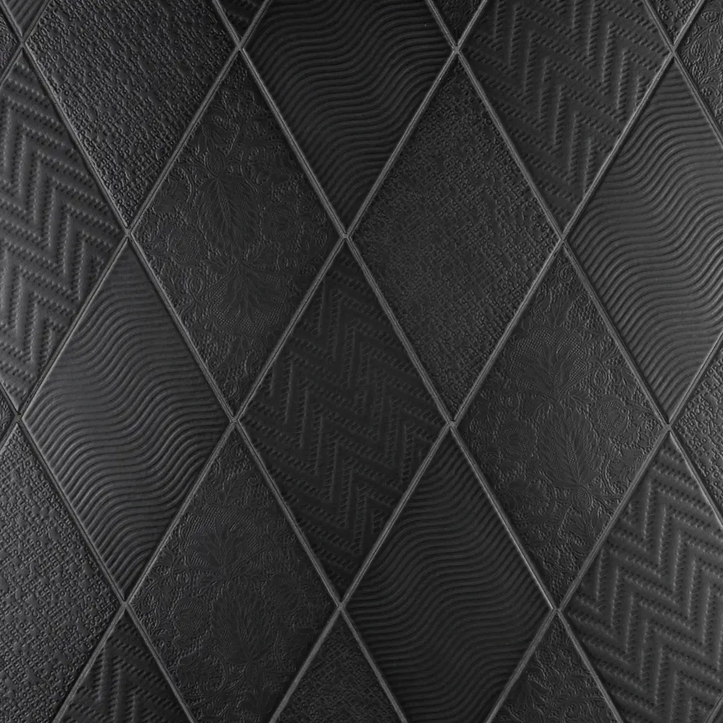Merola Tile Rhombus Black 5-1/2" X 9-1/2" Porcelain Floor And Wall Tile - Sample Swatch