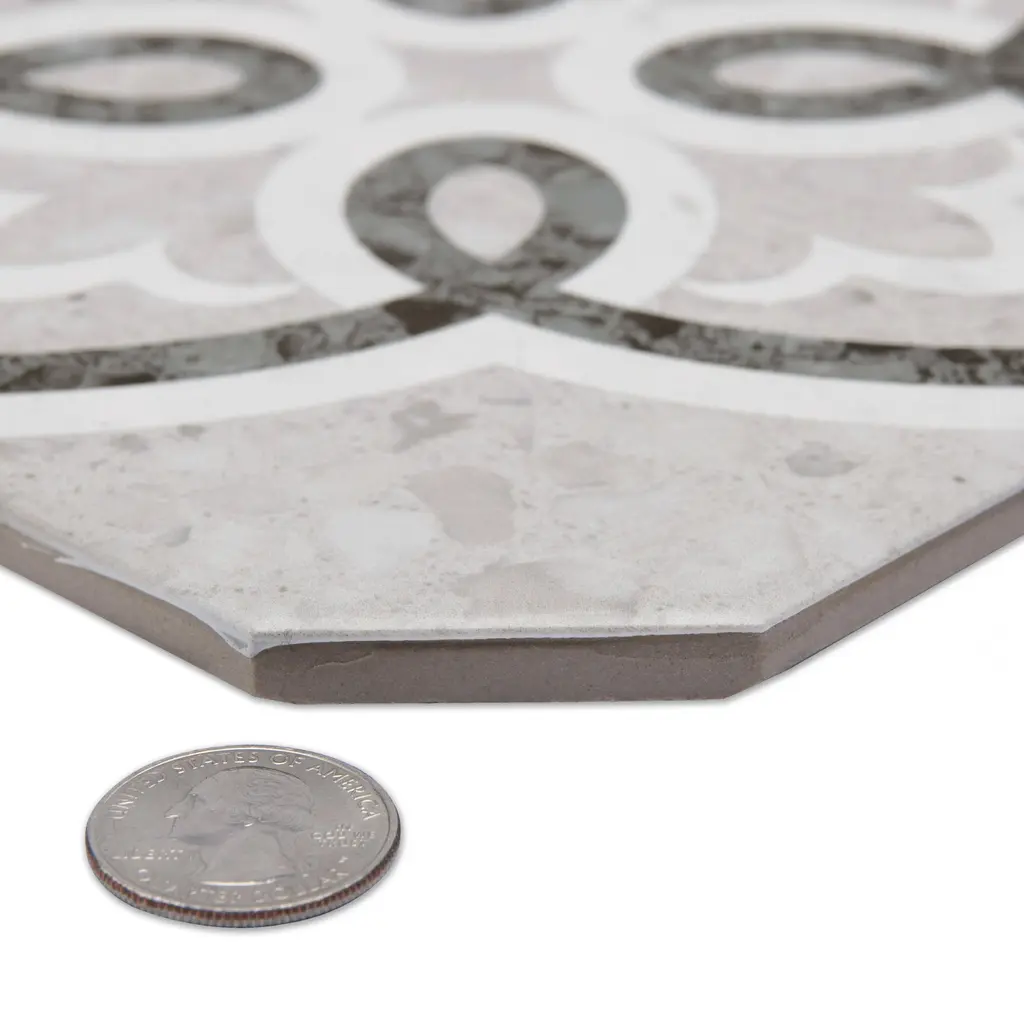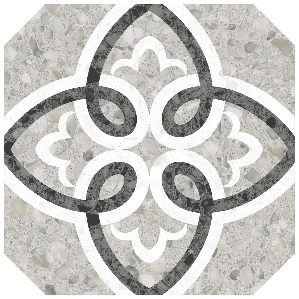 Replicating a terrazzo look, our Riviera Octagon Garde Gris Porcelain Floor and Wall Tile features a slightly textured, matte finish, providing decorative appeal that adapts to a variety of stylistic contexts. Containing 20 different print variations that are randomly distributed throughout each case, this gray octagon tile offers a one-of-a-kind look. With its impervious, frost-resistant features, this tile is an ideal selection for a variety of spaces including indoor and outdoor residential installations, kitchens, bathrooms, backsplashes, showers, hallways, pools and fireplace facades. Discover more products from the Merola Tile Riviera Collection to complete your design. To ensure optimal results, please consult with your installer and review the product specifications to confirm that this tile meets the specific needs of your project.