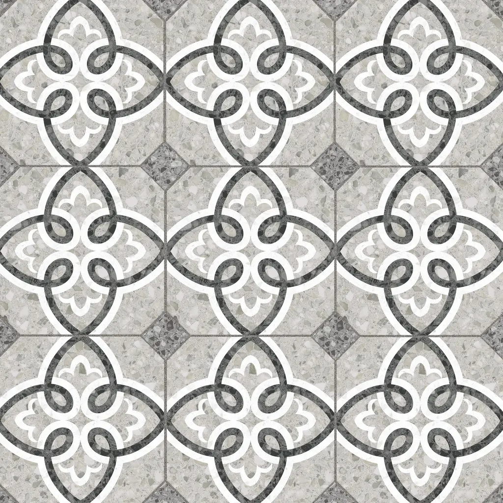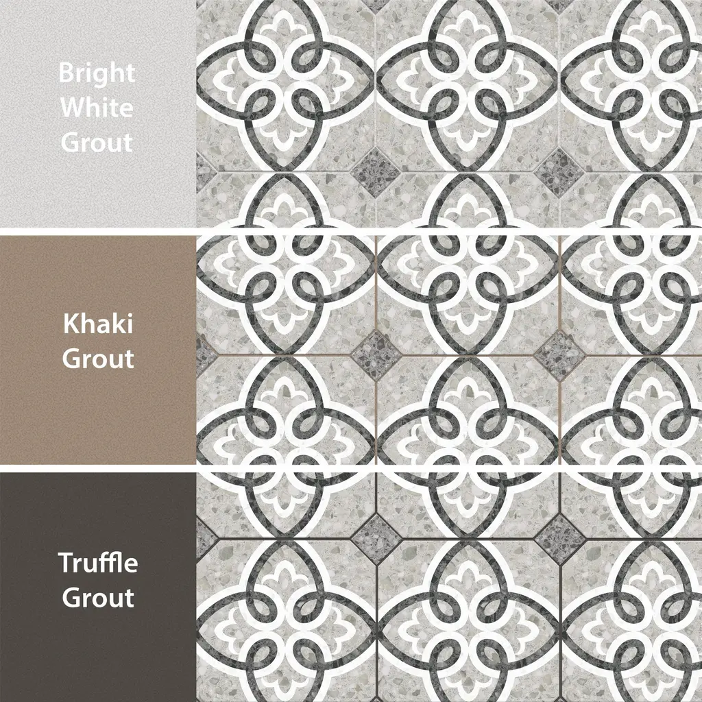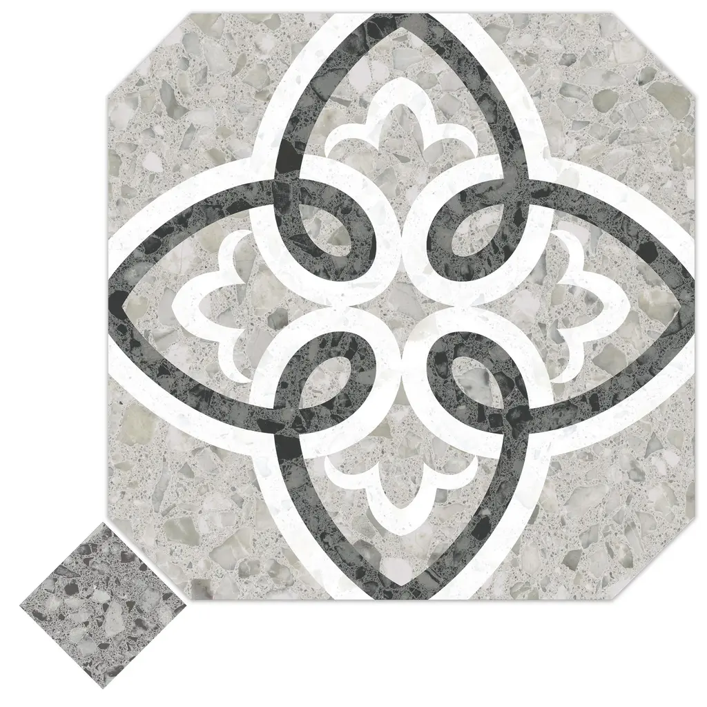 Replicating a terrazzo look, our Riviera Octagon Garde Gris with Taco Nero Porcelain Floor and Wall Tile features a slightly textured, matte finish, providing decorative appeal that adapts to a variety of stylistic contexts. Containing 30 different print variations that are randomly distributed throughout each case, this gray specialty tile offers a one-of-a-kind look. With its impervious, frost-resistant features, this tile is an ideal selection for a variety of spaces including indoor and outdoor residential installations, kitchens, bathrooms, backsplashes, showers, hallways, pools and fireplace facades. This tile is a perfect choice on its own or with other products in the Merola Tile, Riviera Collection. To ensure optimal results, please consult with your installer and review the product specifications to confirm that this tile meets the specific needs of your project.