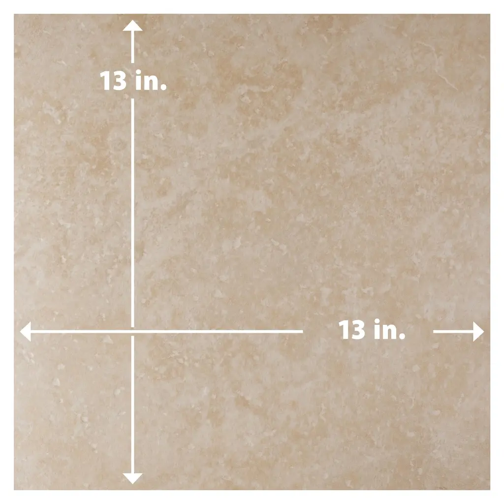 Modeling a stone look, our Roma Beige Porcelain Floor and Wall Tile features a slightly textured, matte finish, providing decorative appeal that adapts to a variety of stylistic contexts. With its impervious, frost-resistant features, this tile is an ideal selection for both indoor and outdoor commercial and residential installations, including kitchens, bathrooms, backsplashes, showers, hallways, entryways, patios and fireplace facades. This tile is a perfect choice on its own or paired with other products in the Roma Collection. Tile is the better choice for your space! 61.36 square feet, 52 pieces per pallet. Pallet weight is 234.0 lbs. Grade 1, first-quality porcelain tile for floor and wall use 13 in. width x 13 in. length x 0.25 in. thick Glazed, slightly textured finish with a low sheen and slight variation in tone PEI Rating IV has high resistance to abrasion and is suitable for heavy-duty residential and commercial kitchens, hotels, exhibition and sales rooms with some dirt conditions Impervious tiles have a water absorption of less than 0.5% for indoor and outdoor use and are frost resistant This tile is ADA approved for slip resistance with a DCOF value of 0.42 or higher. Completely frost resistant for indoor or outdoor applications; use a latex-modified thinset for acceptable bond strength Please note: A sample of this product may be a partial piece cut from the full size tile in order to provide an affordable and convenient way for customers to judge the quality and finish of this item. Samples are not returnable.