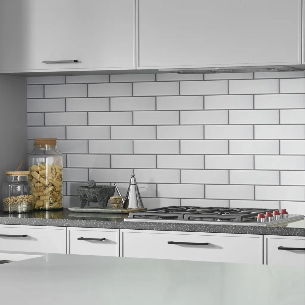 Featuring a simplistic yet sophisticated nature, our Santorini Loft Blanco Ceramic Wall Tile has the ability to elevate spaces through its classic, clean design. With a glossy multi-dimensional beveled surface, this elongated white subway tile adds sophisticated depth to any space. Given the versatility of its format, this subway tile is unique yet simplistic enough to integrate into any design, ranging from traditional style renovations to modern home projects. Intended for indoor wall use, this tile is an ideal choice for backsplashes, bathrooms, showers and kitchens. This tile is a perfect choice on its own or paired with other products in the Santorini Collection. Tile is the better choice for your space. This tile is made from natural ingredients, making it a healthy choice as it is free from allergens, VOCs, formaldehyde and PVC. 11.56 square feet, 34 pieces per case. Case weight is 32.64 lbs. Grade 1, first-quality ceramic tile for wall use 4 in. width x 11.88 in. length x 0.32 in. thick Glazed, smooth finish with a high sheen and uniform appearance in tone PEI Rating 0 is suitable for wall use only Non-Vitreous tiles have water absorption of more than 7% for indoor use DCOF value is not available for this product. Please reference the PEI and MOHS rating for installation. Not frost resistant Please note: A sample of this product may be a partial piece cut from the full size tile in order to provide an affordable and convenient way for customers to judge the quality and finish of this item. Samples are not returnable.