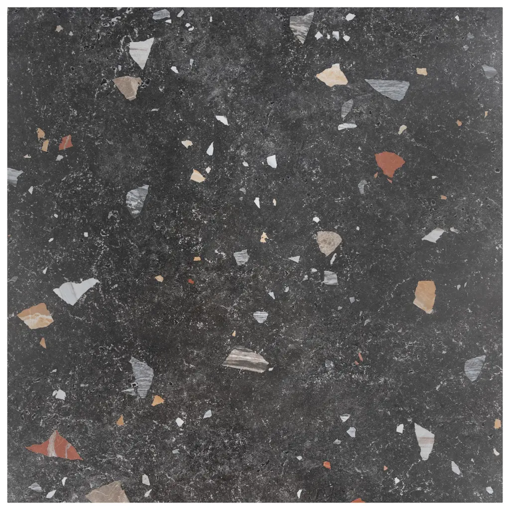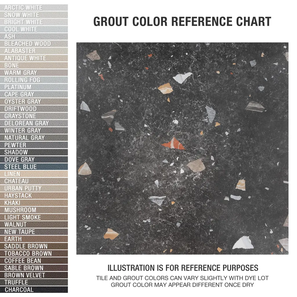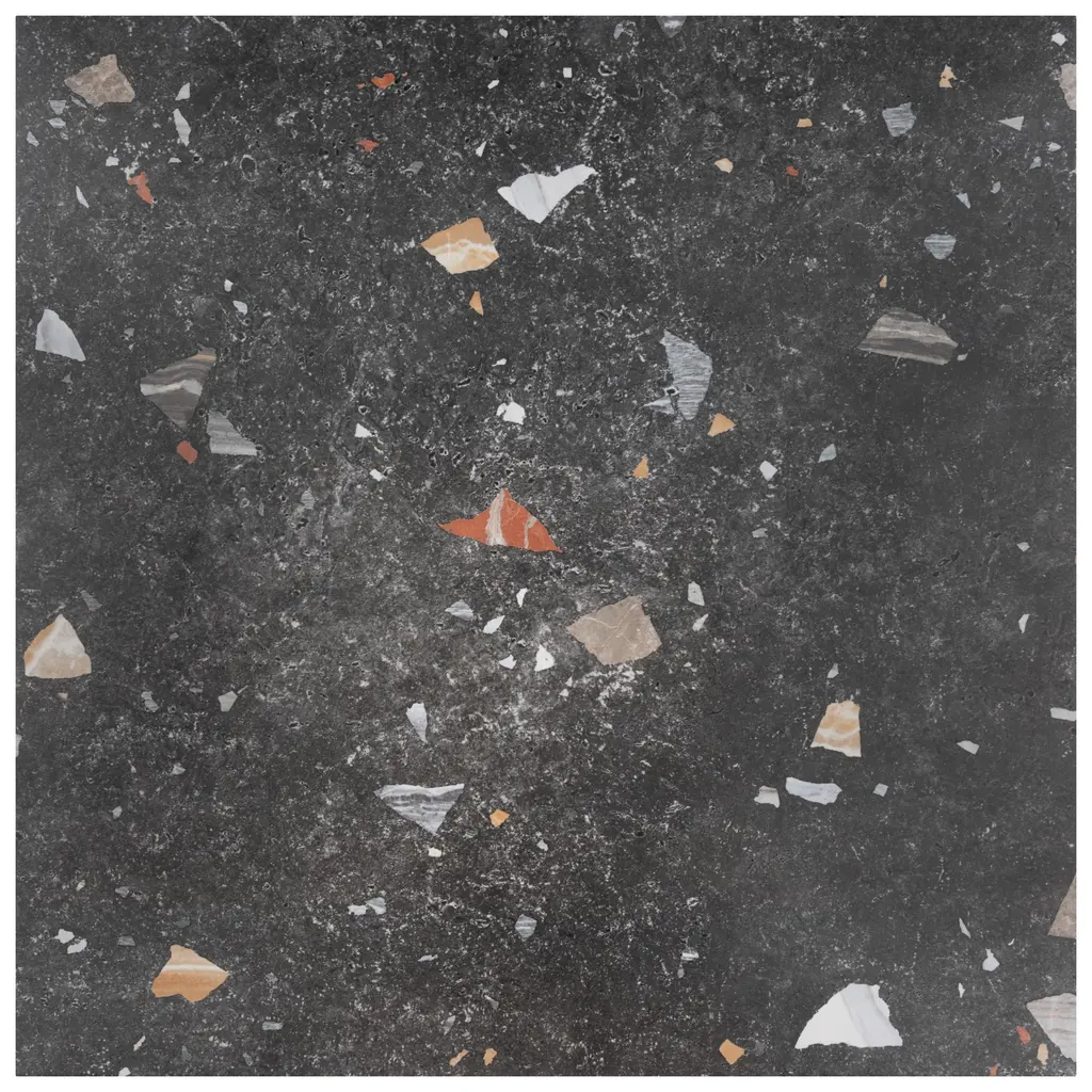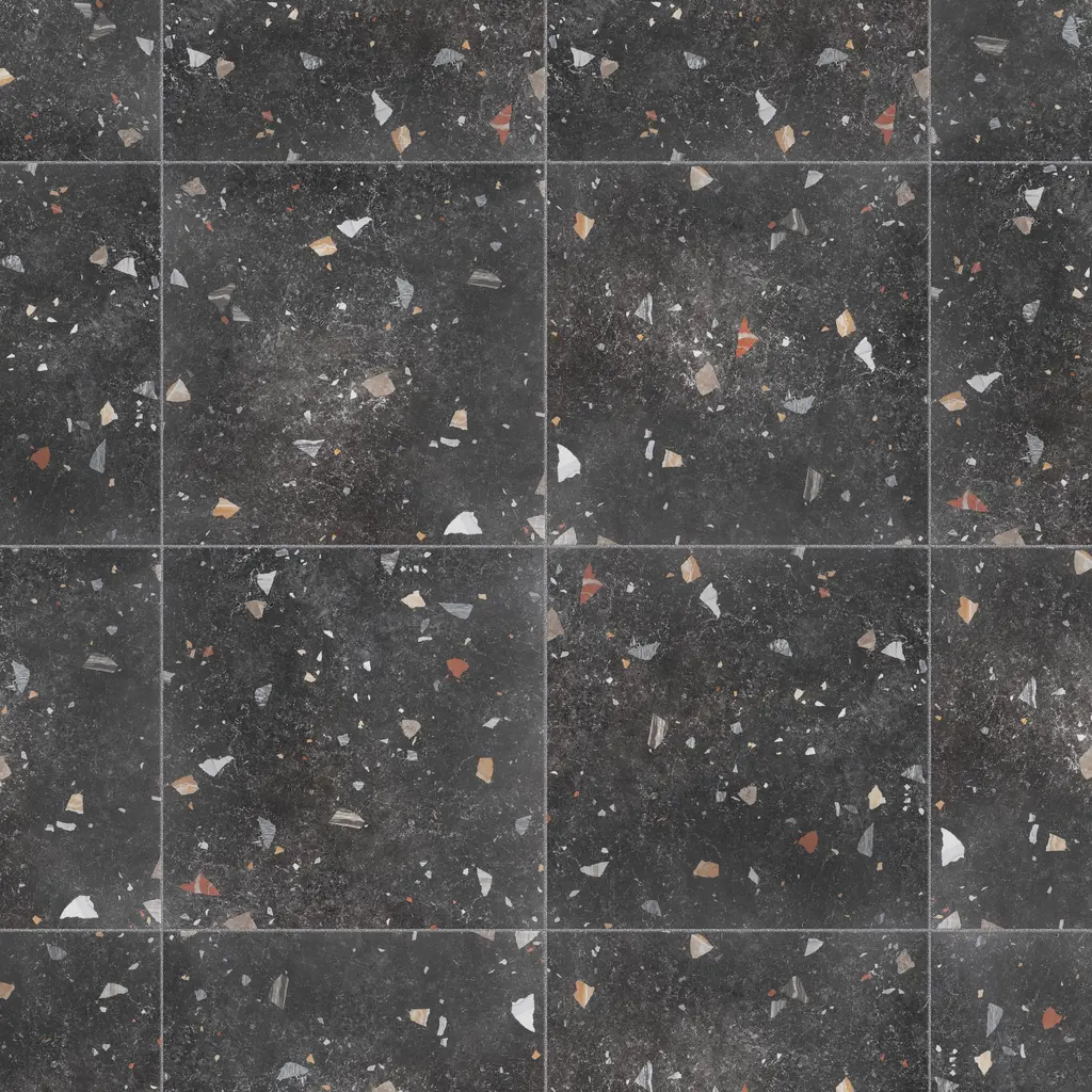 Replicating a terrazzo look, our Sonar Black Porcelain Floor and Wall Tile features a mixed textured finish, providing decorative appeal that adapts to a variety of stylistic contexts. Containing 28 different print variations that are randomly distributed throughout each case, this black square tile offers a one-of-a-kind look. With its impervious, frost-resistant features, this tile is an ideal selection for both indoor and outdoor residential installations, including kitchens, bathrooms, backsplashes, showers, hallways and fireplace facades. This tile is a perfect choice on its own or paired with other products in the Sonar Collection. Tile is the better choice for your space! 13.83 square feet, 3 pieces per case. Case weight is 62.15 lbs. Grade 1, first-quality porcelain tile for floor and wall use 25.63 in. width x 25.63 in. length x 0.38 in. thick Glazed, mixed texture with a mixed finish and moderate variation in tone PEI Rating III is suitable for medium-duty residential floors including kitchens, halls, corridors, balconies, terraces and areas used more often with normal footwear and small amounts of dirt Impervious tiles have a water absorption of less than 0.5% for indoor and outdoor use and are frost resistant This tile is ADA approved for slip resistance with a DCOF value of 0.42 or higher. Completely frost resistant for indoor or outdoor applications; use a latex-modified thinset for acceptable bond strength Please note: A sample of this product may be a partial piece cut from the full size tile in order to provide an affordable and convenient way for customers to judge the quality and finish of this item. Samples are not returnable.