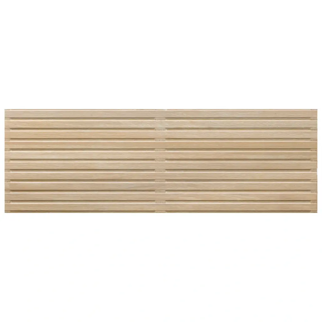 Replicating a wood look, our Spa Beige Ceramic Wall Tile features a smooth, satin finish, providing decorative appeal that adapts to a variety of stylistic contexts. Inspired by nature’s tranquility and earth’s warmth, the Spa Collection’s 3D wood-look ceramic tile captures wood’s timeless elegance with a satin finish, creating a warm, inviting, and organic ambiance that blends modern living with wood-strip charm. With its non-vitreous features, this beige rectangle tile is an ideal selection for indoor commercial and residential installations, including kitchens, bathrooms, backsplashes, showers, hallways and fireplace facades. This tile is a perfect choice on its own or paired with other products in the Spa Collection. Tile is the better choice for your space! 73.75 square feet, 25 pieces per pallet. Pallet weight is 299 lbs. Grade 1, first-quality ceramic tile for wall use 11.88 in. width x 35.5 in. length x 0.41 in. thick Glazed, smooth finish with a medium sheen and slight variation in tone PEI Rating 0 is suitable for wall use only Non-Vitreous tiles have water absorption of more than 7% for indoor use DCOF value is not available for this product. Please reference the PEI and MOHS rating for installation. Not frost resistant Please note: A sample of this product may be a partial piece cut from the full size tile in order to provide an affordable and convenient way for customers to judge the quality and finish of this item. Samples are not returnable.