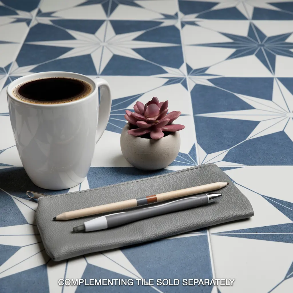 Capturing the appearance of a patterned look, our Stella Day Porcelain Floor and Wall Tile features a smooth, satin finish, providing decorative appeal that adapts to a variety of stylistic contexts. With its impervious, frost-resistant features, this blue square tile is an ideal selection for a variety of spaces including indoor and outdoor residential installations, kitchens, bathrooms, backsplashes, showers, hallways, pools and fireplace facades. This tile is a perfect choice on its own or with other products in the Merola Tile, Stella Collection. To ensure optimal results, please consult with your installer and review the product specifications to confirm that this tile meets the specific needs of your project.