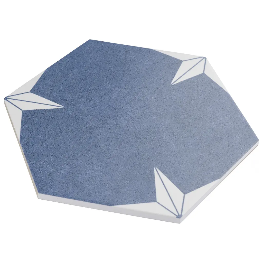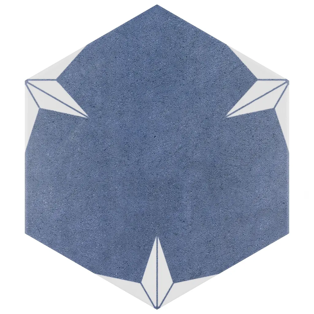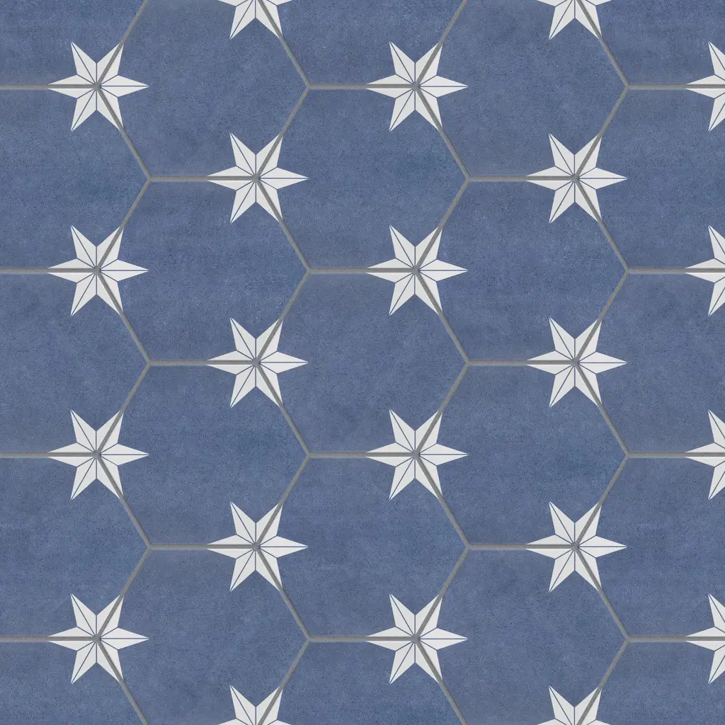 Capturing the appearance of a patterned look, our Stella Hex Day Porcelain Floor and Wall Tile features a smooth, satin finish, providing decorative appeal that adapts to a variety of stylistic contexts. With its impervious, frost-resistant features, this blue hexagon tile is an ideal selection for a variety of spaces including indoor and outdoor residential installations, kitchens, bathrooms, backsplashes, showers, hallways, pools and fireplace facades. This tile is a perfect choice on its own or with other products in the Merola Tile, Stella Collection. To ensure optimal results, please consult with your installer and review the product specifications to confirm that this tile meets the specific needs of your project.