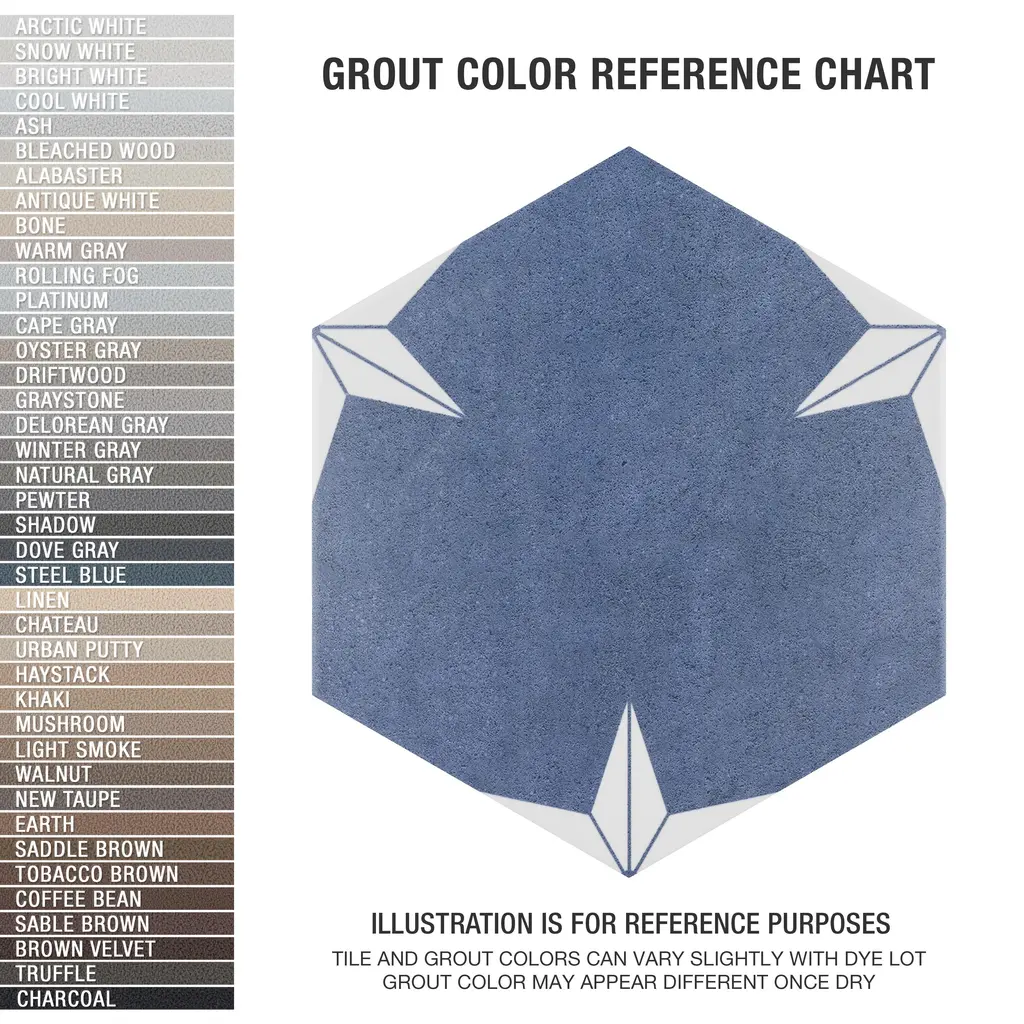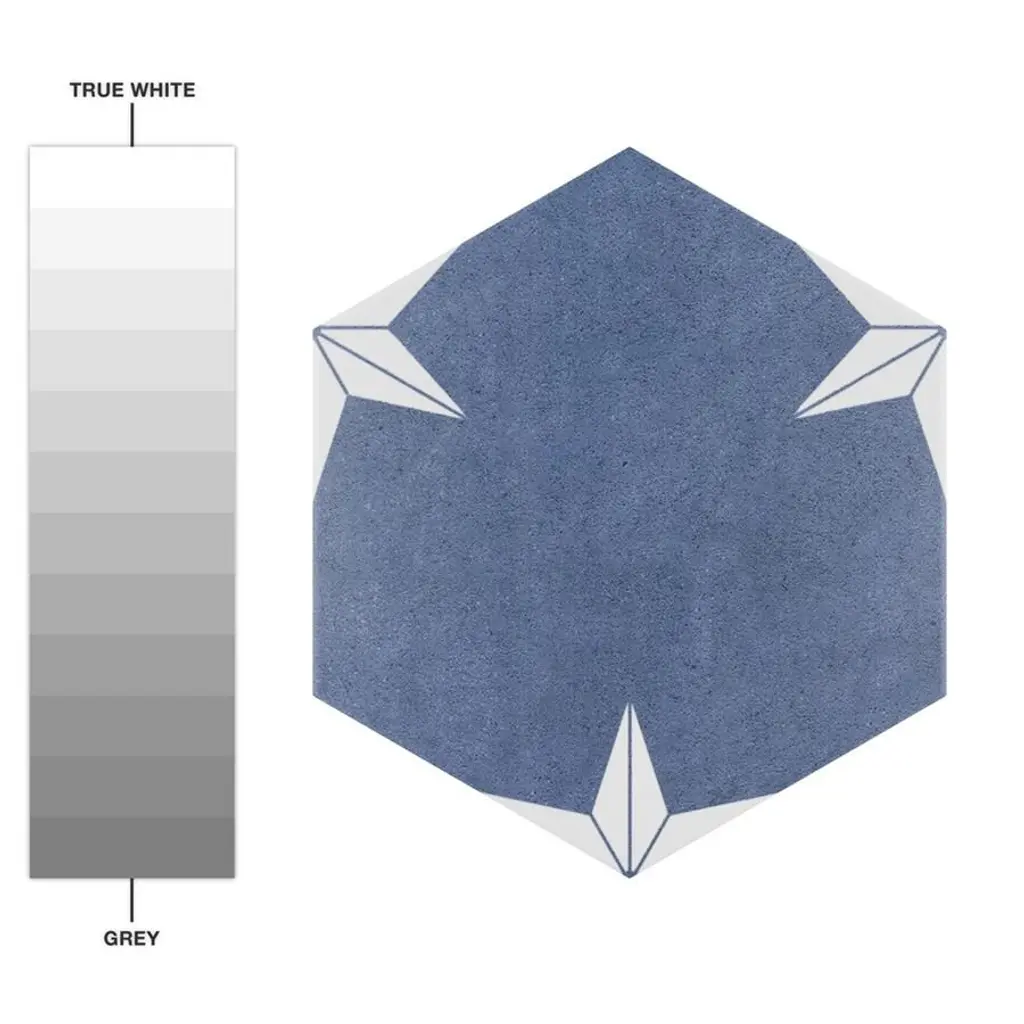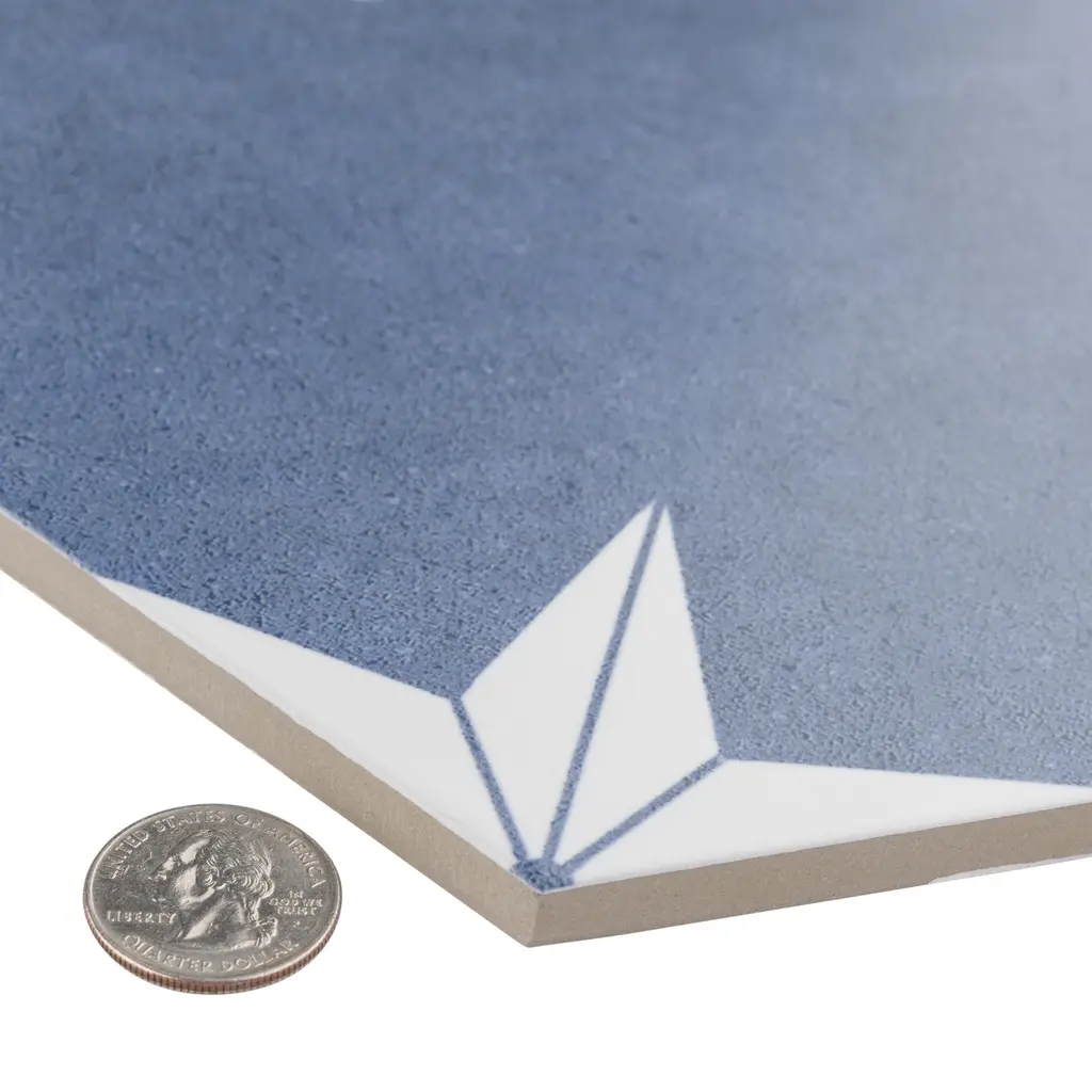 Capturing the appearance of a patterned look, our Stella Hex Day Porcelain Floor and Wall Tile features a smooth, satin finish, providing decorative appeal that adapts to a variety of stylistic contexts. With its impervious, frost-resistant features, this blue hexagon tile is an ideal selection for a variety of spaces including indoor and outdoor residential installations, kitchens, bathrooms, backsplashes, showers, hallways, pools and fireplace facades. This tile is a perfect choice on its own or with other products in the Merola Tile, Stella Collection. To ensure optimal results, please consult with your installer and review the product specifications to confirm that this tile meets the specific needs of your project.