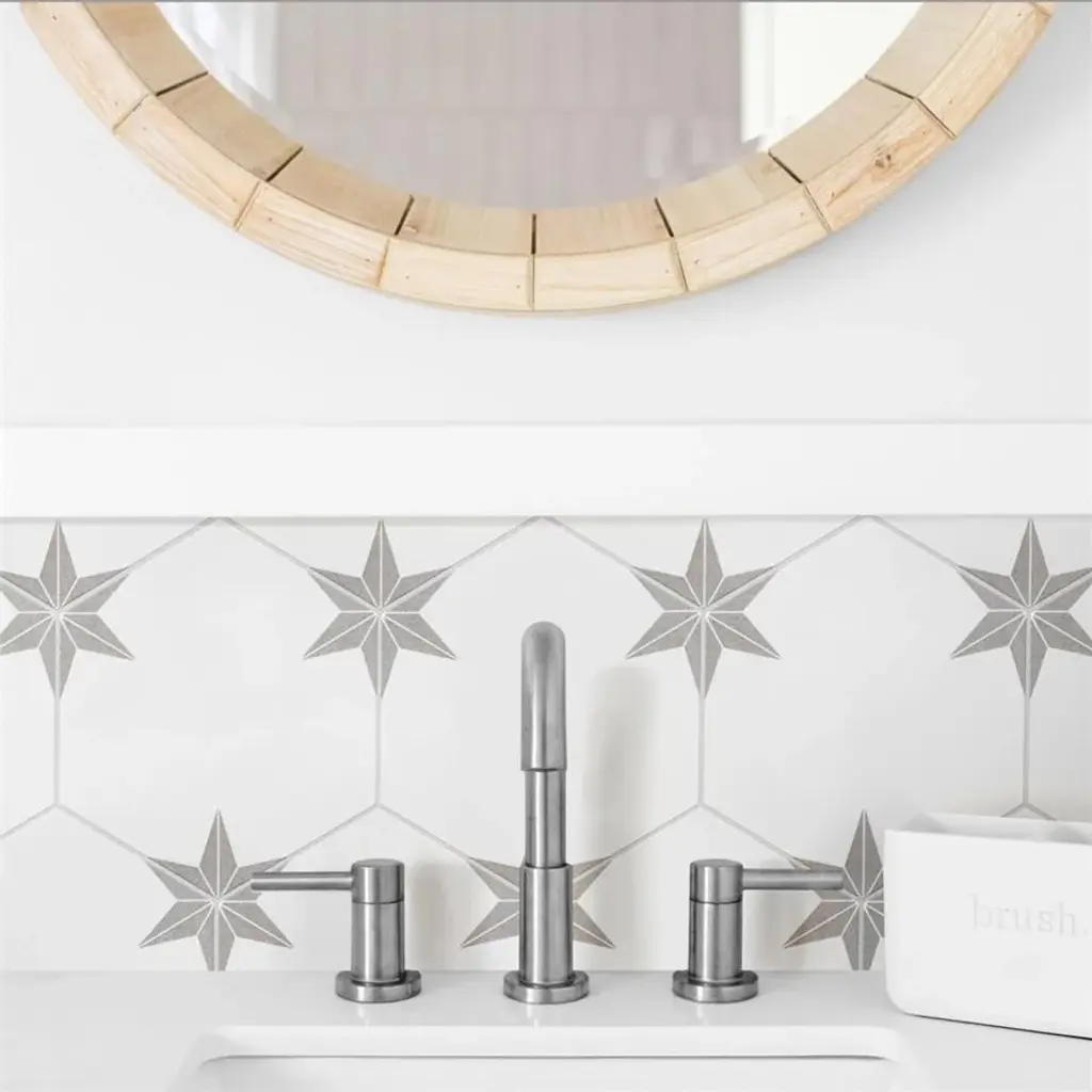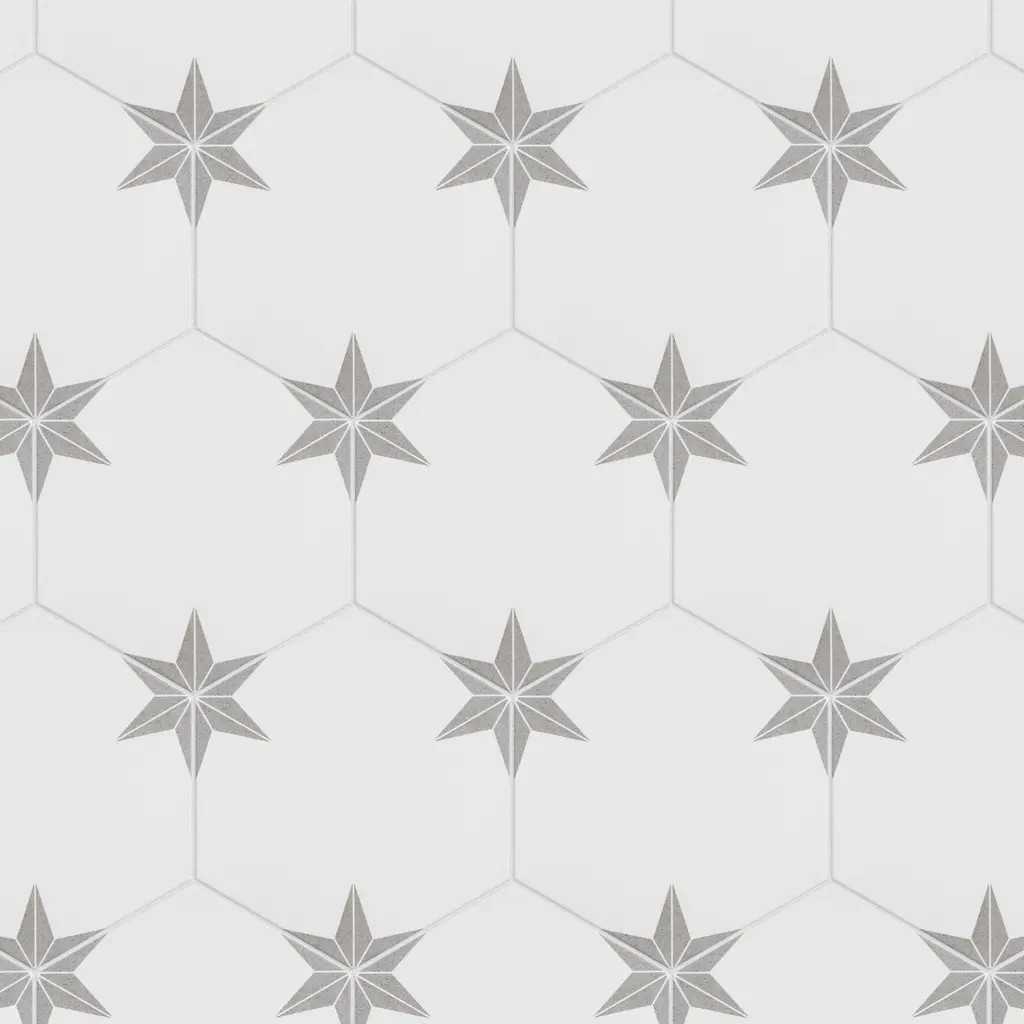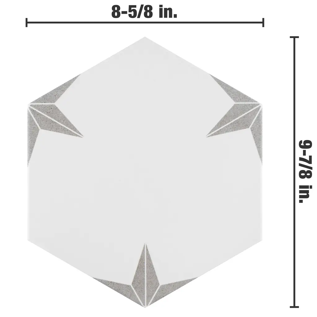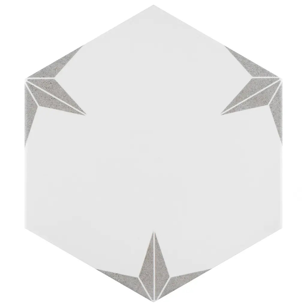 Capturing the appearance of a patterned look, our Stella Hex Silver Porcelain Floor and Wall Tile features a smooth, satin finish, providing decorative appeal that adapts to a variety of stylistic contexts. With its impervious, frost-resistant features, this white hexagon tile is an ideal selection for a variety of spaces including indoor and outdoor commercial and residential installations, kitchens, bathrooms, backsplashes, showers, hallways, entryways, patios, pools and fireplace facades. This tile is a perfect choice on its own or with other products in the Merola Tile, Stella Collection. To ensure optimal results, please consult with your installer and review the product specifications to confirm that this tile meets the specific needs of your project.