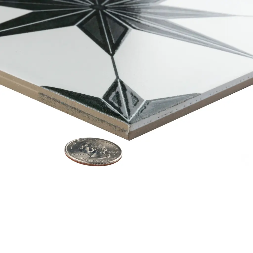 Capturing the appearance of a patterned look, our Stella Luxe Nero Porcelain Floor and Wall Tile features a mixed textured finish, providing decorative appeal that adapts to a variety of stylistic contexts. With its impervious, frost-resistant features, this white square tile is an ideal selection for both indoor and outdoor residential installations, including kitchens, bathrooms, backsplashes, showers, hallways and fireplace facades. This tile is a perfect choice on its own or paired with other products in the Stella Collection. Tile is the better choice for your space! 10.88 square feet, 16 pieces per case. Case weight is 45.81 lbs. Grade 1, first-quality porcelain tile for floor and wall use 9.75 in. width x 9.75 in. length x 0.39 in. thick Glazed, mixed texture with a mixed finish and uniform appearance in tone PEI Rating III is suitable for medium-duty residential floors including kitchens, halls, corridors, balconies, terraces and areas used more often with normal footwear and small amounts of dirt Impervious tiles have a water absorption of less than 0.5% for indoor and outdoor use and are frost resistant This tile is ADA approved for slip resistance with a DCOF value of 0.42 or higher. Completely frost resistant for indoor or outdoor applications; use a latex-modified thinset for acceptable bond strength Please note: Samples are not returnable
