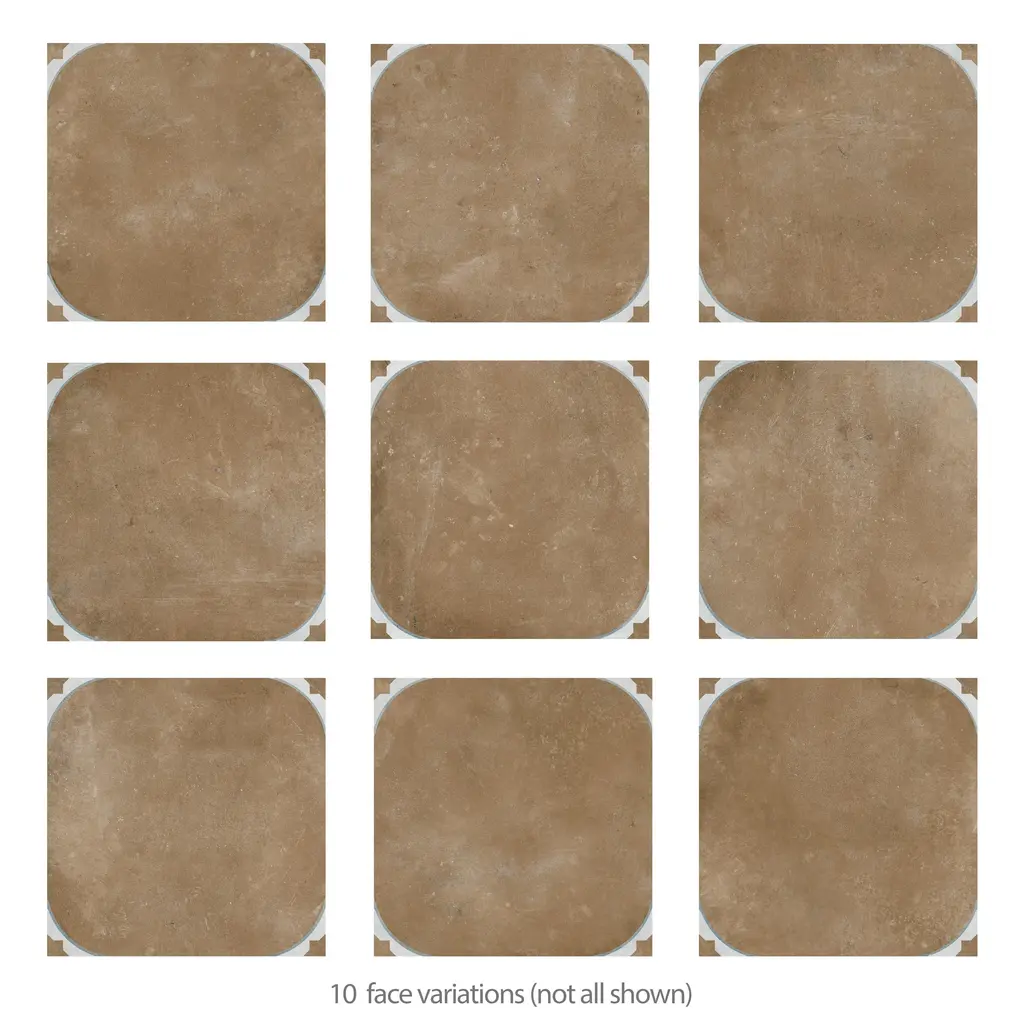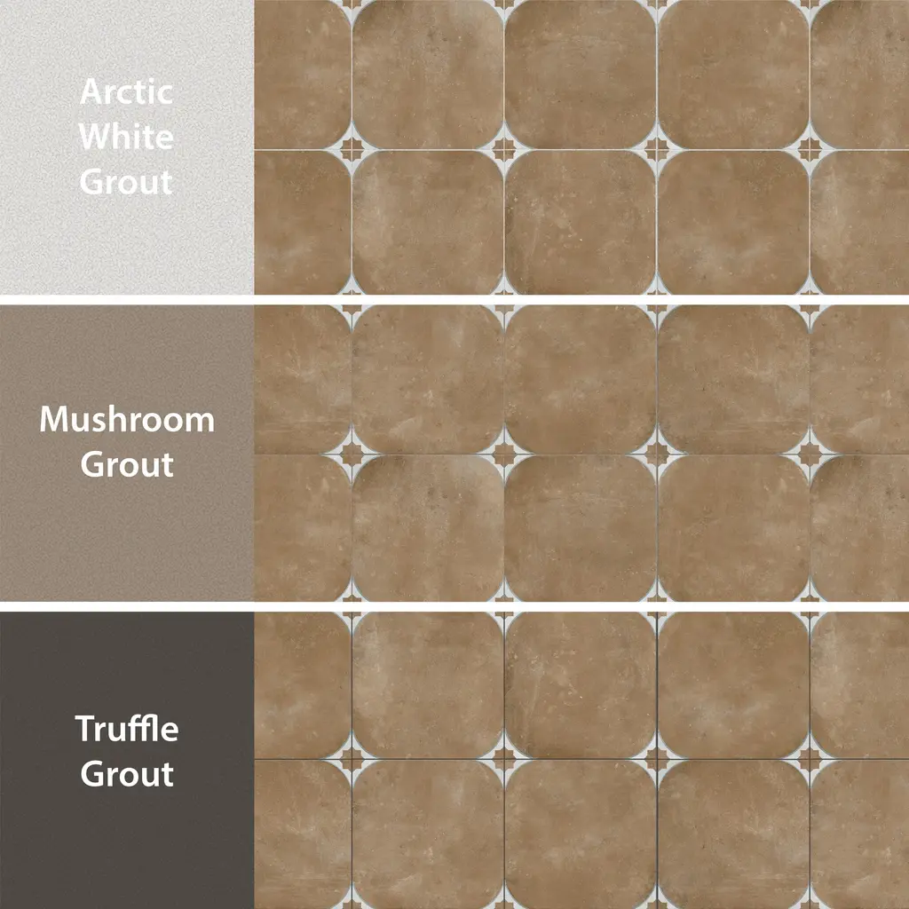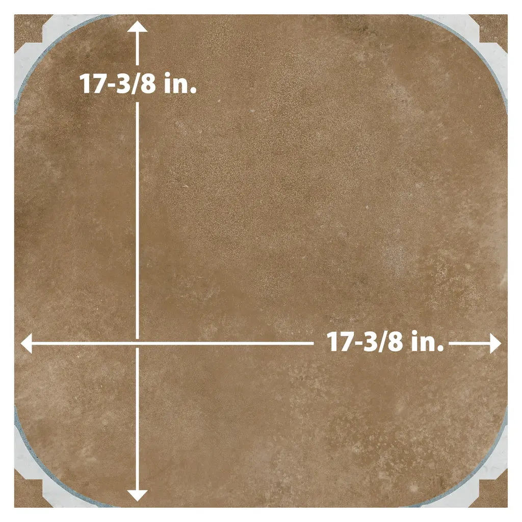 Replicating a terra cotta look, our Tetuan Terra Porcelain Floor and Wall Tile features a mixed textured finish, providing decorative appeal that adapts to a variety of stylistic contexts. Capture the essence of Moroccan art and architecture with the Tetuan Porcelain Tile Collection, featuring a matte-gloss contrast, Zellige-inspired star wall tiles and matte terracotta floor tiles, both with the latest glazing technologies for a dual-textured experience. Containing 10 different print variations that are randomly distributed throughout each case, this brown square tile offers a one-of-a-kind look. With its impervious, frost-resistant features, this tile is an ideal selection for both indoor and outdoor residential installations, including kitchens, bathrooms, backsplashes, showers, hallways and fireplace facades. This tile is a perfect choice on its own or paired with other products in the Tetuan Collection. Tile is the better choice for your space! 14.91 square feet, 7 pieces per case. Case weight is 63.27 lbs. Grade 1, first-quality porcelain tile for floor and wall use 17.38 in. width x 17.38 in. length x 0.39 in. thick Glazed, mixed texture with a mixed finish and slight variation in tone PEI Rating III is suitable for medium-duty residential floors including kitchens, halls, corridors, balconies, terraces and areas used more often with normal footwear and small amounts of dirt Impervious tiles have a water absorption of less than 0.5% for indoor and outdoor use and are frost resistant This tile is not ADA approved for slip resistance with a DCOF value less than 0.42. Completely frost resistant for indoor or outdoor applications; use a latex-modified thinset for acceptable bond strength Please note: Samples are not returnable