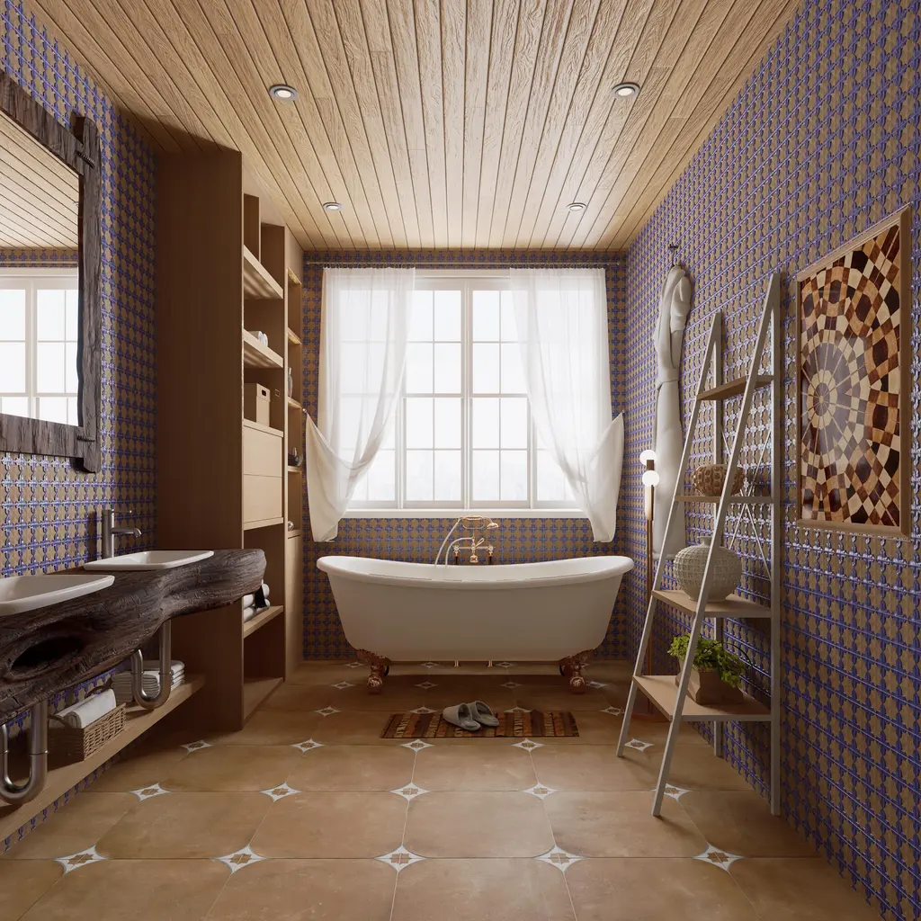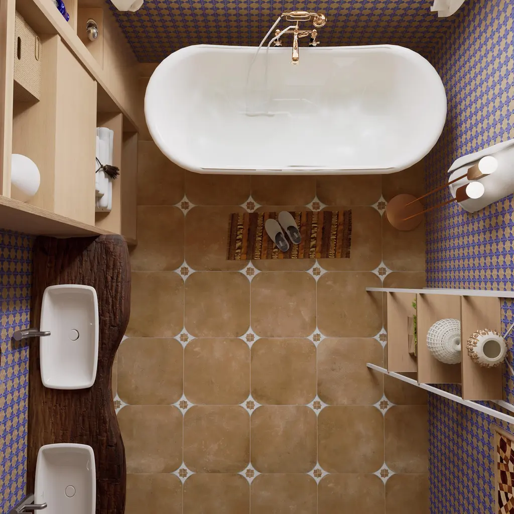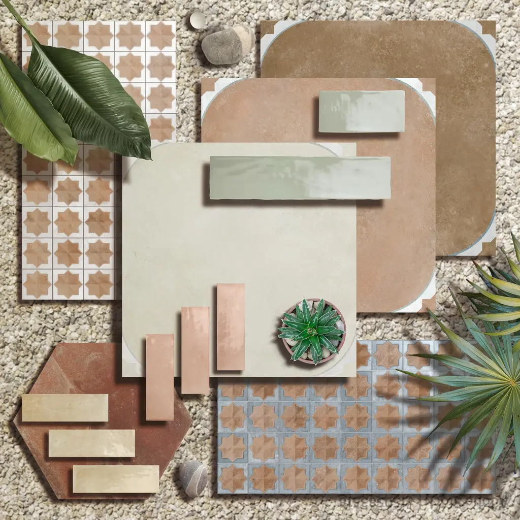 Replicating a terra cotta look, our Tetuan Terra Porcelain Floor and Wall Tile features a mixed textured finish, providing decorative appeal that adapts to a variety of stylistic contexts. Capture the essence of Moroccan art and architecture with the Tetuan Porcelain Tile Collection, featuring a matte-gloss contrast, Zellige-inspired star wall tiles and matte terracotta floor tiles, both with the latest glazing technologies for a dual-textured experience. Containing 10 different print variations that are randomly distributed throughout each case, this brown square tile offers a one-of-a-kind look. With its impervious, frost-resistant features, this tile is an ideal selection for both indoor and outdoor residential installations, including kitchens, bathrooms, backsplashes, showers, hallways and fireplace facades. This tile is a perfect choice on its own or paired with other products in the Tetuan Collection. Tile is the better choice for your space! 14.91 square feet, 7 pieces per case. Case weight is 63.27 lbs. Grade 1, first-quality porcelain tile for floor and wall use 17.38 in. width x 17.38 in. length x 0.39 in. thick Glazed, mixed texture with a mixed finish and slight variation in tone PEI Rating III is suitable for medium-duty residential floors including kitchens, halls, corridors, balconies, terraces and areas used more often with normal footwear and small amounts of dirt Impervious tiles have a water absorption of less than 0.5% for indoor and outdoor use and are frost resistant This tile is not ADA approved for slip resistance with a DCOF value less than 0.42. Completely frost resistant for indoor or outdoor applications; use a latex-modified thinset for acceptable bond strength Please note: Samples are not returnable