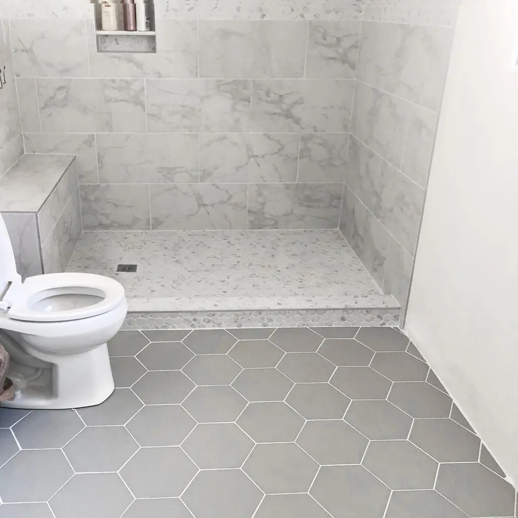 Offering a simplistic look, our Textile Basic Hex Silver Porcelain Floor and Wall Tile features a smooth, satin finish, providing decorative appeal that adapts to a variety of stylistic contexts. With its impervious, frost-resistant features, this gray hexagon tile is an ideal selection for a variety of spaces including indoor and outdoor commercial and residential installations, kitchens, bathrooms, backsplashes, showers, hallways, entryways, patios, pools and fireplace facades. This tile is a perfect choice on its own or with other products in the Merola Tile, Textile Collection. To ensure optimal results, please consult with your installer and review the product specifications to confirm that this tile meets the specific needs of your project.