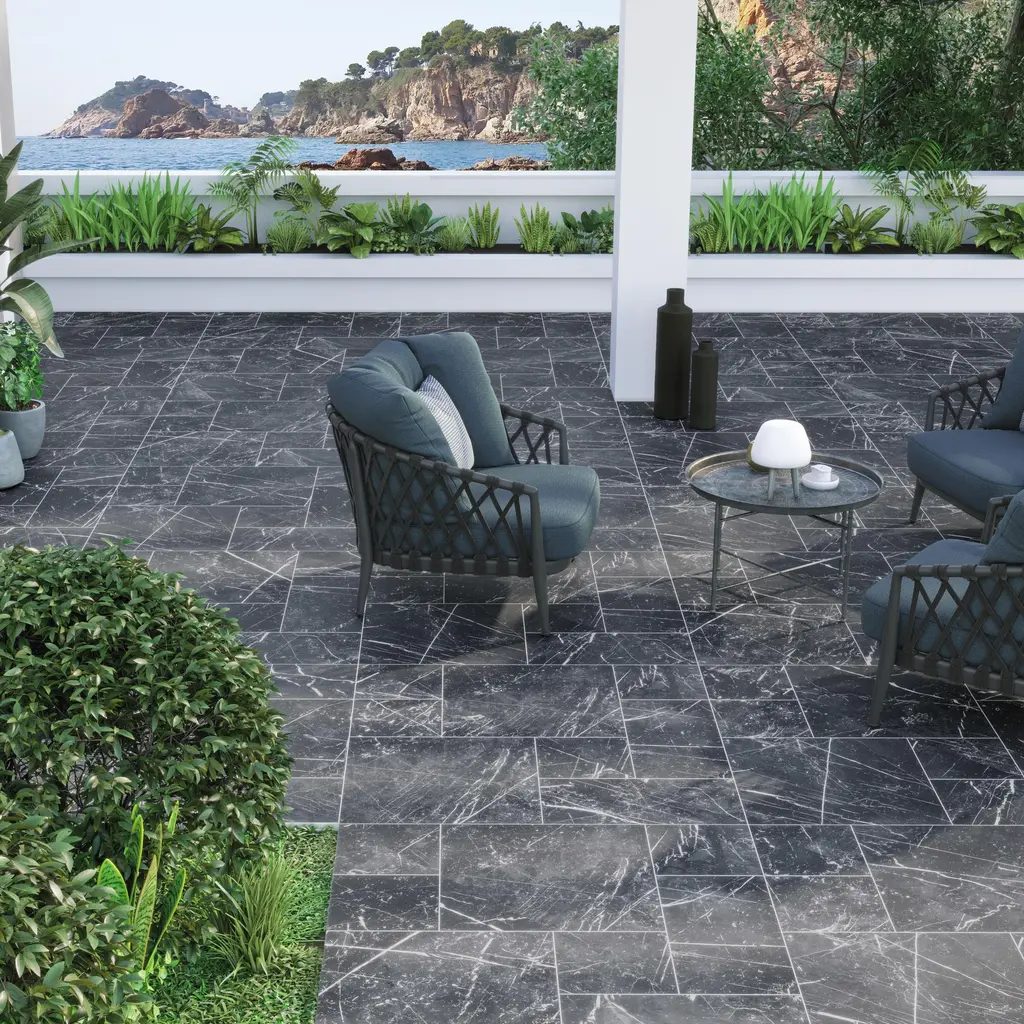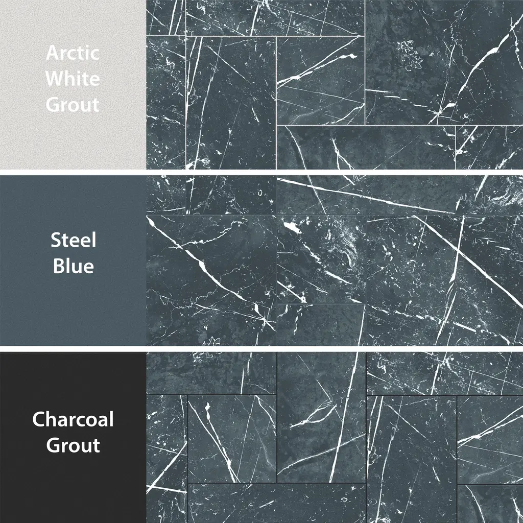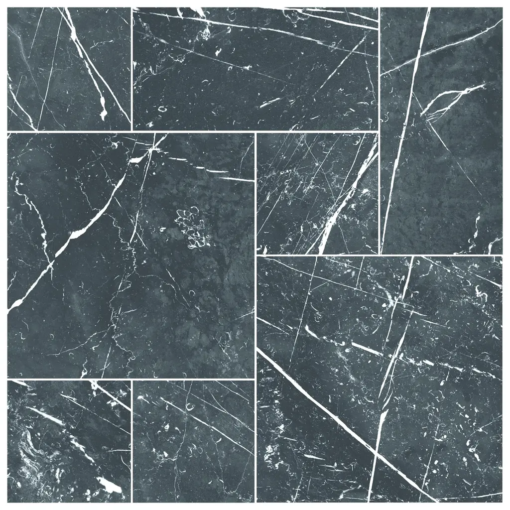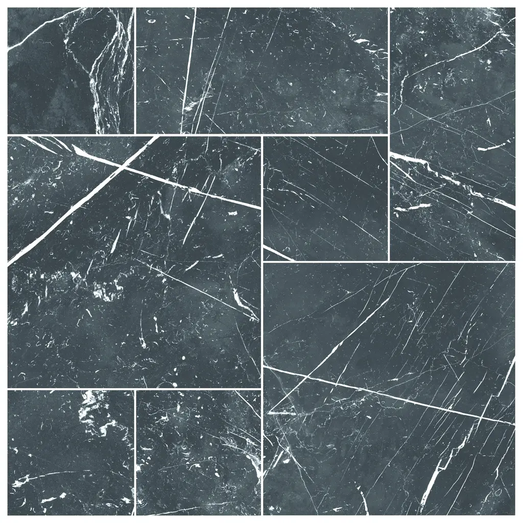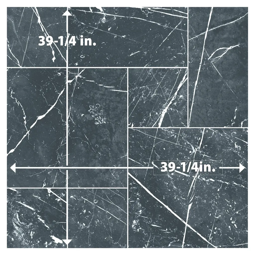 Capturing the appearance of a marble look, our Timeless Marquina Natural Modular Porcelain Floor and Wall Tile features a slightly textured, matte finish, providing decorative appeal that adapts to a variety of stylistic contexts. Inspired by the beauty of black Marquina marble, Timeless Marquina Natural Modular Kit is unique for its weathered surface and combining three sizes in one convenient package. Containing 72 different print variations that are randomly distributed throughout each case, this black specialty tile offers a one-of-a-kind look. With its impervious, frost-resistant features, this tile is an ideal selection for both indoor and outdoor residential installations, including kitchens, bathrooms, backsplashes, showers, hallways and fireplace facades. This tile is a perfect choice on its own or paired with other products in the Timeless Collection. Tile is the better choice for your space! 10.84 square feet, 8 pieces per case. Case weight is 42.99 lbs. Grade 1, first-quality porcelain tile for floor and wall use 39.38 in. width x 39.38 in. length x 0.39 in. thick Glazed, slightly textured finish with a low sheen and substantial variation in tone PEI Rating III is suitable for medium-duty residential floors including kitchens, halls, corridors, balconies, terraces and areas used more often with normal footwear and small amounts of dirt Impervious tiles have a water absorption of less than 0.5% for indoor and outdoor use and are frost resistant This tile is ADA approved for slip resistance with a DCOF value of 0.42 or higher. Completely frost resistant for indoor or outdoor applications; use a latex-modified thinset for acceptable bond strength Please note: Samples are not returnable
