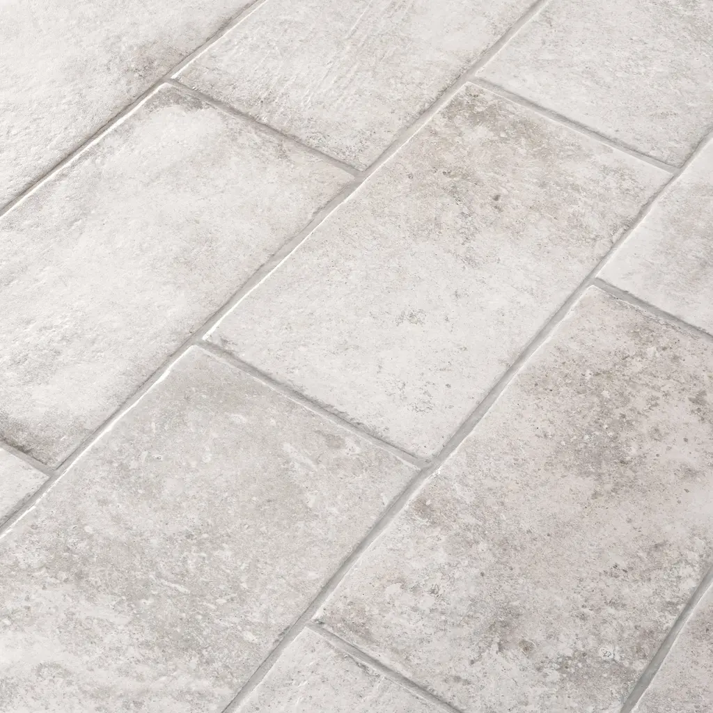 Replicating a terra cotta look, our Toscana Pienza Porcelain Floor and Wall Tile features a slightly textured, matte finish, providing decorative appeal that adapts to a variety of stylistic contexts. Containing 75 different print variations that are randomly distributed throughout each case, this white rectangle tile offers a one-of-a-kind look. With its impervious, frost-resistant features, this tile is an ideal selection for a variety of spaces including indoor and outdoor commercial and residential installations, kitchens, bathrooms, backsplashes, showers, hallways, entryways, patios, pools and fireplace facades. Discover more products from the Merola Tile Toscana Collection to complete your design. To ensure optimal results, please consult with your installer and review the product specifications to confirm that this tile meets the specific needs of your project. 11.57 square feet, 13 pieces per case. Case weight is 42.09 lbs. Grade 1, first-quality porcelain tile for floor and wall use 7.88 in. width x 15.88 in. length x 0.33 in. thick Glazed, slightly textured finish with a low sheen and moderate variation in tone PEI Rating V is suitable for both residential and high-traffic commercial use including extra heavy-duty floors and areas subject to severe pedestrian traffic over sustained periods with some dirt such as shopping centers, airport concourses, public walkways and industrial applications Impervious tiles have a water absorption of less than 0.5% for indoor and outdoor use and are frost resistant This tile is ADA approved for slip resistance with a DCOF value of 0.42 or higher. Completely frost resistant for indoor or outdoor applications; use a latex-modified thinset for acceptable bond strength Please note: A sample of this product may be a partial piece cut from the full size tile in order to provide an affordable and convenient way for customers to judge the quality and finish of this item. Samples are not returnable.
