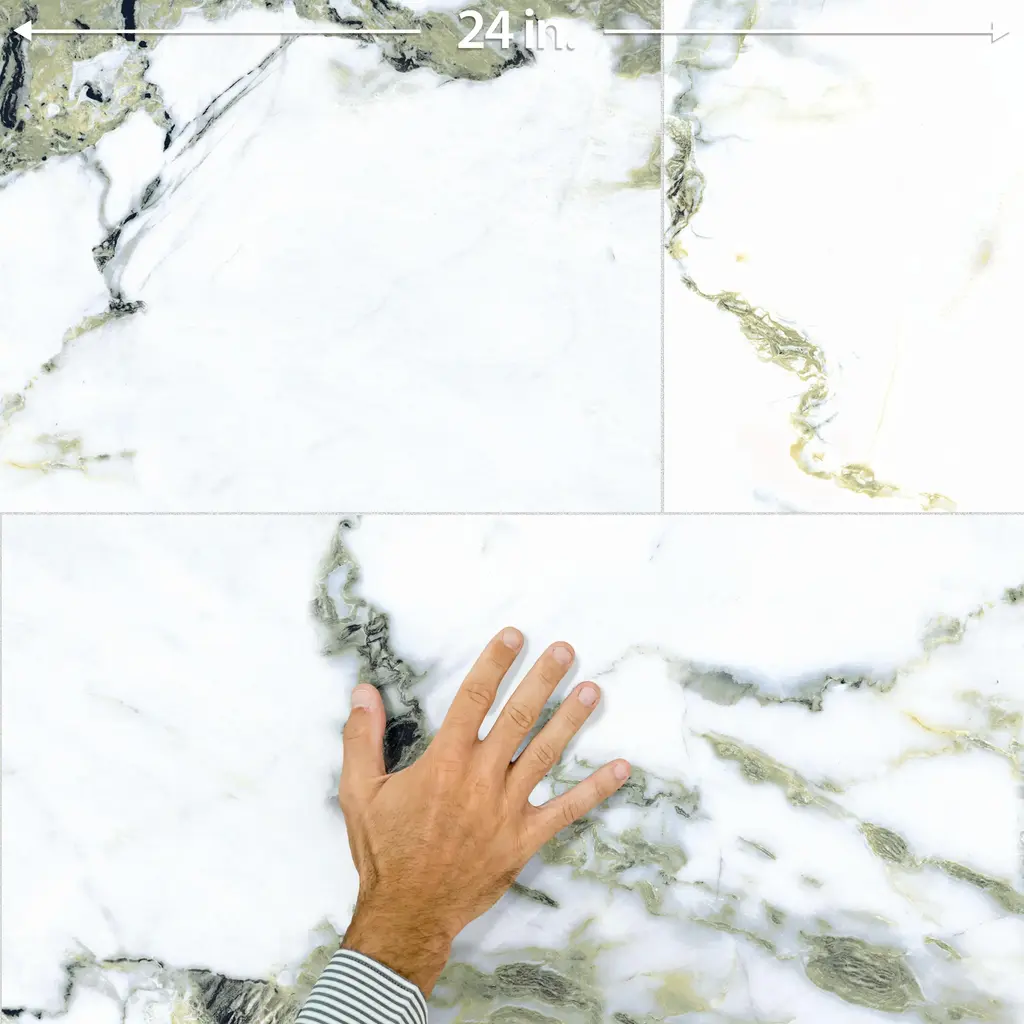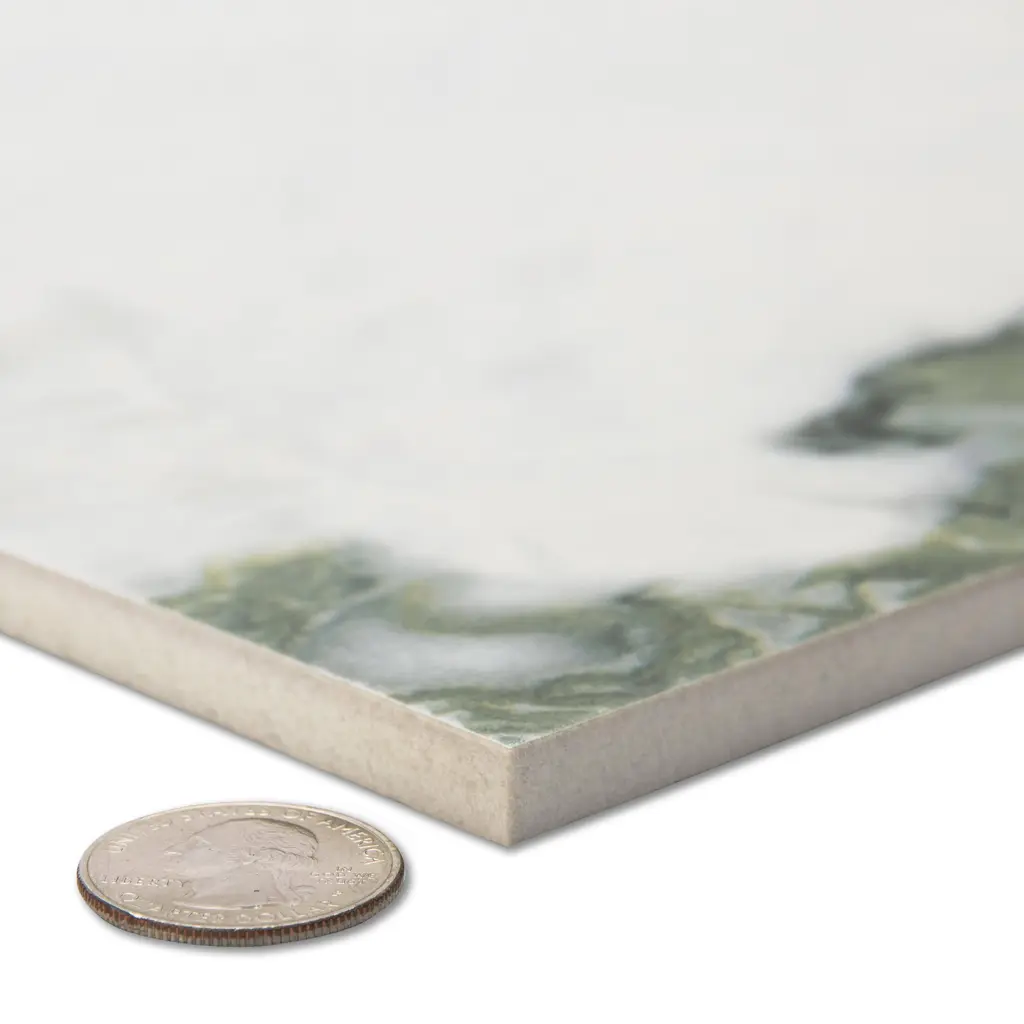Capturing the appearance of a marble look, our Touche Jade Porcelain Floor and Wall Tile features a slightly textured, satin finish, providing decorative appeal that adapts to a variety of stylistic contexts. Inspired by high-end luxury marble, the Touche Collection captures porcelain's durability and realistic undulation, offering a bold, dramatic aesthetic with rectified edges, creating a timeless, sophisticated ambiance for serene, opulent experiences in any setting. Containing 64 different print variations that are randomly distributed throughout each case, this green rectangle tile offers a one-of-a-kind look. With its impervious, frost-resistant features, this tile is an ideal selection for a variety of spaces including indoor and outdoor commercial and residential installations, kitchens, bathrooms, backsplashes, showers, hallways, entryways, patios and fireplace facades. This tile is a perfect choice on its own or with other products in the Merola Tile, Touche Collection. To ensure optimal results, please consult with your installer and review the product specifications to confirm that this tile meets the specific needs of your project.