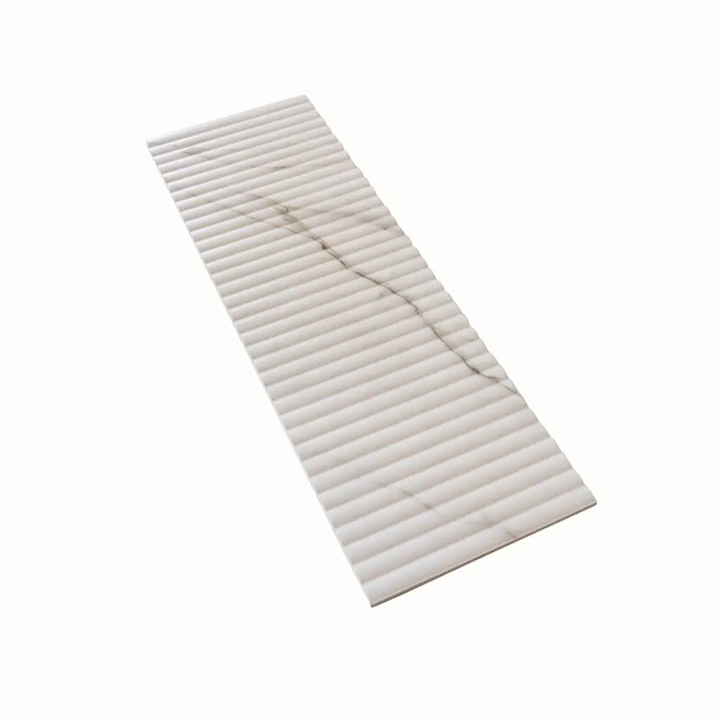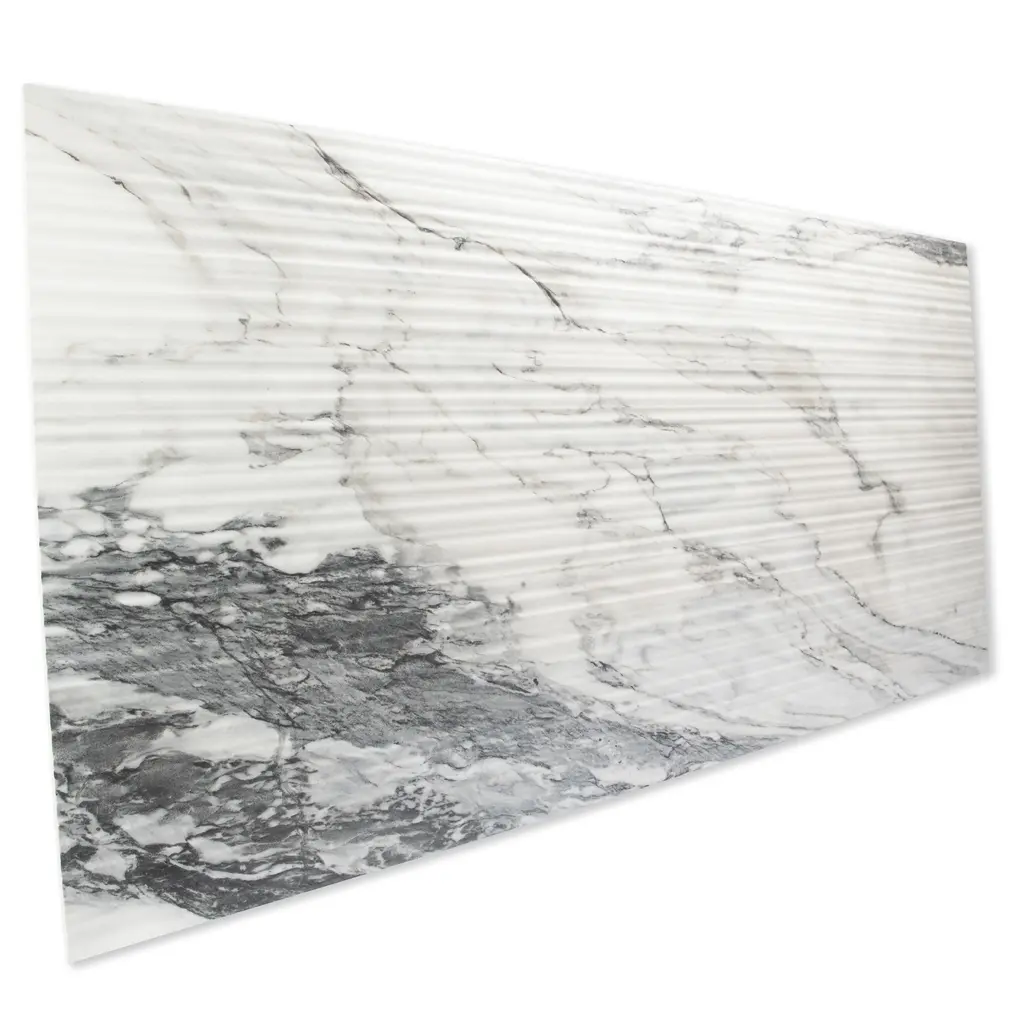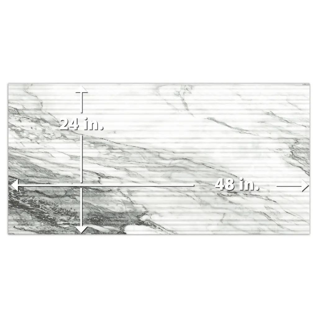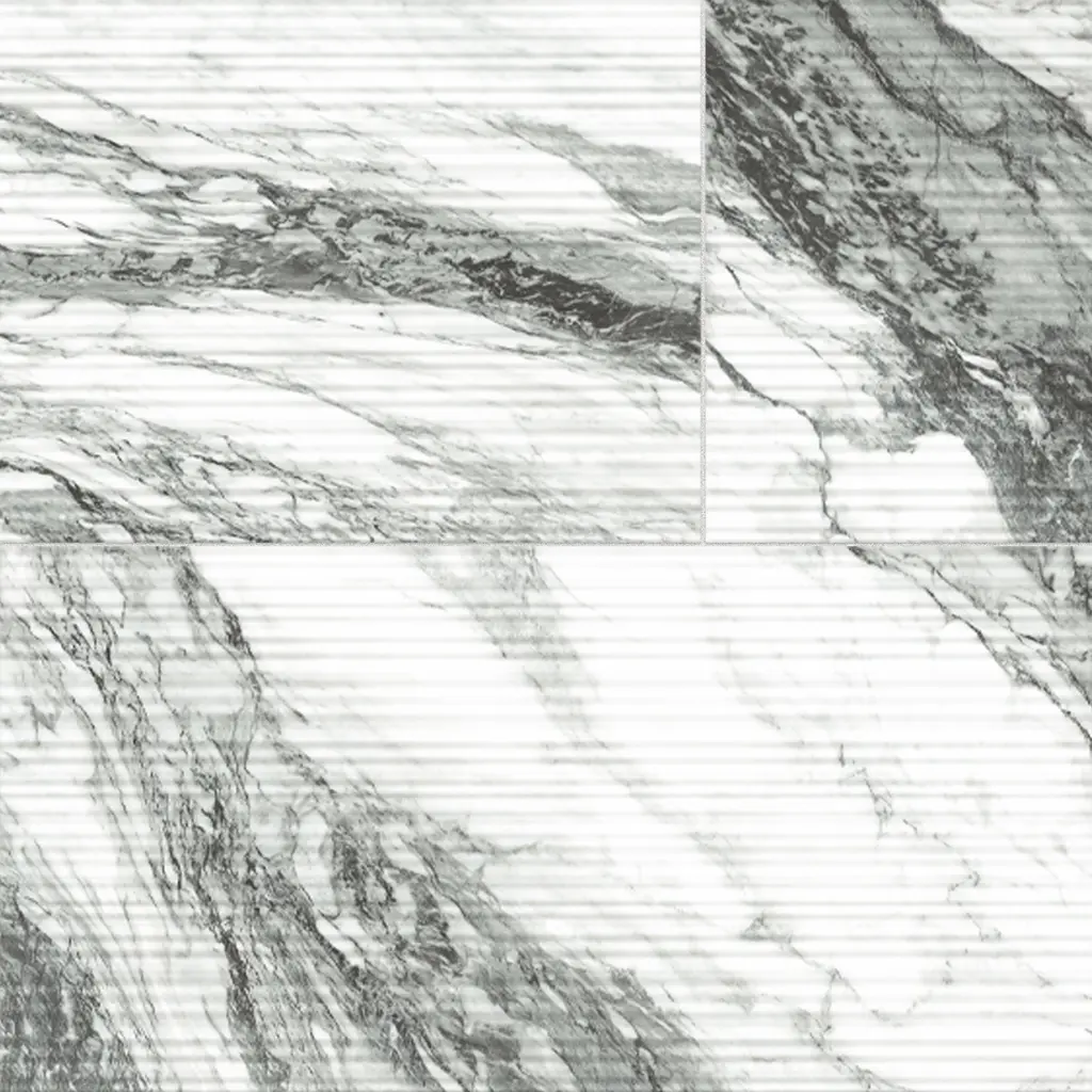 Offering a fluted look, our Touche Pleated Deco Zebre Porcelain Floor and Wall Tile features a slightly textured, satin finish, providing decorative appeal that adapts to a variety of stylistic contexts. Inspired by high-end luxury marble, the Touche Collection captures porcelain's durability and realistic undulation, offering a bold, dramatic aesthetic with rectified edges, creating a timeless, sophisticated ambiance for serene, opulent experiences in any setting. Containing 16 different print variations that are randomly distributed throughout each case, this black rectangle tile offers a one-of-a-kind look. With its impervious, frost-resistant features, this tile is an ideal selection for a variety of spaces including indoor and outdoor commercial and residential installations, kitchens, bathrooms, backsplashes, showers, hallways, entryways, patios and fireplace facades. This tile is a perfect choice on its own or with other products in the Merola Tile, Touche Collection. To ensure optimal results, please consult with your installer and review the product specifications to confirm that this tile meets the specific needs of your project.