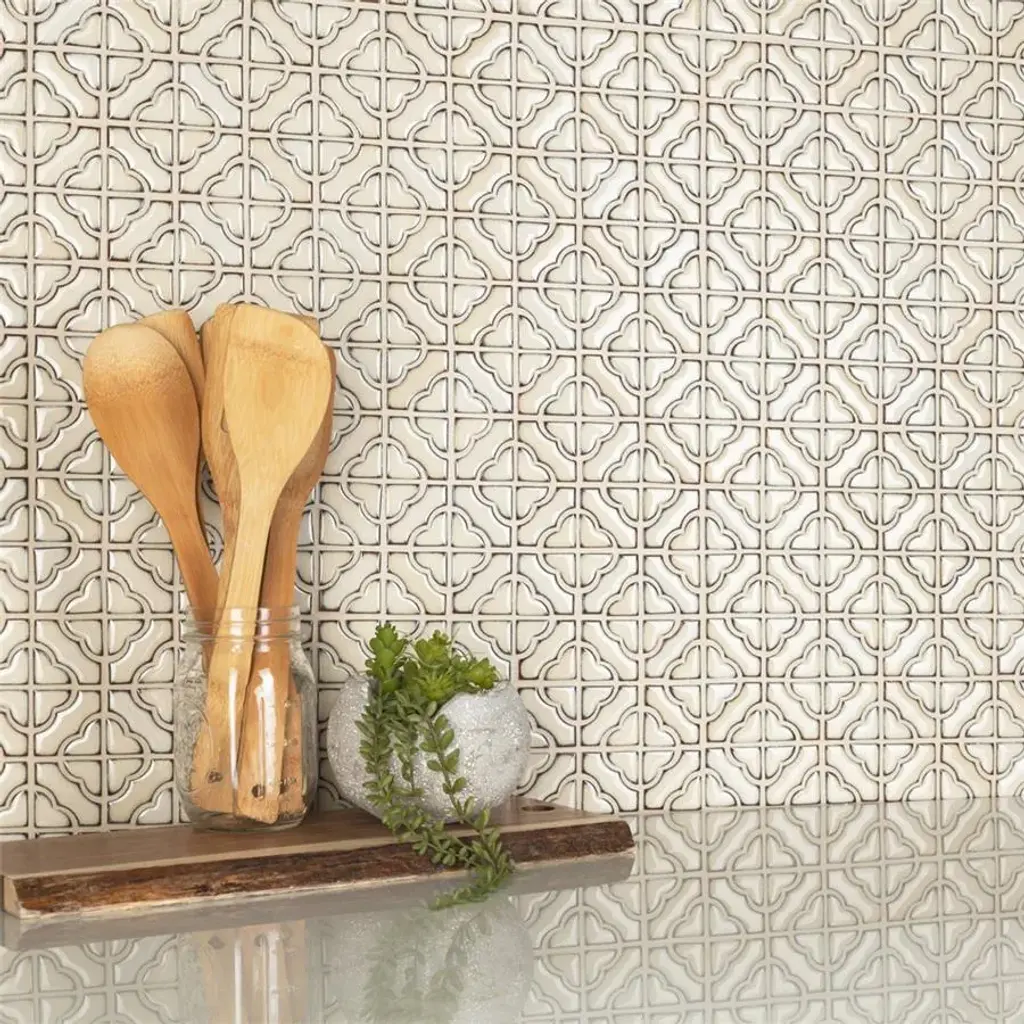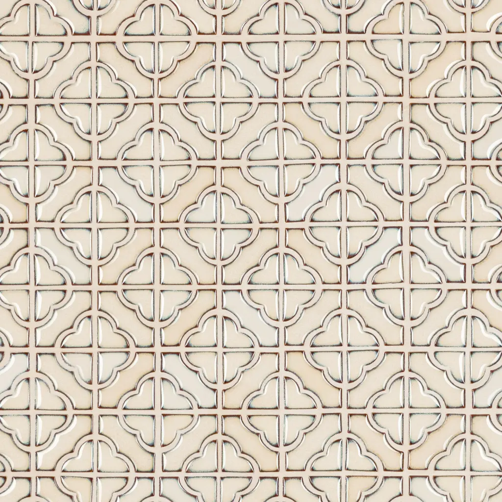 Our Tower Beige Porcelain Mosaic Tile offers a beautiful balance of traditional and unique design. Featuring a distinct, striking shape but in a color that works with many different interiors, this tile offers a broad appeal. The beige color of this tile has a subtle border to the reactive glaze that adds interest. Use this porcelain tile either indoor or outdoor on walls or light-traffic floors. 10.2 square feet, 10 pieces per case. Case weight is 19 lbs. Grade 1, first-quality porcelain tile for floor and wall use 12 in. width x 12 in. length x 0.19 in. thick mesh-mounted mosaic Glazed, smooth finish with a high sheen and slight variation in tone PEI Rating II is suitable for all interior walls and light foot traffic such as powder rooms Impervious tiles have a water absorption of less than 0.5% for indoor and outdoor use and are frost resistant This tile has a COF wet rating less than or equal to 0.50 and is considered to have a marginally low skid resistance. This tile is not ADA approved for slip resistance. Completely frost resistant for indoor or outdoor applications; use a latex-modified thinset for acceptable bond strength Please note: A sample of this product may be a partial piece cut from the full size tile in order to provide an affordable and convenient way for customers to judge the quality and finish of this item. Samples are not returnable.