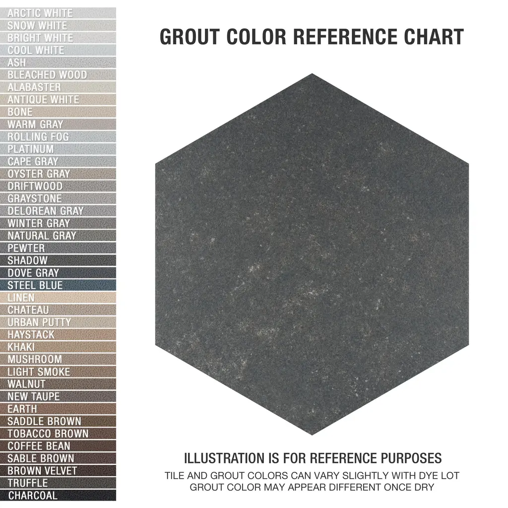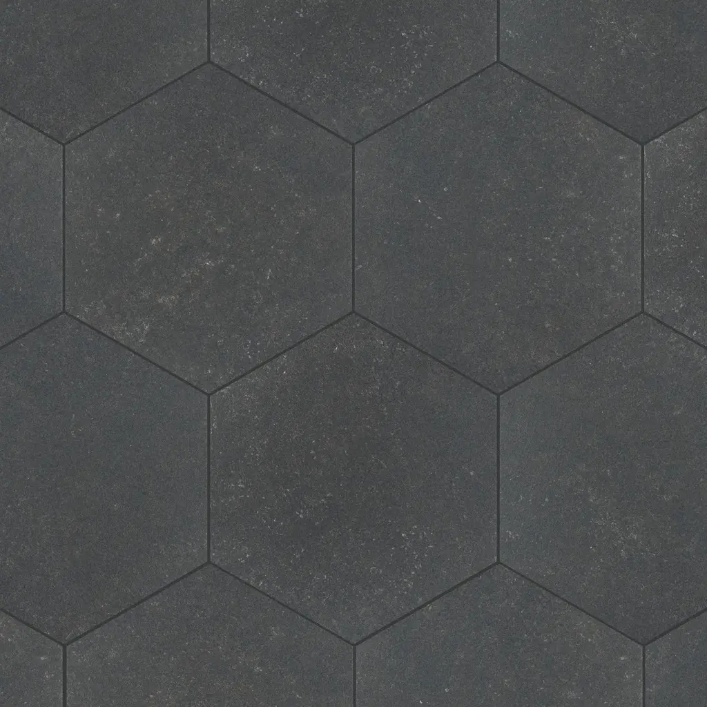 Offering a cement look, our Traffic Hex Dark Grey Porcelain Floor and Wall Tile features a slightly textured, matte finish, providing decorative appeal that adapts to a variety of stylistic contexts. Containing 24 different print variations that are randomly distributed throughout each case, this gray hexagon tile offers a one-of-a-kind look. With its impervious, frost-resistant features, this tile is an ideal selection for a variety of spaces including indoor and outdoor residential installations, kitchens, bathrooms, backsplashes, showers, hallways, pools and fireplace facades. This tile is a perfect choice on its own or with other products in the Merola Tile, Traffic Collection. To ensure optimal results, please consult with your installer and review the product specifications to confirm that this tile meets the specific needs of your project.