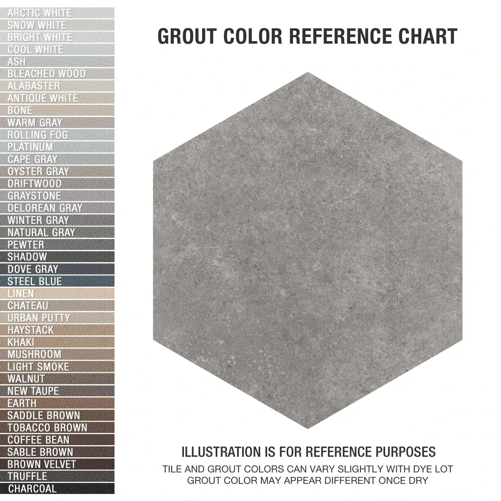 Offering a cement look, our Traffic Hex Grey Porcelain Floor and Wall Tile features a slightly textured, matte finish, providing decorative appeal that adapts to a variety of stylistic contexts. Containing 24 different print variations that are randomly distributed throughout each case, this gray hexagon tile offers a one-of-a-kind look. With its impervious, frost-resistant features, this tile is an ideal selection for a variety of spaces including indoor and outdoor commercial and residential installations, kitchens, bathrooms, backsplashes, showers, hallways, entryways, patios, pools and fireplace facades. This tile is a perfect choice on its own or with other products in the Merola Tile, Traffic Collection. To ensure optimal results, please consult with your installer and review the product specifications to confirm that this tile meets the specific needs of your project.