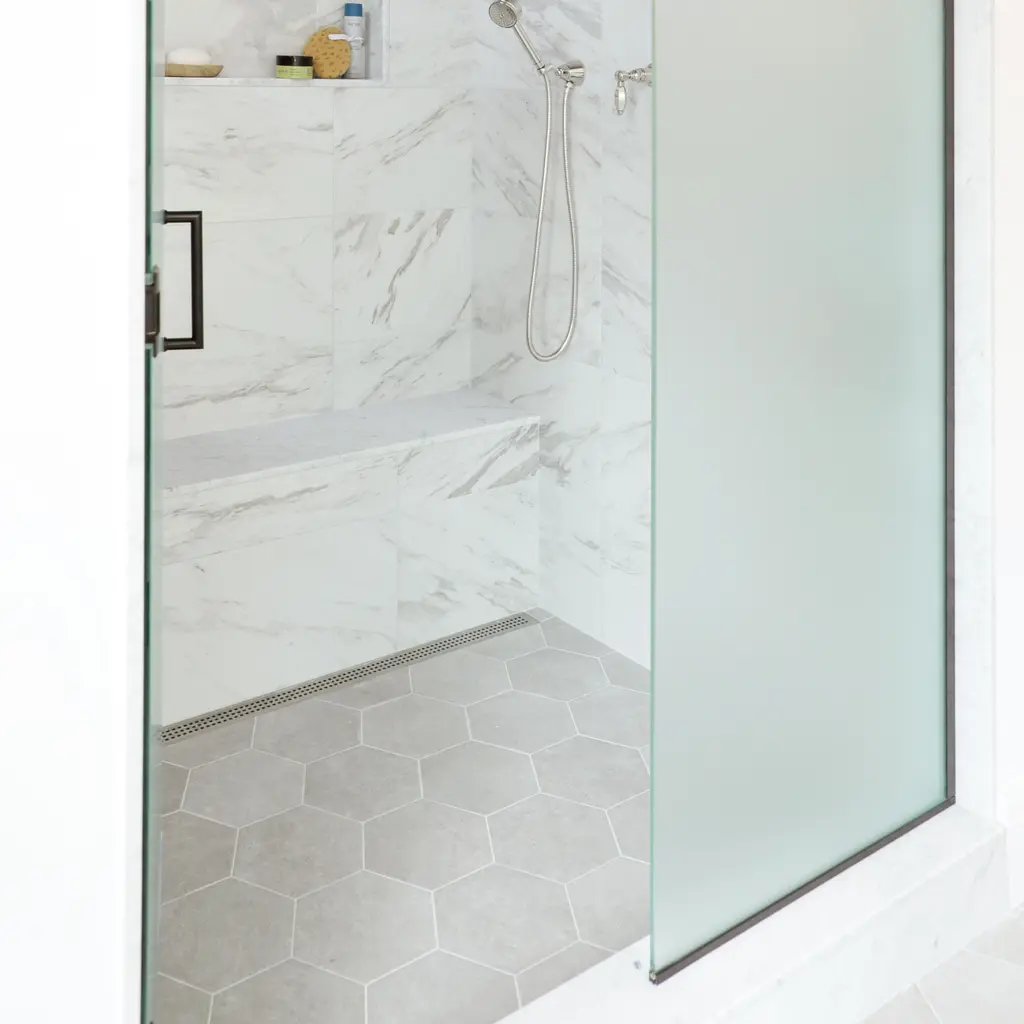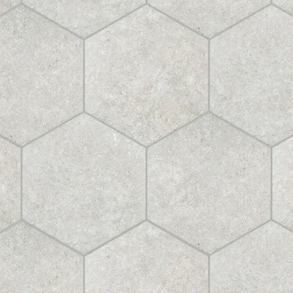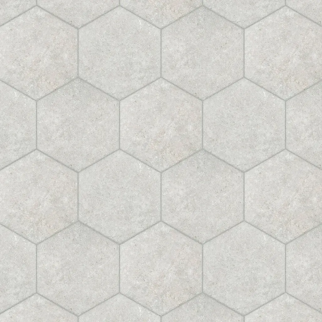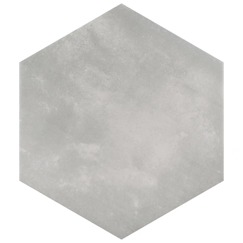 Offering a cement look, our Traffic Hex Silver Porcelain Floor and Wall Tile features a slightly textured, matte finish, providing decorative appeal that adapts to a variety of stylistic contexts. Containing 24 different print variations that are randomly distributed throughout each case, this gray hexagon tile offers a one-of-a-kind look. With its impervious, frost-resistant features, this tile is an ideal selection for a variety of spaces including indoor and outdoor commercial and residential installations, kitchens, bathrooms, backsplashes, showers, hallways, entryways, patios, pools and fireplace facades. This tile is a perfect choice on its own or with other products in the Merola Tile, Traffic Collection. To ensure optimal results, please consult with your installer and review the product specifications to confirm that this tile meets the specific needs of your project.