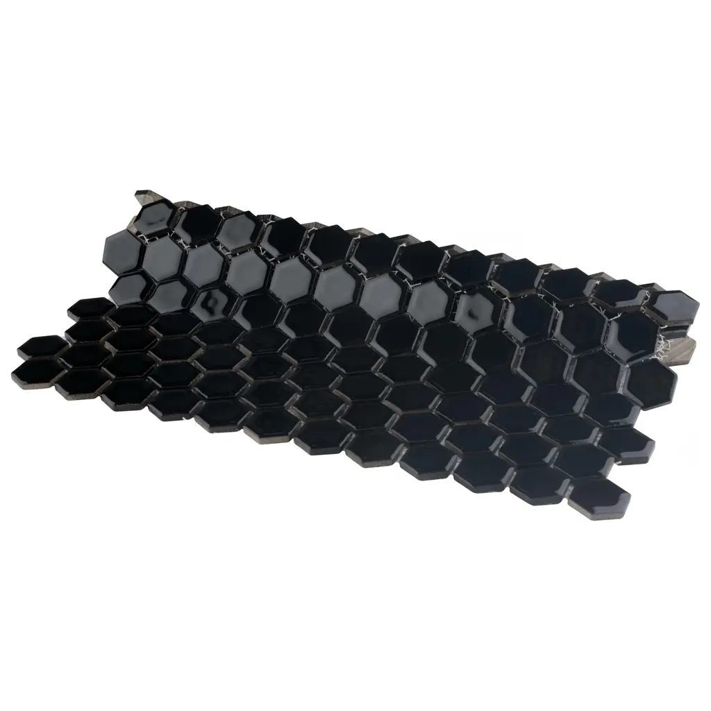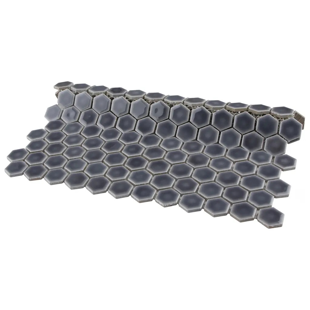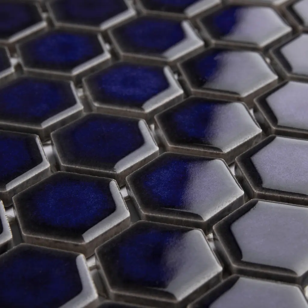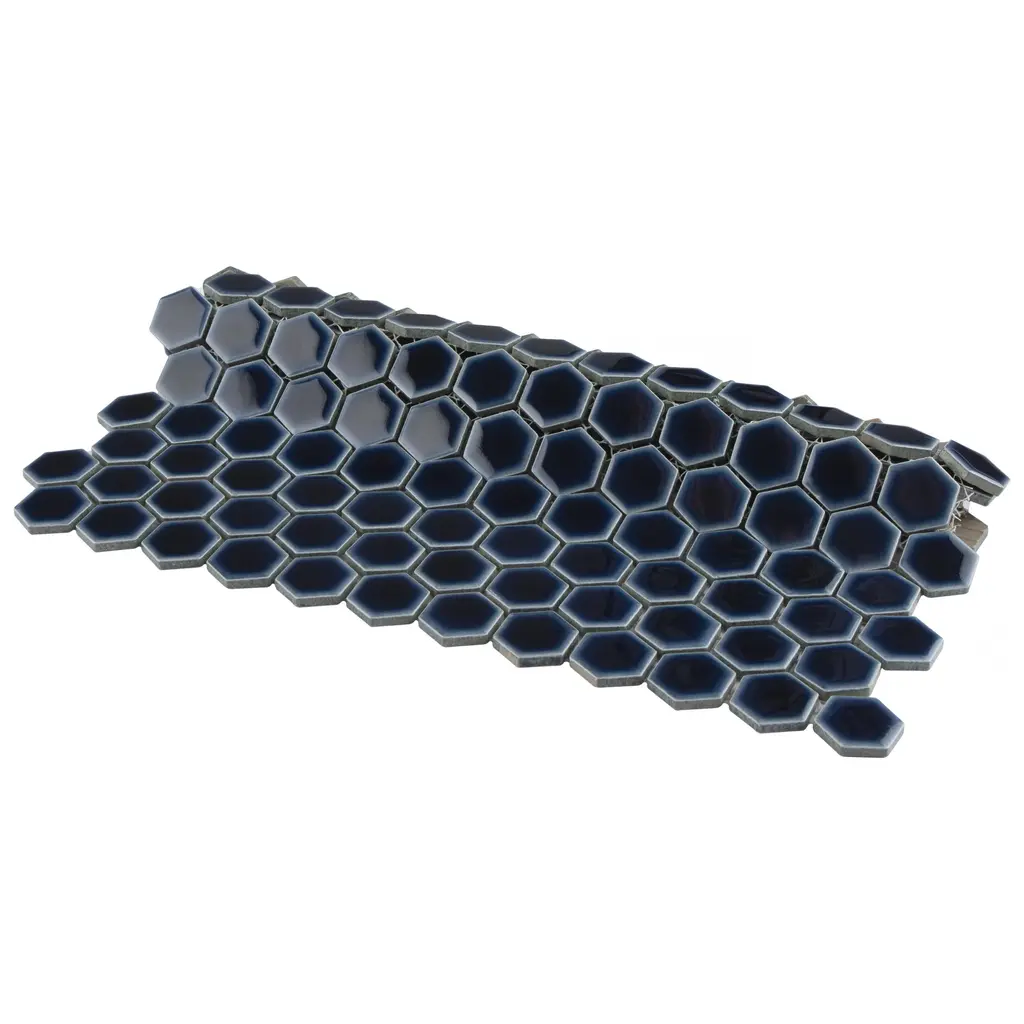 Our Tribeca 1" Hex Glossy Cobalt Porcelain Floor and Wall Mosaic Tile instantly elevates spaces through a refreshing dose of geometric design. With subtle variations in color tone that gradually fade to black around the border, each piece is truly unique. Its rich reactive glaze echoes dark to deep midnight blue hues with a high-gloss finish that is unique yet simplistic enough to integrate into any design, ranging from traditional style renovations to modern home projects. Its impervious and frost-resistant features make this an ideal tile for both indoor and outdoor residential use, including backsplashes, bathrooms, showers and kitchens. Tile is the better choice for your space. This tile is made from natural ingredients, making it a healthy choice as it is free from allergens, VOCs, formaldehyde and PVC. 8.6 square feet, 10 pieces per case. Case weight is 17.81 lbs. Grade 1, first-quality porcelain tile for floor and wall use 10.25 in. width x 11.88 in. length x 0.23 in. thick mesh-mounted mosaic Glazed, smooth finish with a high sheen and slight variation in tone PEI Rating II is suitable for all interior walls and light foot traffic such as powder rooms Impervious tiles have a water absorption of less than 0.5% for indoor and outdoor use and are frost resistant This tile has a COF wet rating less than or equal to 0.50 and is considered to have a marginally low skid resistance. This tile is not ADA approved for slip resistance. Completely frost resistant for indoor or outdoor applications; use a latex-modified thinset for acceptable bond strength Please note: A sample of this product may be a partial piece cut from the full size tile in order to provide an affordable and convenient way for customers to judge the quality and finish of this item. Samples are not returnable.