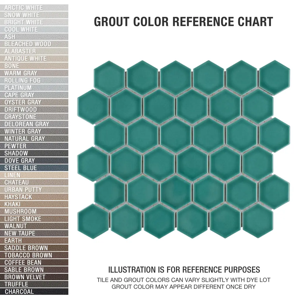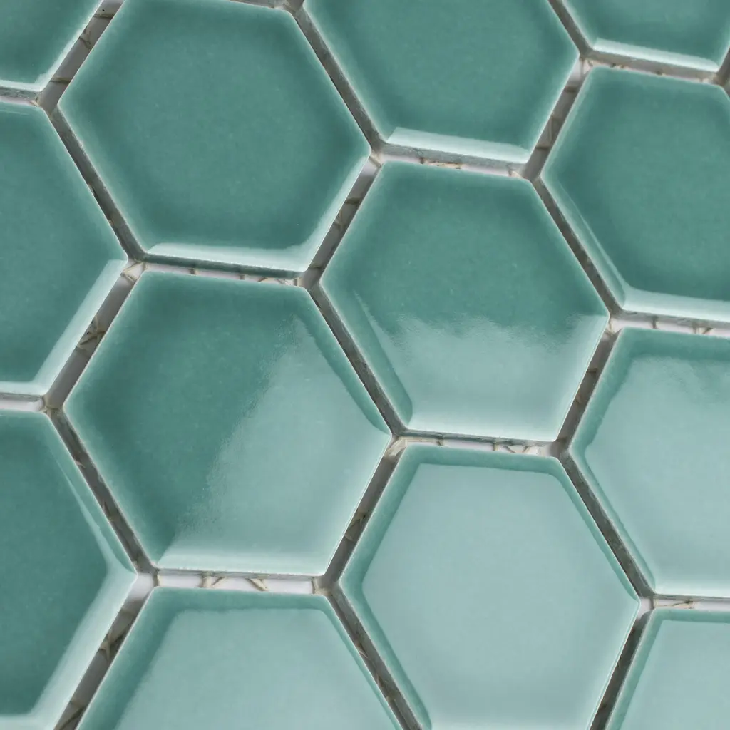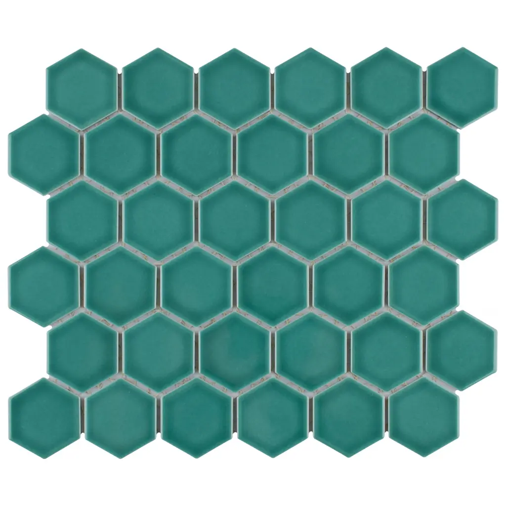 Lending a unique touch of color, our Tribeca 2 in. Hex Glossy Jade Porcelain Mosaic Floor and Wall Tile instantly elevates spaces through a refreshing dose of vivid geometric design. As an innovative twist on the classic hexagon, this mosaic is comprised of hexagonal chips in jade green tones with a smooth surface. Glossy hexagons are arranged on an interlocking mesh to create a seamless installation. This minimalistic geometric porcelain mosaic is unique yet simplistic enough to integrate into any design, ranging from traditional style renovations to modern home projects. Its impervious and frost-resistant features make this an ideal tile for both indoor and outdoor residential use, including backsplashes, bathrooms, showers and kitchens. This tile is a perfect choice on its own or paired with other products in the Tribeca Hex Mosaic Collection. Tile is the better choice for your space. This tile is made from natural ingredients, making it a healthy choice as it is free from allergens, VOCs, formaldehyde and PVC. 10.0 square feet, 10 pieces per case. Case weight is 25.33 lbs. Grade 1, first-quality porcelain tile for floor and wall use 11.13 in. width x 12.63 in. length x 0.27 in. thick mesh-mounted mosaic Glazed, smooth finish with a high sheen and uniform appearance in tone PEI Rating II is suitable for all interior walls and light foot traffic such as powder rooms Impervious tiles have a water absorption of less than 0.5% for indoor and outdoor use and are frost resistant This tile has a COF wet rating less than or equal to 0.50 and is considered to have a marginally low skid resistance. This tile is not ADA approved for slip resistance. Completely frost resistant for indoor or outdoor applications; use a latex-modified thinset for acceptable bond strength Please note: Samples are not returnable
