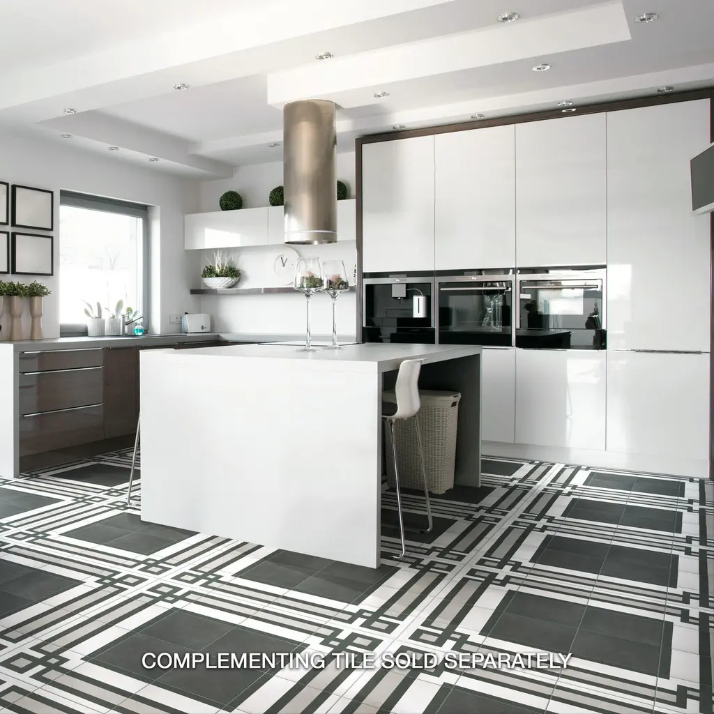Inspired by artisan cement tiles, our Twenties Black Ceramic Floor and Wall Tile captures the look of authentic encaustic tiles with a versatile ceramic body. Designed to coordinate with other products in our Twenties Collection, this solid colored field tile features a charcoal black color tone that is accented by a weathered, speckled look, replicating the beauty of Spanish design. This floor and wall tile can blend into virtually any design theme, ranging from contemporary projects to traditional installations. Its durable and frost-resistant features make this an ideal choice for indoor and outdoor installations including kitchens, bathrooms, backsplashes, showers, entryways, patios and fireplace facades. Tile is the better choice for your space. This tile is made from natural ingredients, making it a healthy choice as it is free from allergens, VOCs, formaldehyde and PVC. 10.75 square feet, 25 pieces per case. Case weight is 26.25 lbs. Grade 1, first-quality ceramic tile for floor and wall use 7.75 in. width x 7.75 in. length x 0.23 in. thick Glazed, slightly textured finish with a low sheen and slight variation in tone PEI Rating III is suitable for medium-duty residential floors including kitchens, halls, corridors, balconies, terraces and areas used more often with normal footwear and small amounts of dirt Vitreous tiles have water absorption of more than 0.5% but less than 3% for indoor use and some outdoor applications and are frost resistant This tile is ADA approved for slip resistance with a DCOF value of 0.42 or higher. Completely frost resistant for indoor or outdoor applications; use a latex-modified thinset for acceptable bond strength Please note: A sample of this product may be a partial piece cut from the full size tile in order to provide an affordable and convenient way for customers to judge the quality and finish of this item. Samples are not returnable.