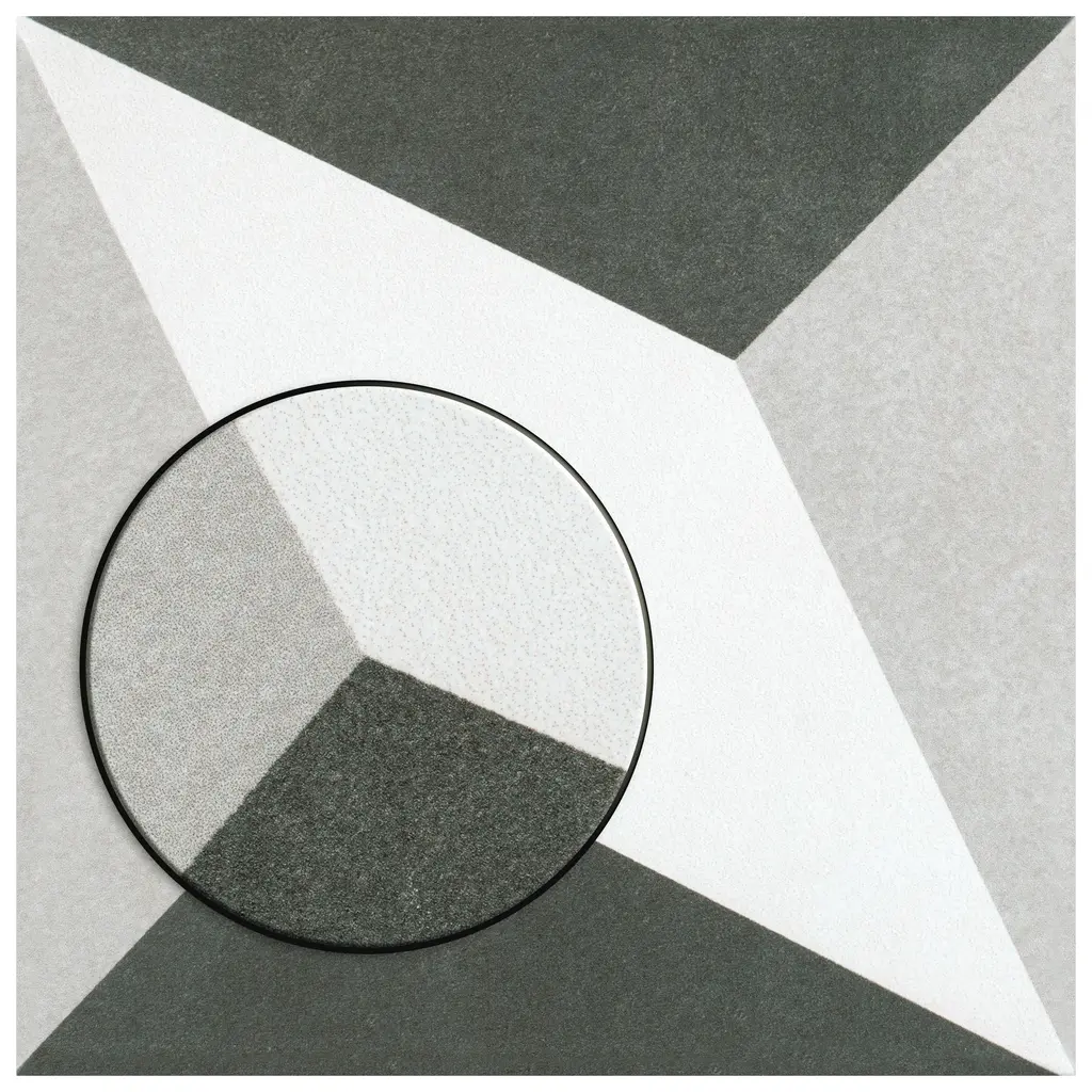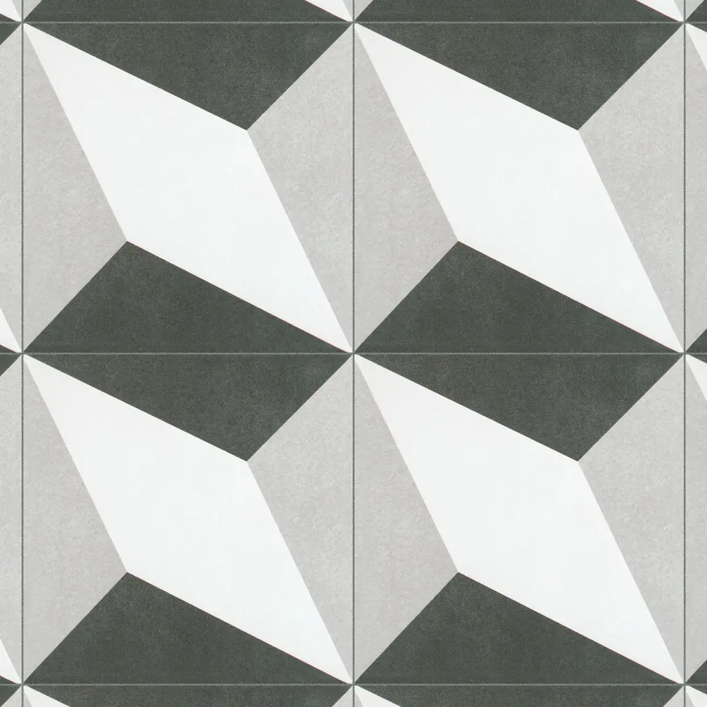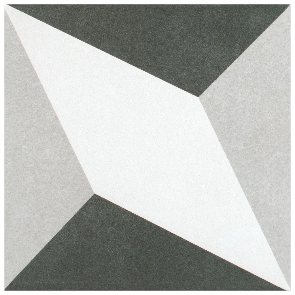 Inspired by artisan cement tiles, our Twenties Diamond Ceramic Floor and Wall Tile captures the look of authentic encaustic tiles with a versatile ceramic body. This square tile features geometric patterns in charcoal black and ash grey tones. Set on a snow white base glaze, the contrasting design features a weathered, speckled look, replicating the beauty of Spanish design and offering a unique blend of old-world style and modern appeal. This visually rich floor and wall tile can blend into virtually any design theme, ranging from contemporary projects to traditional installations. Its durable and frost-resistant features make this an ideal choice for indoor and outdoor installations including kitchens, bathrooms, backsplashes, showers, entryways, patios and fireplace facades. It is a perfect choice on its own or paired with other product in the Twenties Collection. Tile is the better choice for your space. This tile is made from natural ingredients, making it a healthy choice as it is free from allergens, VOCs, formaldehyde and PVC. 10.75 square feet, 25 pieces per case. Case weight is 26.85 lbs. Grade 1, first-quality ceramic tile for floor and wall use 7.75 in. width x 7.75 in. length x 0.23 in. thick Glazed, slightly textured finish with a low sheen and slight variation in tone PEI Rating III is suitable for medium-duty residential floors including kitchens, halls, corridors, balconies, terraces and areas used more often with normal footwear and small amounts of dirt Vitreous tiles have water absorption of more than 0.5% but less than 3% for indoor use and some outdoor applications and are frost resistant This tile is ADA approved for slip resistance with a DCOF value of 0.42 or higher. Completely frost resistant for indoor or outdoor applications; use a latex-modified thinset for acceptable bond strength Please note: A sample of this product may be a partial piece cut from the full size tile in order to provide an affordable and convenient way for customers to judge the quality and finish of this item. Samples are not returnable.