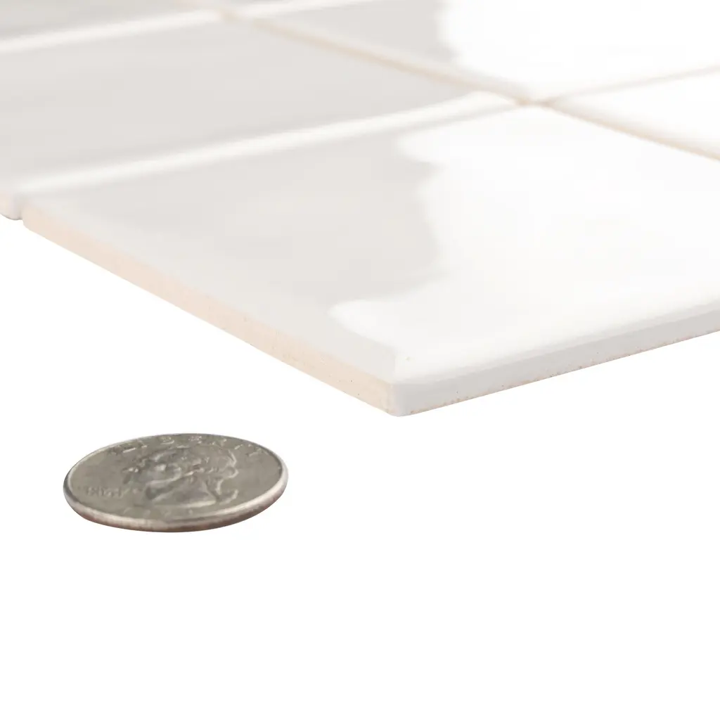 An enriched version of standard subway tile, our Twist Square Soft Cream Ceramic Mosaic Wall Tile has the allure of classic style, but with a refreshingly modern twist. With slight undulation and a smooth glossy finish, this tile offers an appearance that is retro, futuristic and timeless all in one. It is subtle enough to seamlessly fit alongside various designs, while still interesting enough to stand out. This tile is tastefully smaller for a distinctive, unexpected element that will fit just about any style and space. These ceramic square pieces are arranged on an interlocking mesh backing in order to provide convenient installation. If desired, pieces may be removed and installed individually. It is great as a cohesive look or paired with other products in the Twist Collection. Intended for interior wall use, this tile is an excellent selection for backsplashes, fireplace facades and accent walls. Tile is the better choice for your space. This tile is made from natural ingredients, making it a healthy choice as it is free from allergens, VOCs, formaldehyde and PVC. 9.8 square feet, 10 pieces per case. Case weight is 20.4 lbs. Grade 1, first-quality ceramic tile for wall use 11.75 in. width x 11.75 in. length x 0.25 in. thick mesh-mounted mosaic Glazed, smooth finish with a high sheen and uniform appearance in tone PEI Rating 0 is suitable for wall use only Non-Vitreous tiles have water absorption of more than 7% for indoor use DCOF value is not available for this product. Please reference the PEI and MOHS rating for installation. Not frost resistant Please note: A sample of this product may be a partial piece cut from the full size tile in order to provide an affordable and convenient way for customers to judge the quality and finish of this item. Samples are not returnable.
