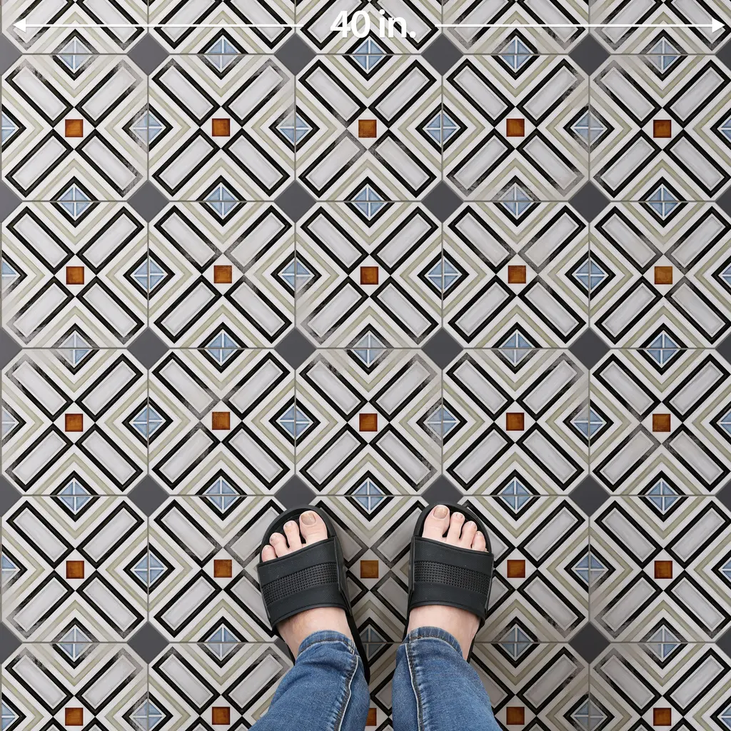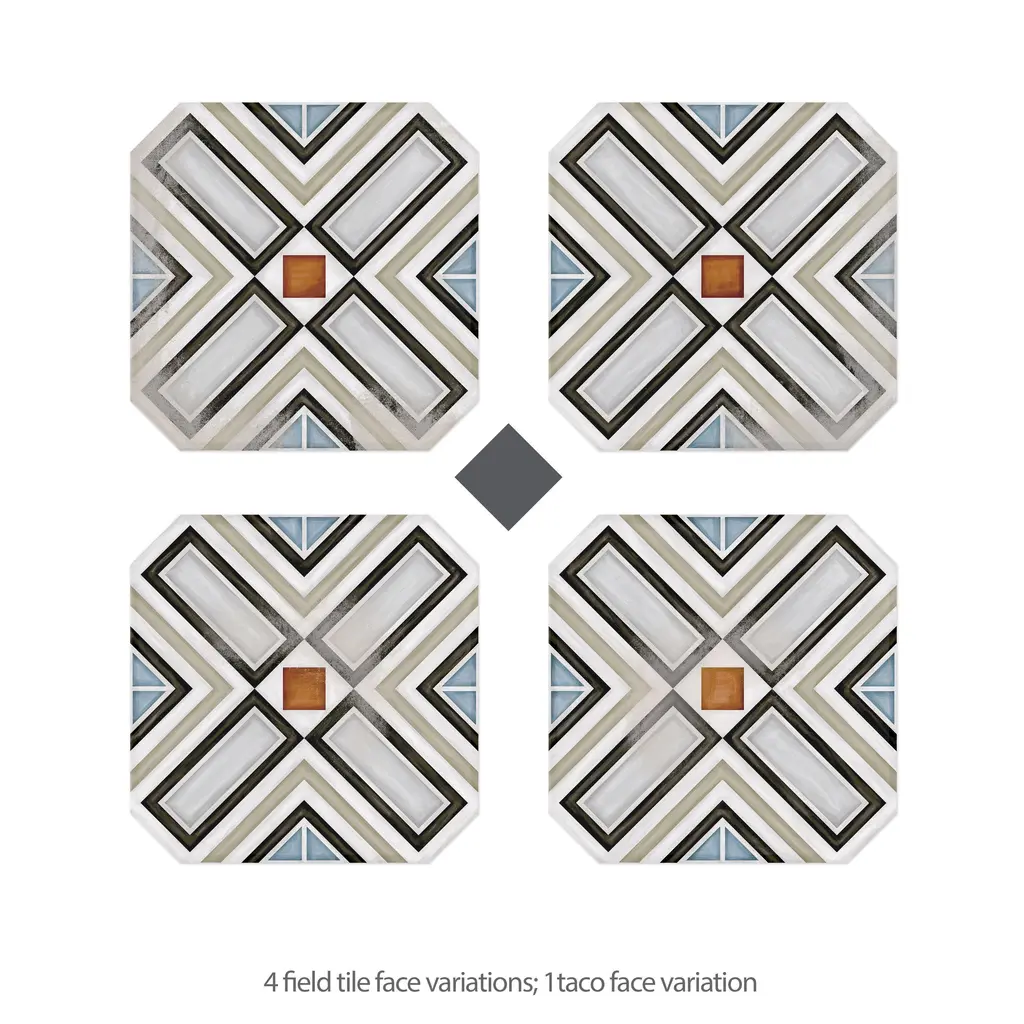 Inspired by a hand painted look, our Vaudeville Octagon Deco Ritter with Taco Antracita Porcelain Floor and Wall Tile features a slightly textured, matte finish, providing decorative appeal that adapts to a variety of stylistic contexts. Inspired by Victorian-era Vaudeville, these geometric octagon tiles with a matte finish and customizable vibrant colors capture timeless elegance and vintage charm, creating a sophisticated, lively space reminiscent of the colorful variety acts of Vaudeville theatres. Containing 5 different print variations that are randomly distributed throughout each case, this white specialty tile offers a one-of-a-kind look. With its impervious, frost-resistant features, this tile is an ideal selection for a variety of spaces including indoor and outdoor residential installations, bathrooms, backsplashes, showers, hallways, pools and fireplace facades. This tile is a perfect choice on its own or with other products in the Merola Tile, Vaudeville Collection. To ensure optimal results, please consult with your installer and review the product specifications to confirm that this tile meets the specific needs of your project.