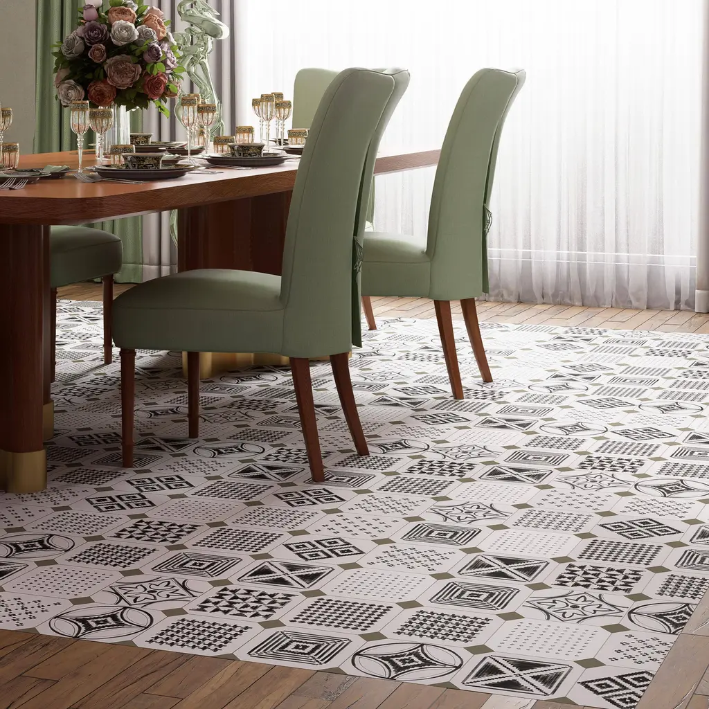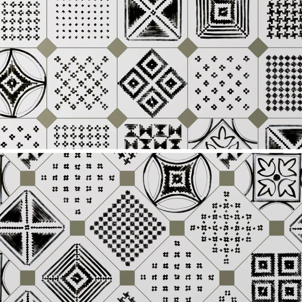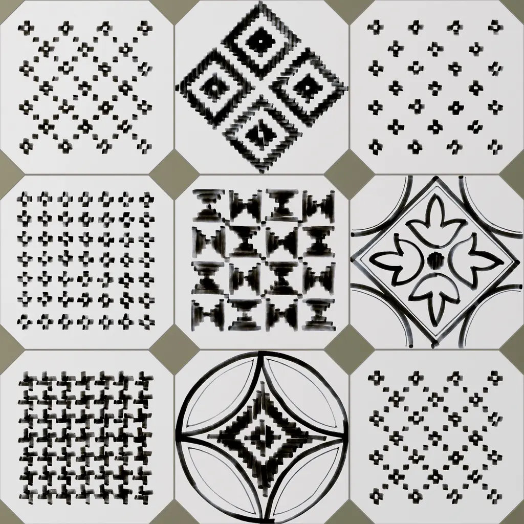 Inspired by a hand painted look, our Vaudeville Octagon Deco Sombra with Taco Oliva Porcelain Floor and Wall Tile features a slightly textured, matte finish, providing decorative appeal that adapts to a variety of stylistic contexts. Inspired by Victorian-era Vaudeville, these geometric octagon tiles with a matte finish and customizable vibrant colors capture timeless elegance and vintage charm, creating a sophisticated, lively space reminiscent of the colorful variety acts of Vaudeville theatres. Containing 37 different print variations that are randomly distributed throughout each case, this white specialty tile offers a one-of-a-kind look. With its impervious, frost-resistant features, this tile is an ideal selection for a variety of spaces including indoor and outdoor residential installations, kitchens, bathrooms, backsplashes, showers, hallways, pools and fireplace facades. This tile is a perfect choice on its own or with other products in the Merola Tile, Vaudeville Collection. To ensure optimal results, please consult with your installer and review the product specifications to confirm that this tile meets the specific needs of your project.